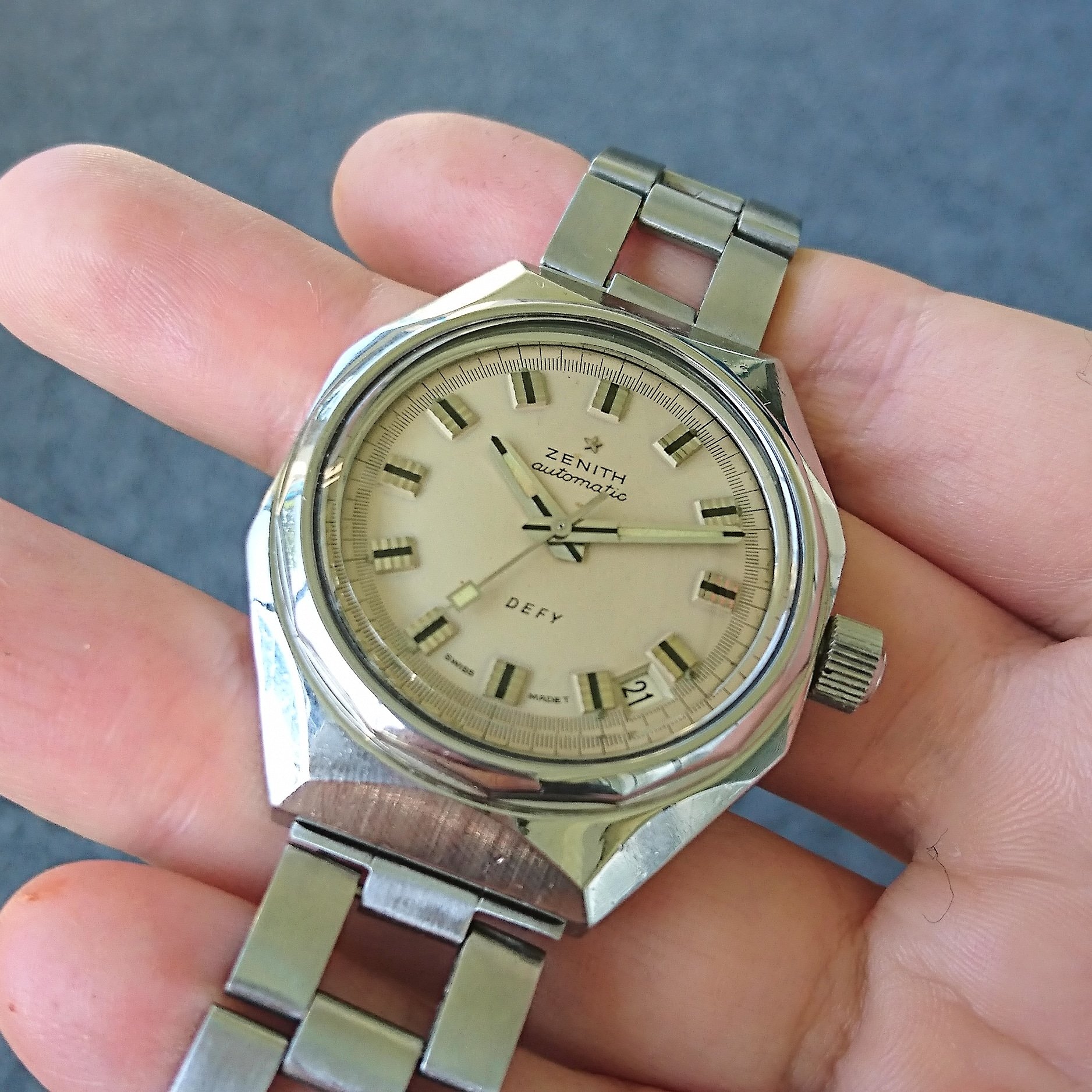 Bought one with the blue metallic dial in the Bay some years ago and gifted it to my daughter. Watch is in beautiful vintage condition with GF ladder. She sent me this pic today.