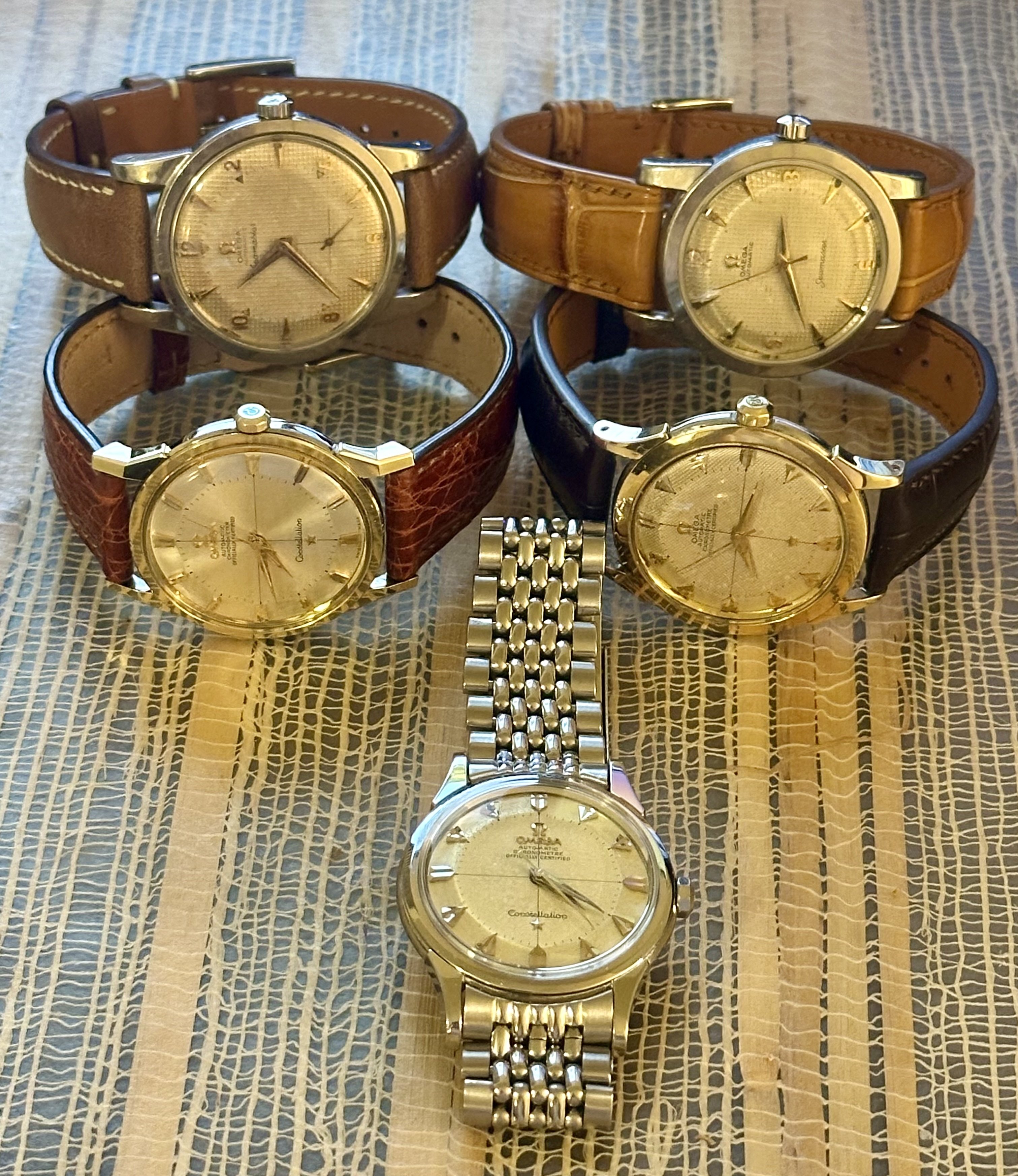 ·Well, let's see. Subject to further evaluation: The Ranchero stays. The hobnail Seamasters stay. The 300 Heritage stays. The JLC Ultra Thin Moon stays. At least one of my dress Connies stays (and I have five and they're all beautiful). The Seamaster waffle dials should stay (damn, I have more than one of those too). And I should probably keep the '69 Speedmaster Straight Writing too. Damn it. I'm going to have to rethink this retirement idea.