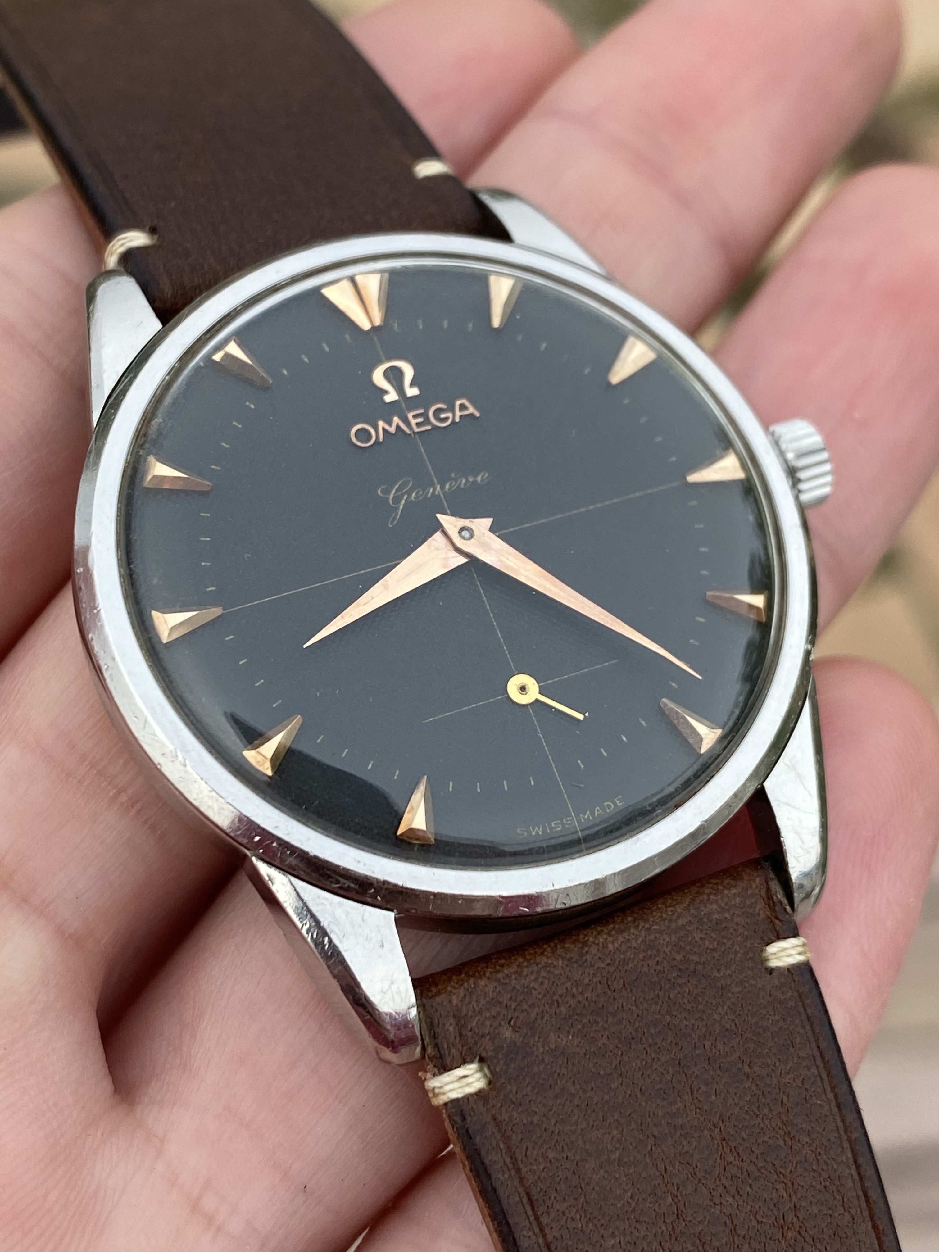 A relatively recent arrival - a jumbo 2748 first gen Geneve with a black waffle dial and rose gold dial furniture. The only black waffle dial first gen Geneve I’ve seen, let alone a jumbo. If anyone has seen others, please share!
