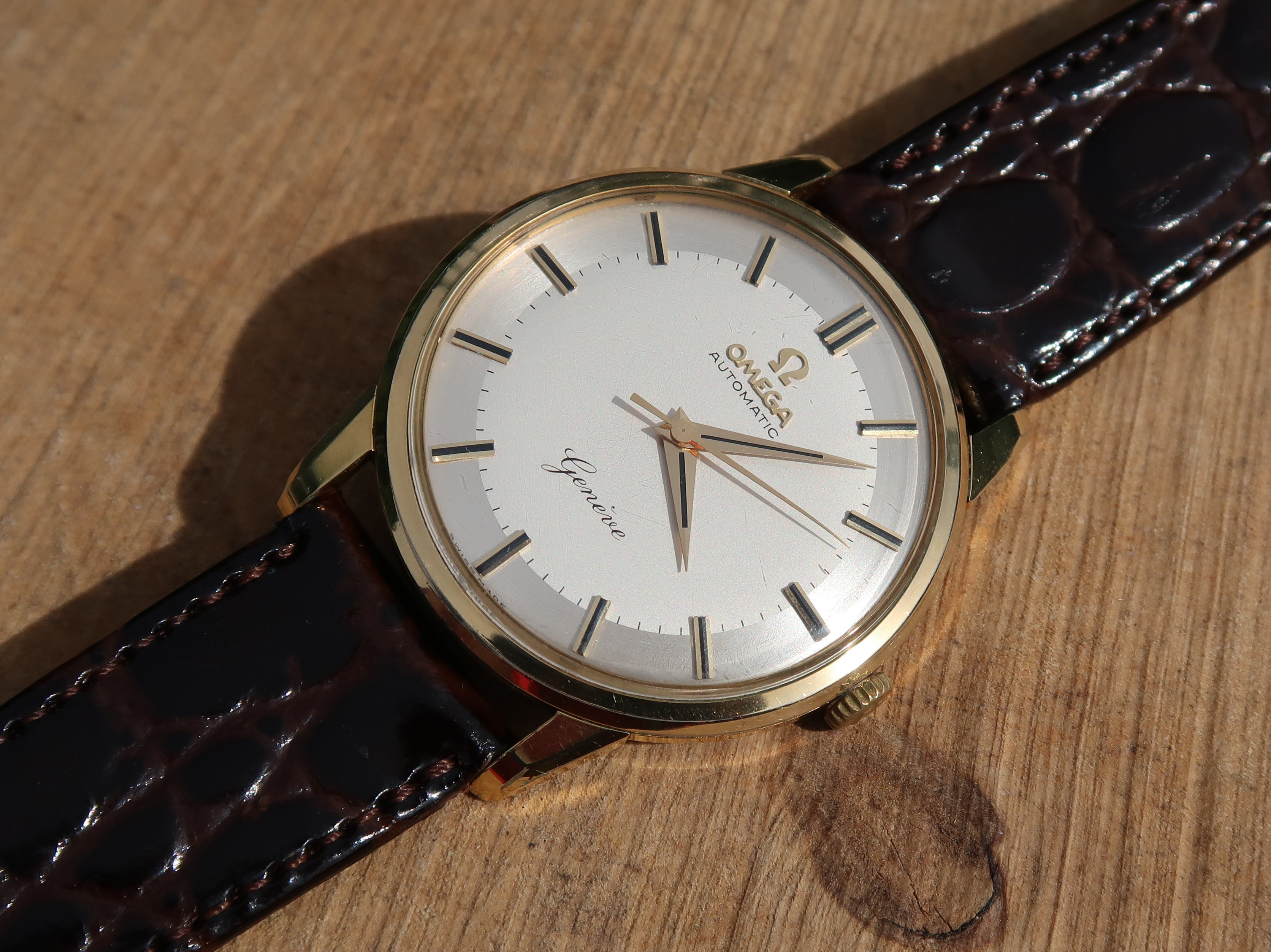 Just home from being serviced, my Genéve 2903 in 18K from ~1958, running great and looking swell with a new pair of shoes: