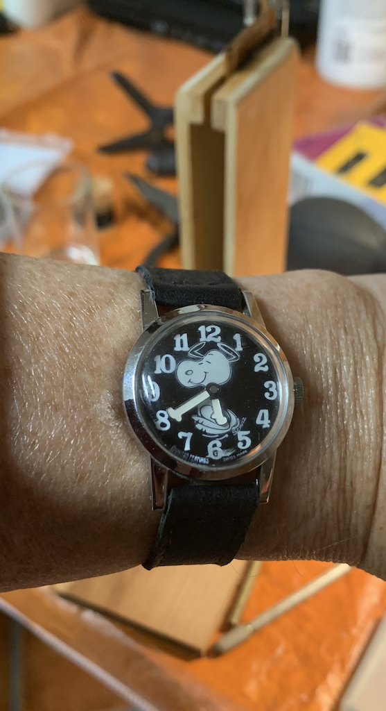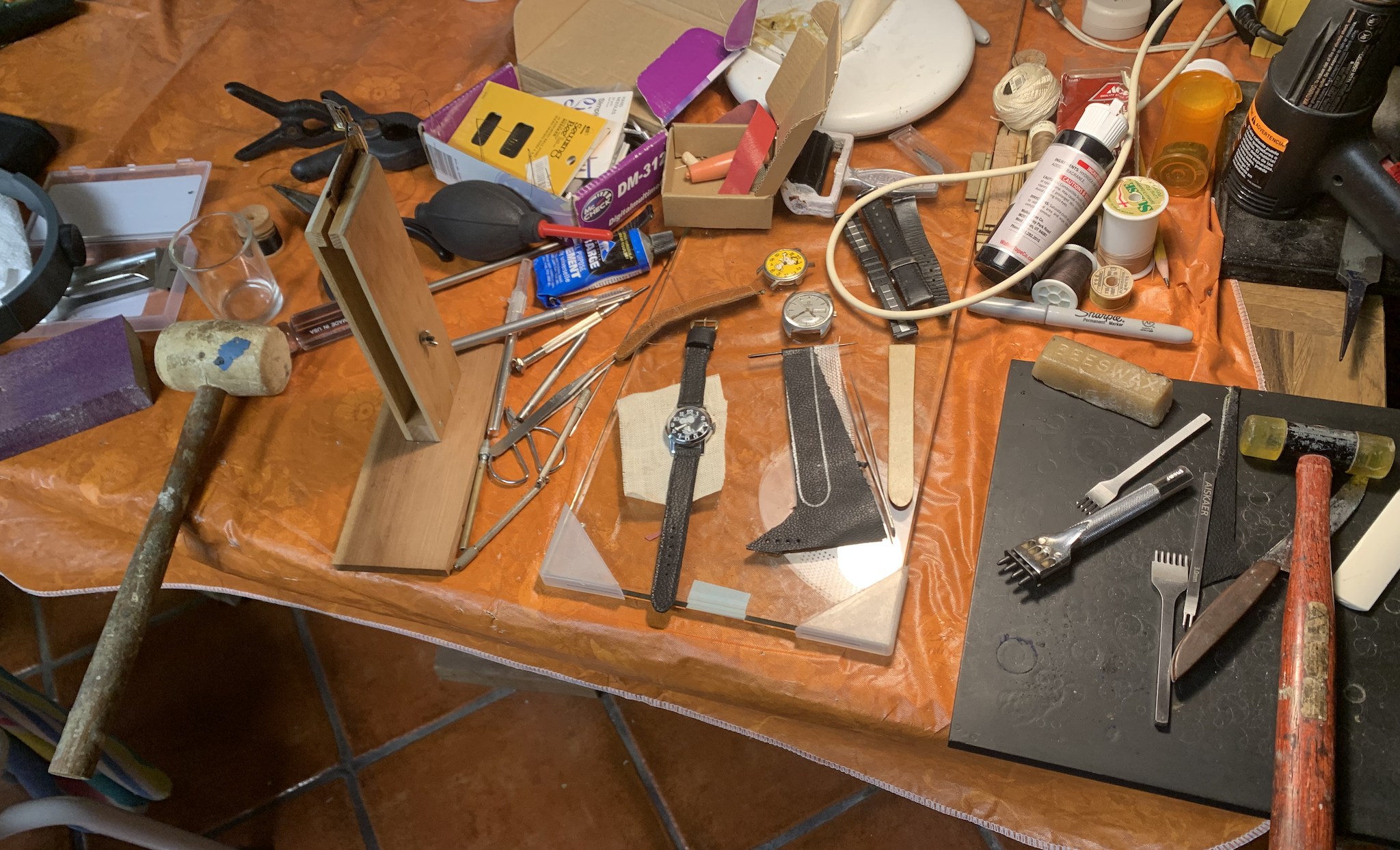 ·My first watch strap. Made entirely of stuff found around the house. (Apart from the pricking irons.)