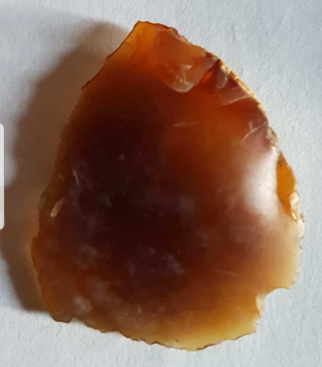 A particularly beautiful red flint leaf shape I found in July not far from the site of a vanished barrow. Height 32mm.