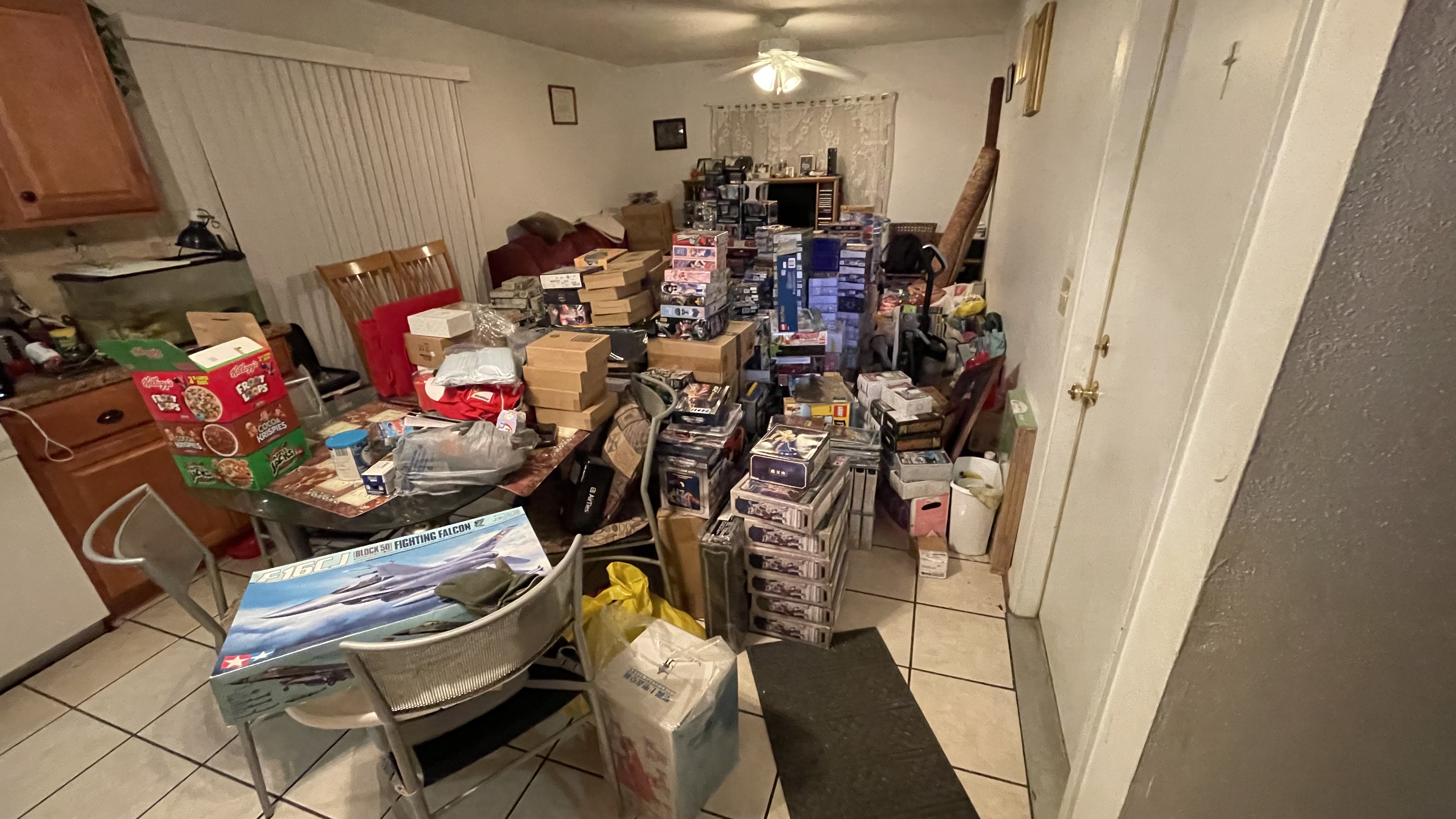 Probably a couple of hundred or so, actual real cars, knives, whiskey, books, tools and machinery, all sorts of shit!
