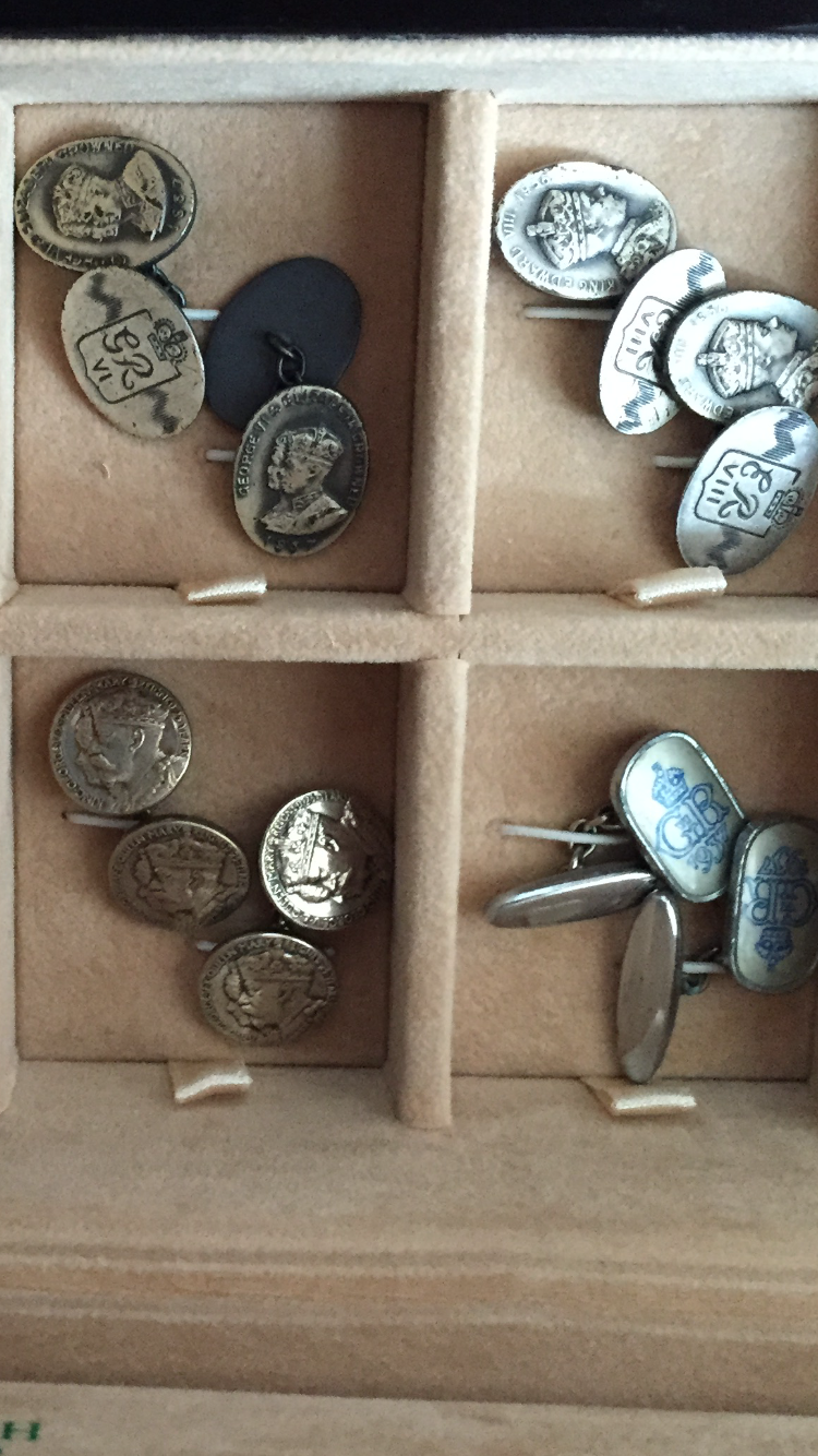 Cufflinks - mainly from coronation and jubilee years. The top right are my oldest - from Queen Victoria's Diamond Jubilee in 1897