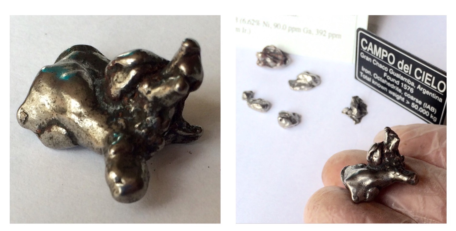 My most prized meteorite specimen is from one that fell in Namibia, Africa, tens of thousands of years ago, and was discovered by a farmer around 110 years ago, while his ox was plowing the field.