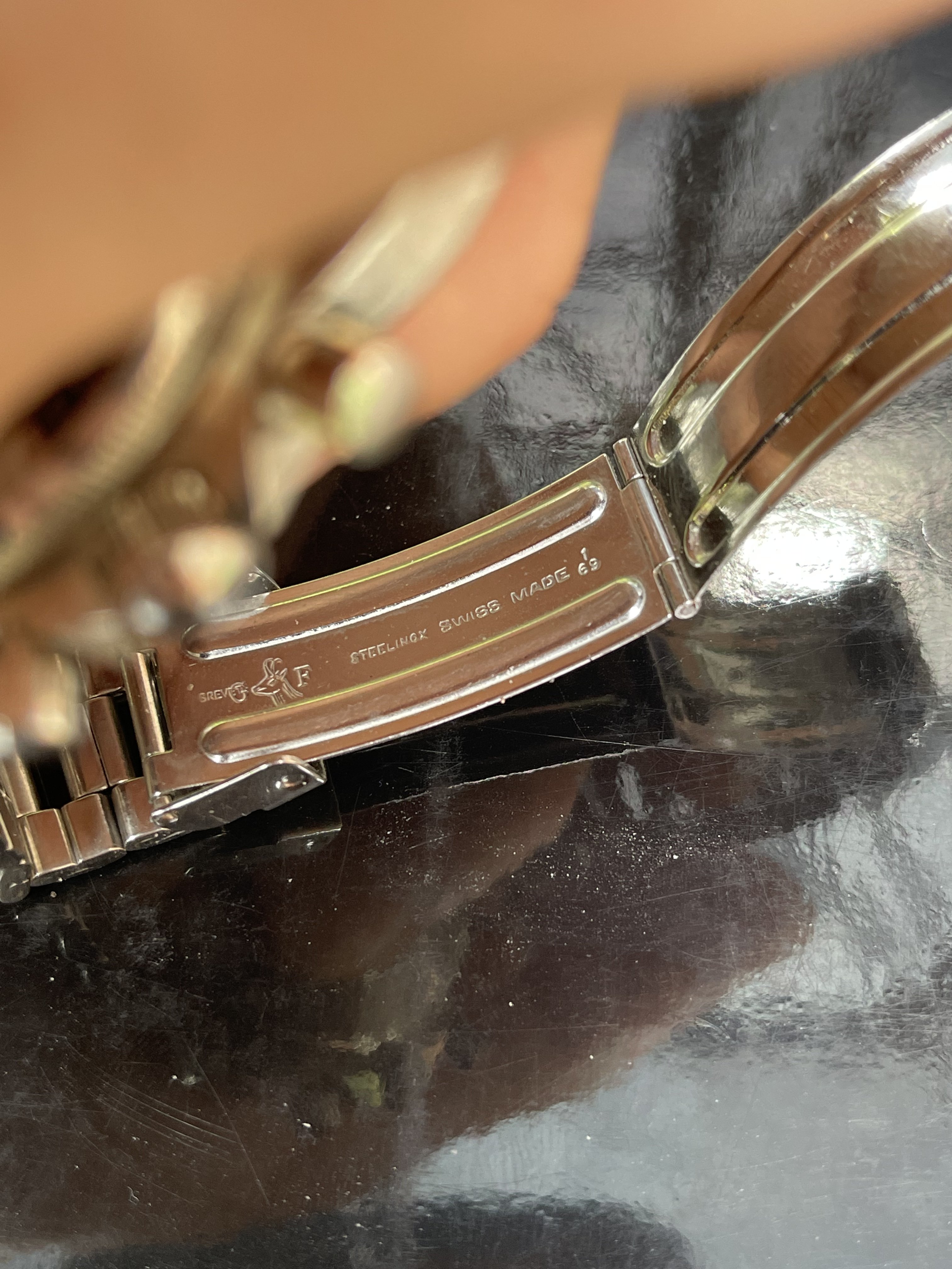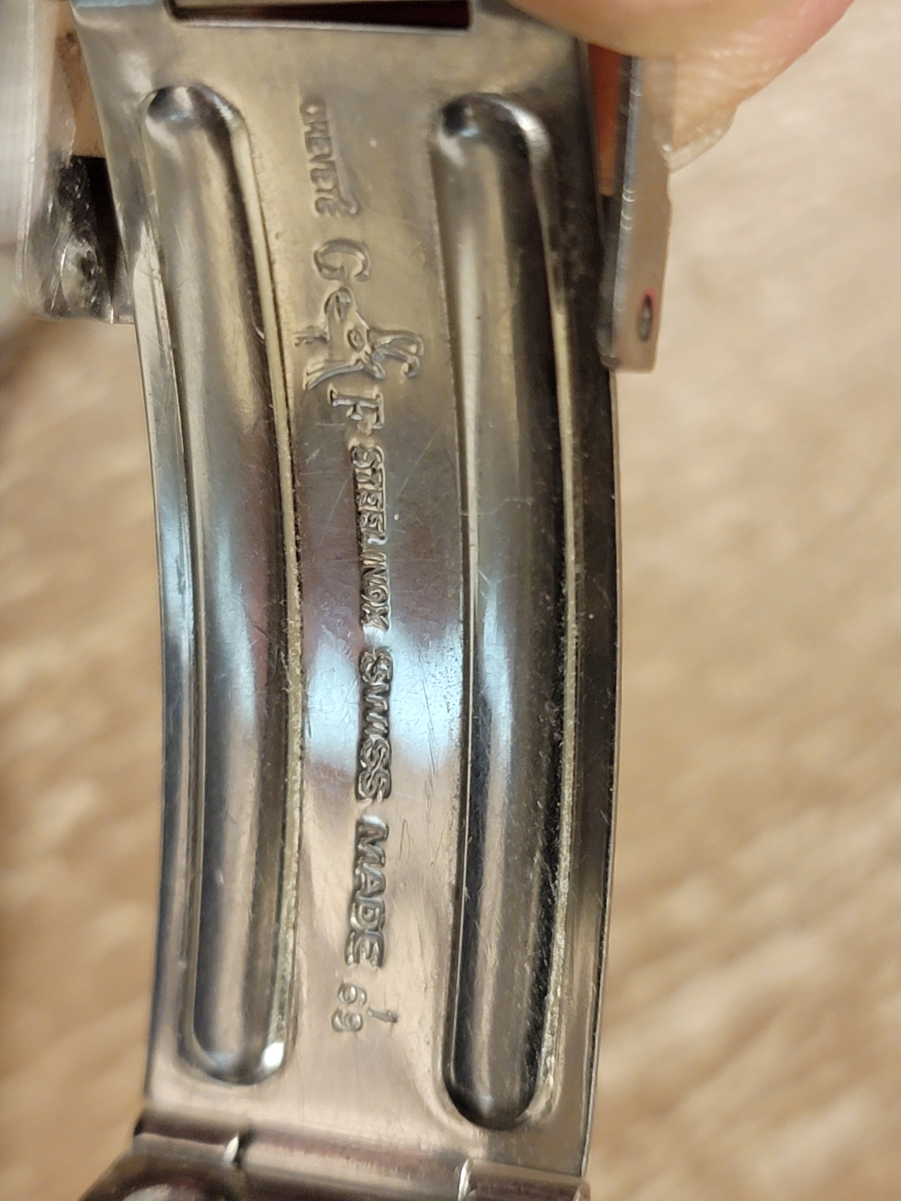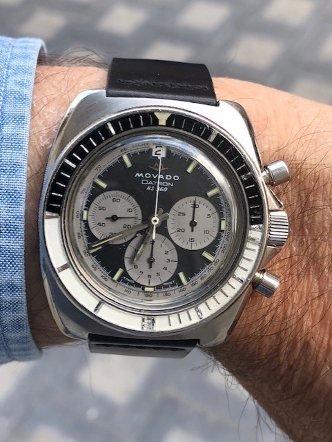 I have seen more than one of these Datachron/Datron Chronodivers on a GF ladder bracelet dated first quarter of 1969 and stamped with the reference number (138 705 501) of its dive watch twin, the Super Sub Sea 300 Tempomatic. It appears that Movado sold some Chronodivers with surplus bracelets meant for the Tempomatic.