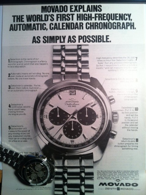 the question I had seen pop up most was "is it 17j or 31j?" with the distinction that Movado should be 17j. If I interpreted what I read in those threads correctly, as well as the text above, it is plausible that early references may have come with 31j Zenith movements(?).