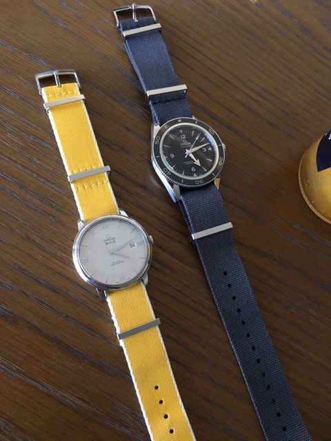Posts 82 Likes 735 rob09 ·Sep 29, 2019 My wife’s DeVille Prestige, on a yellow, Omega Nato. Turned a gentleman’s dress watch, into a kindergarten teachers daily.
