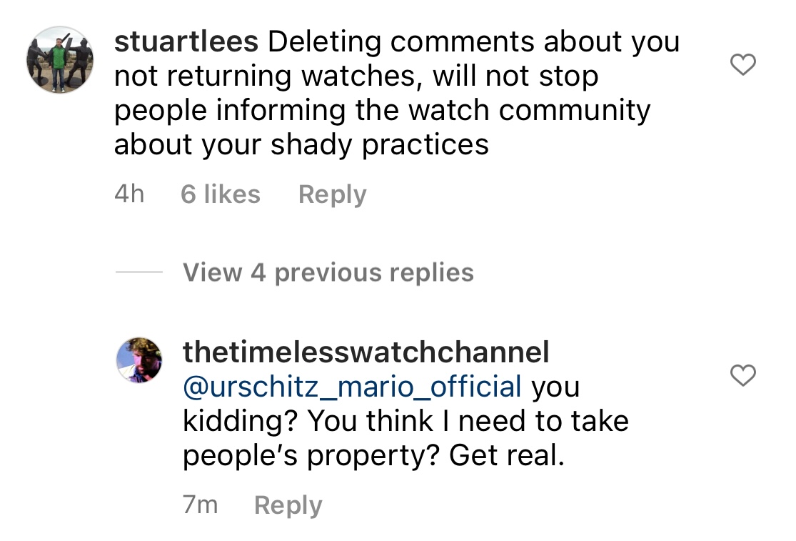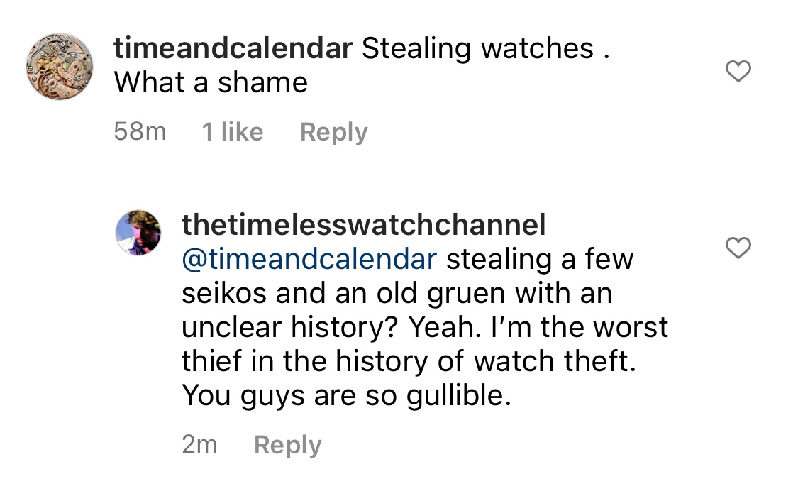 ·Can someone clarify if The Timeless Channel openly solicits the watches in the videos? If so, and if several victims are affected, with proceeds financing more videos financing more sollicitation, then it’s scam that uses You Tube in order to perpetrate the scam, and it is a scam which You Tube should have an interest in prosecuting very visibly.