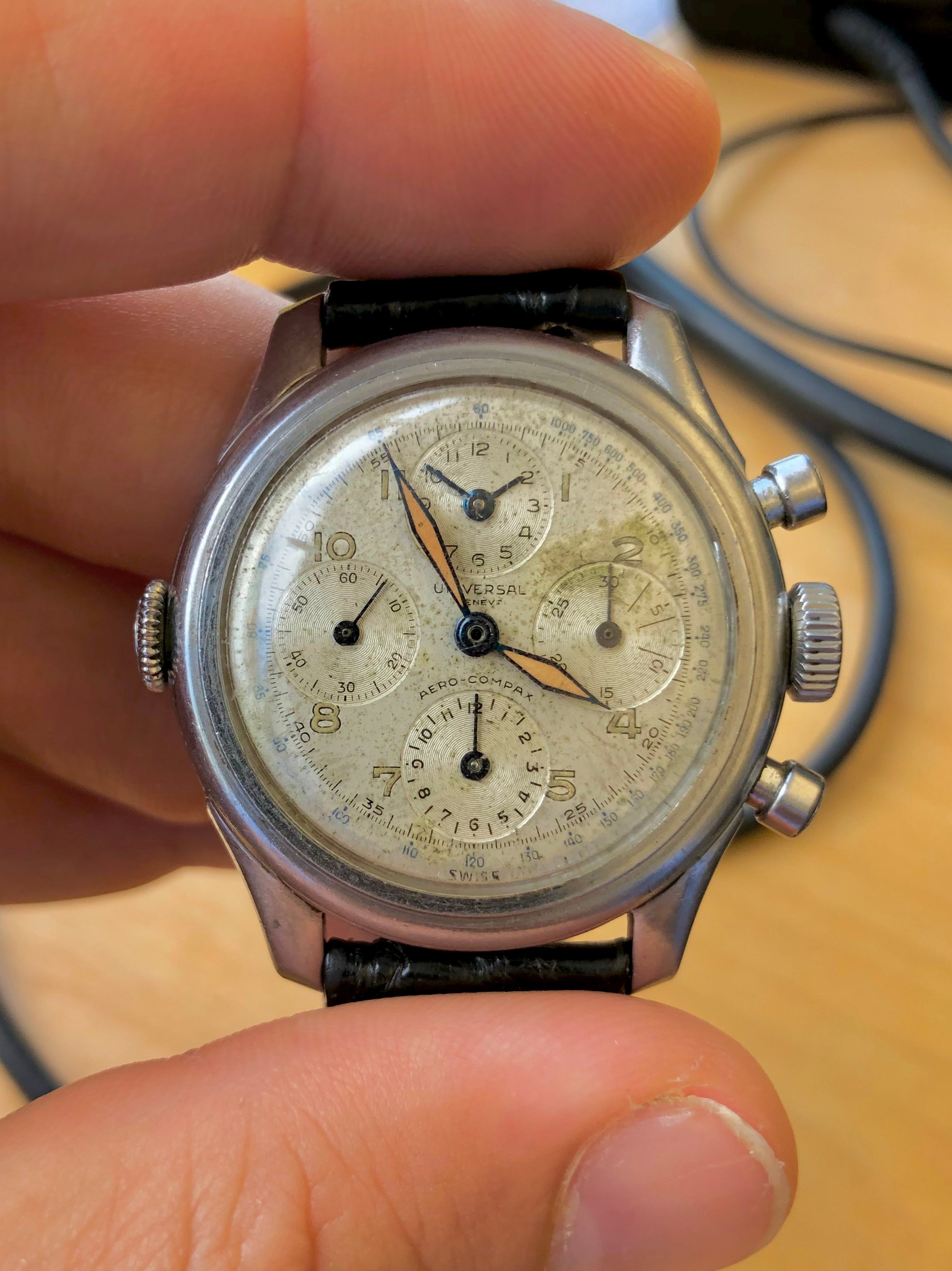 it looked all original and in good condition, except for possibly a stain on the dial around 2. Obviously a gamble on the dial given the lousy pics, but still, it’s pretty cheap.