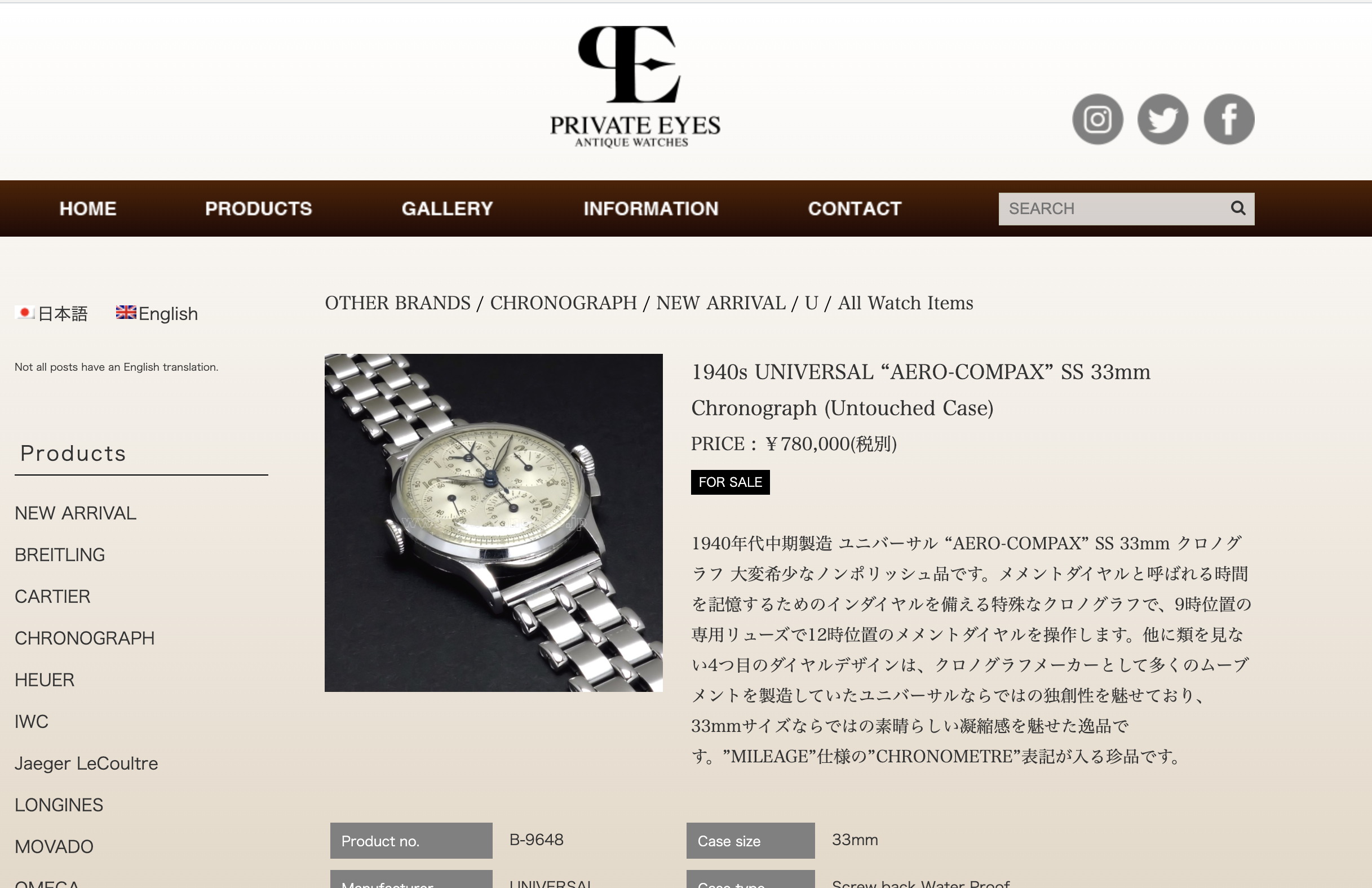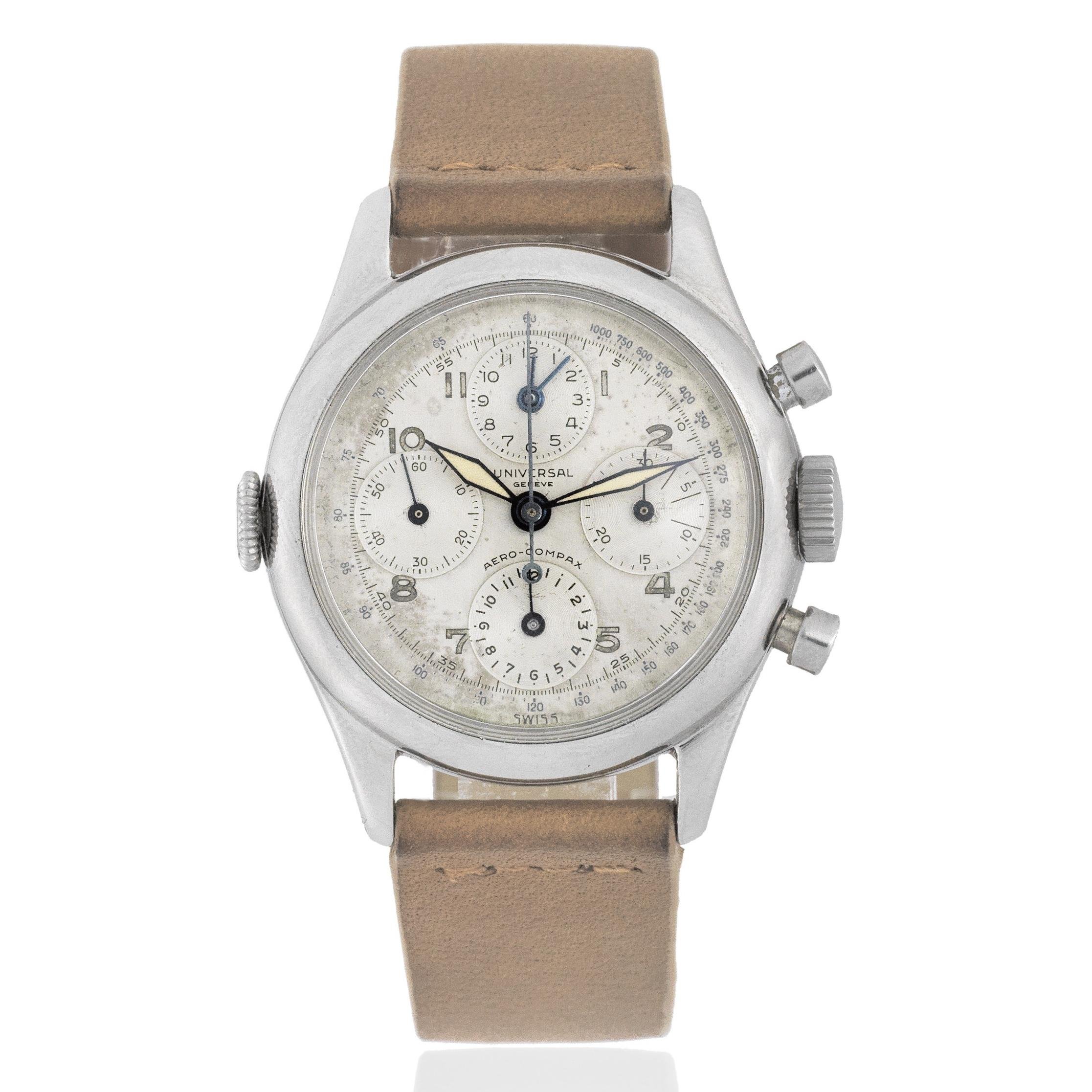 Case: Brushed and polished round, screw down back, crown flanked by twin pushers, No.1072931