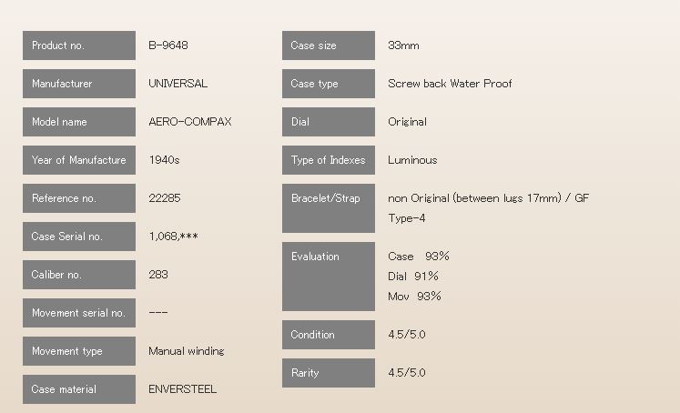 Movement: 17-jewel Cal.281 manual wind, column wheel chronograph, No.232869