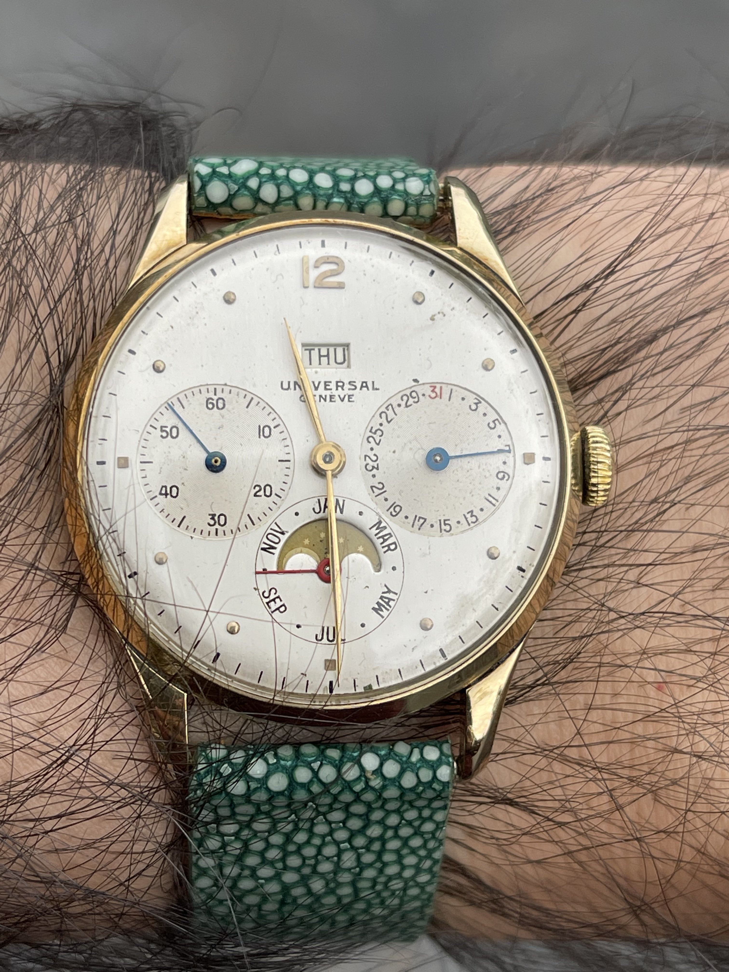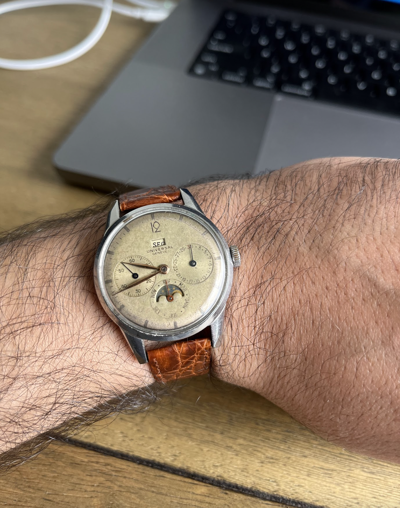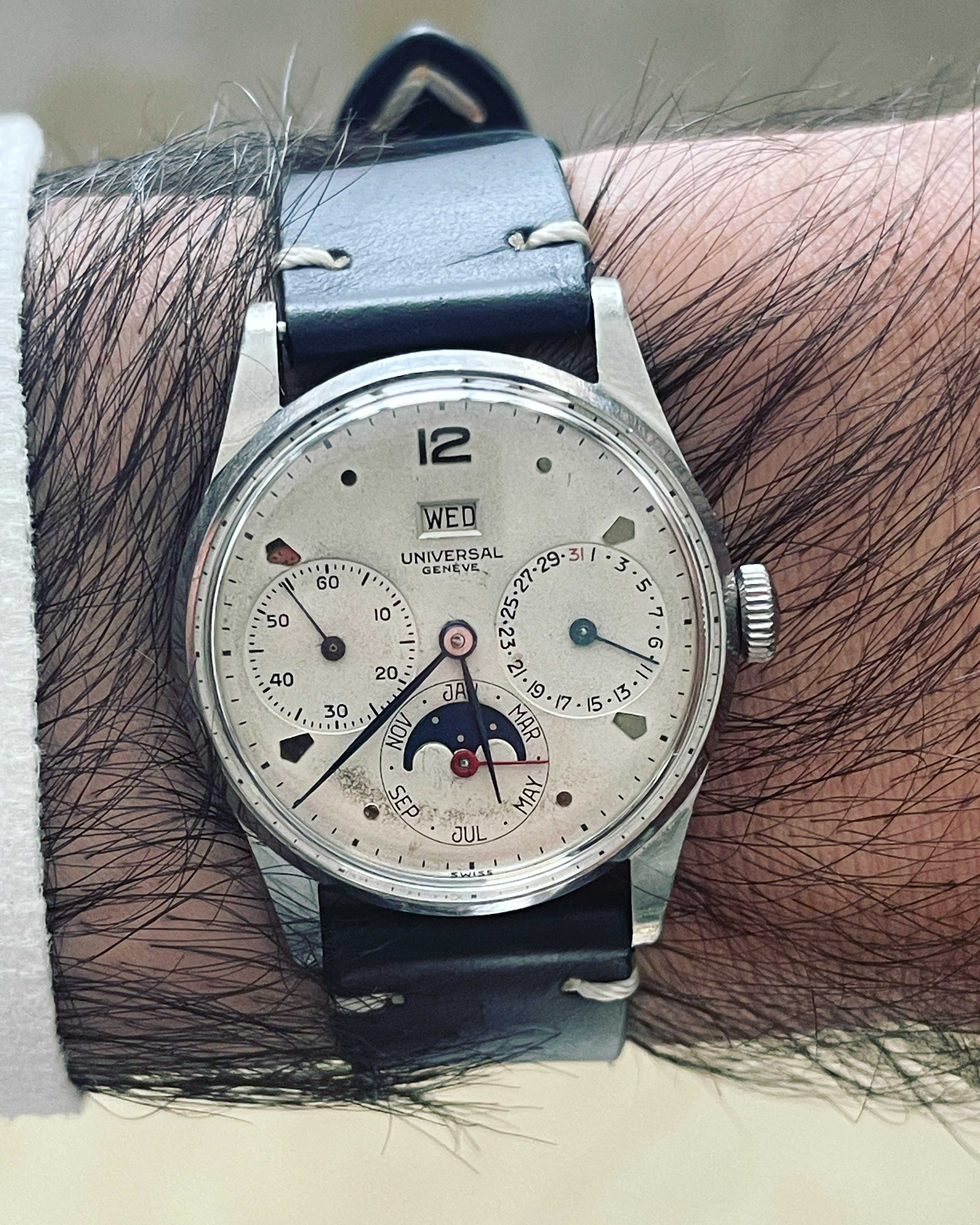 Posts 701 Likes 2,445 vintage hab ·Oct 23, 2022 T TheRealMe Just took one right now for you. I’ve been meaning to wear the watch. Beautiful watch, although I noticed that the months are in English and day is in French.