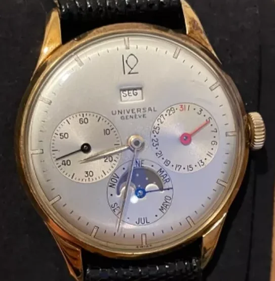 ··not the sharpest pencil in the ΩF drawerCan't determinate which reference it is (see i.e. https://universalgeneve.info/11-calendars?q=Calendar+Model-With+Moonphase) but all examples I have on record have numbers on the caseback. Caseback shoud be marked UG on the inside anyway. For instance this one: https://www.liveauctioneers.com/item/30996635_universal-geneve-full-calendar-ref-11303-around-1955