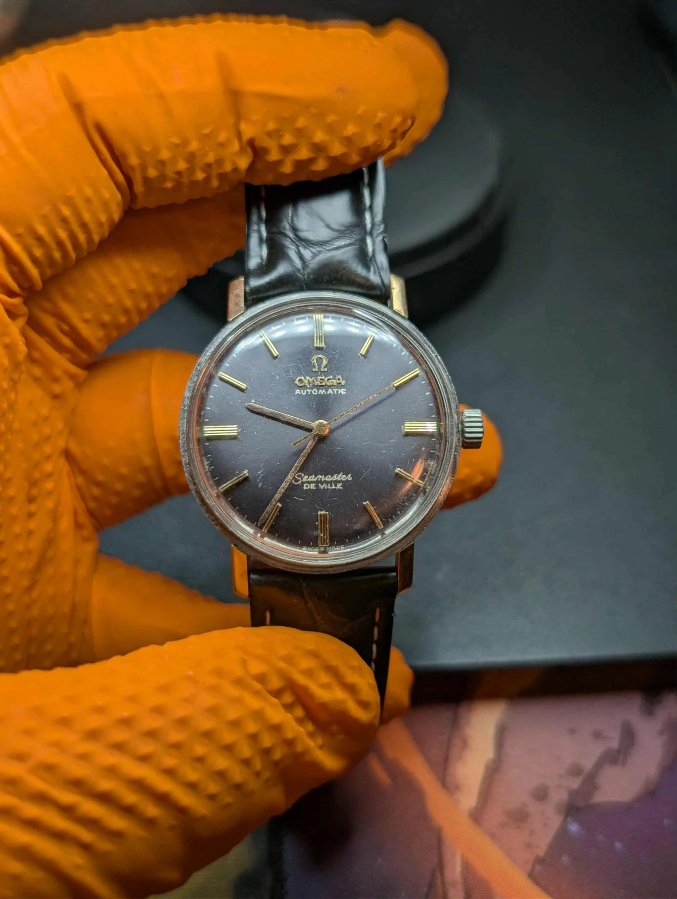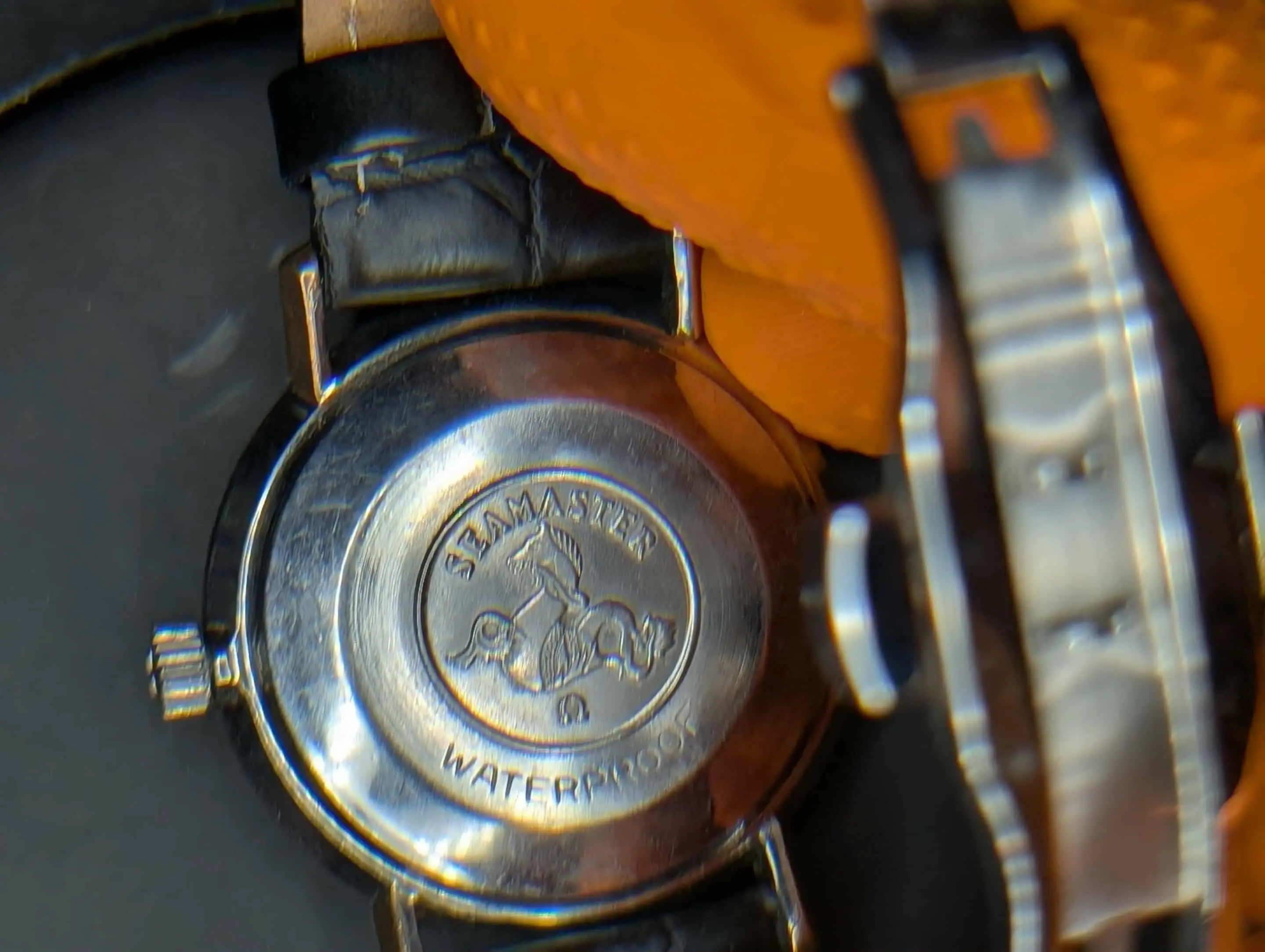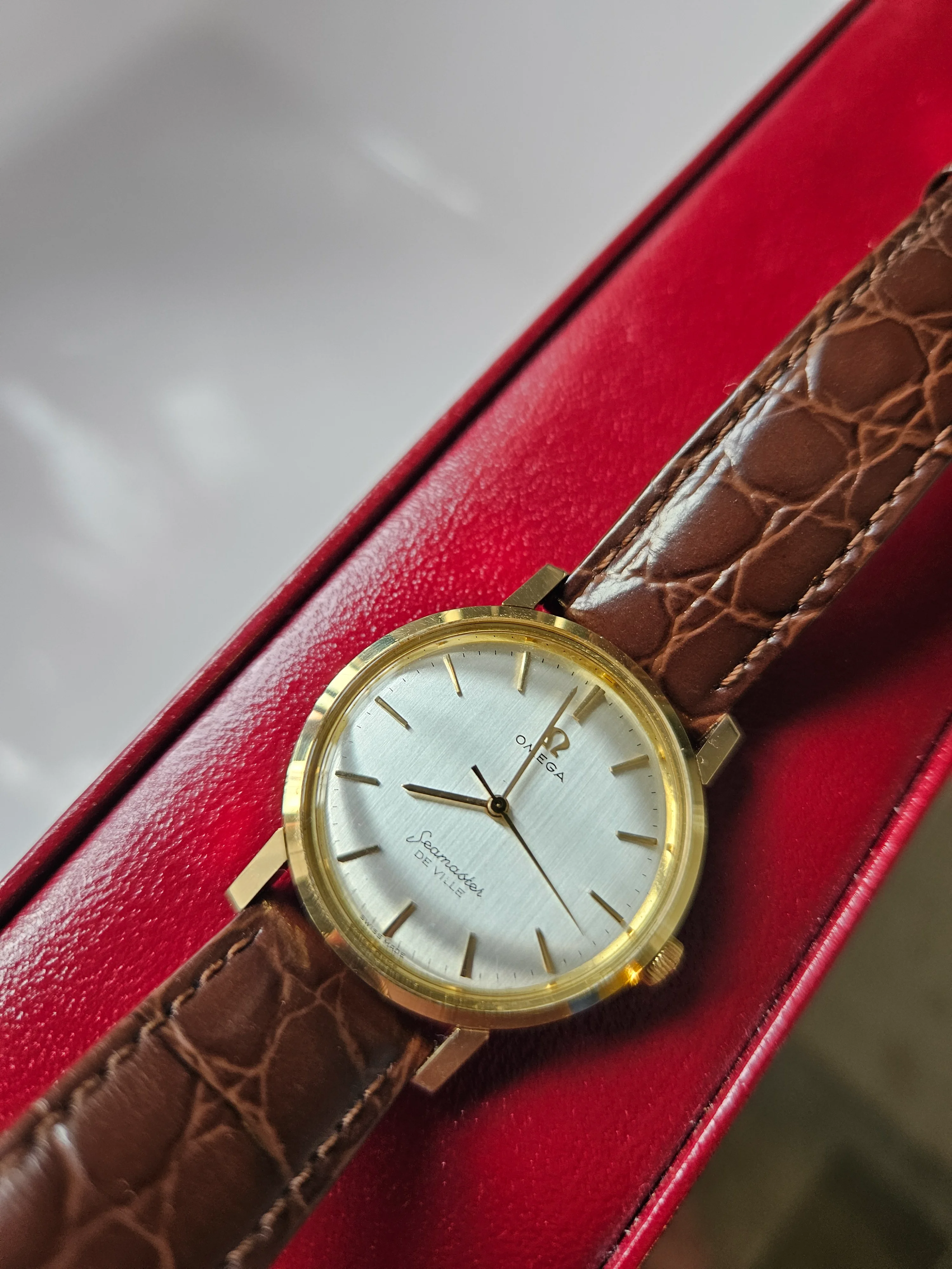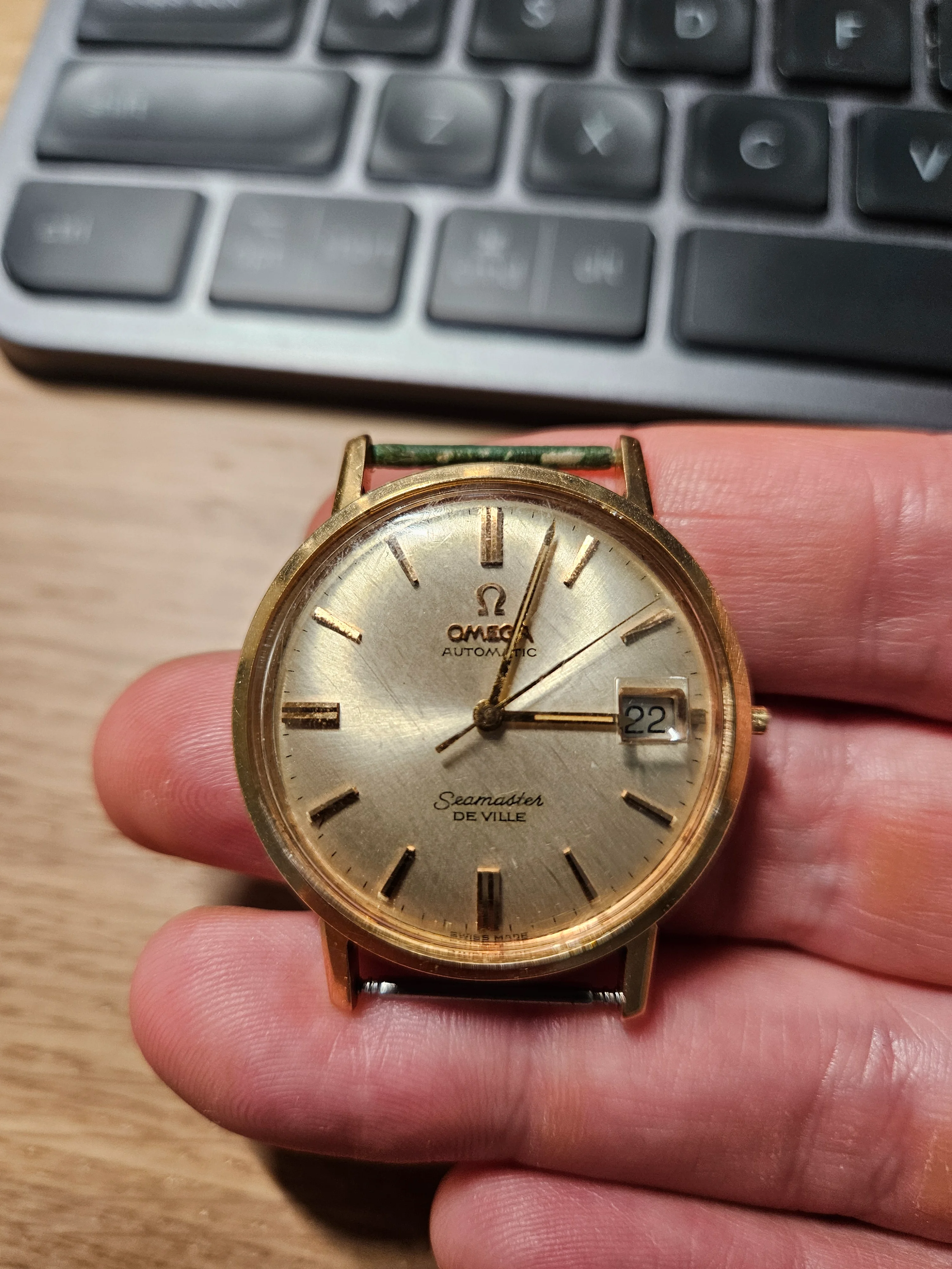 The watch has no date, it is the 18K variant with gold case, bracelet and dial and does feature the seahorse on the bottom, has the more „normal“ S in Seamaster and says swiss made on the bottom of the dial. The clasp is the larger variant, not as shown in the pictures for the swiss 14743.