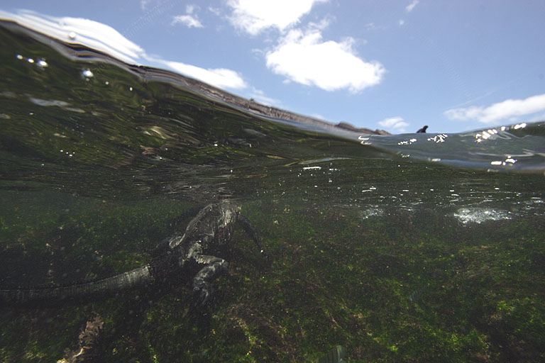 A slightly different concept here (and not watch-related at all) -- a split shot I took in the Galapagos Islands: an underwater shot of a swimming marine iguana, while in the background a different iguana can be seen sunning itself on the rock on the surface, under a lovely blue and cloud-speckled sky.