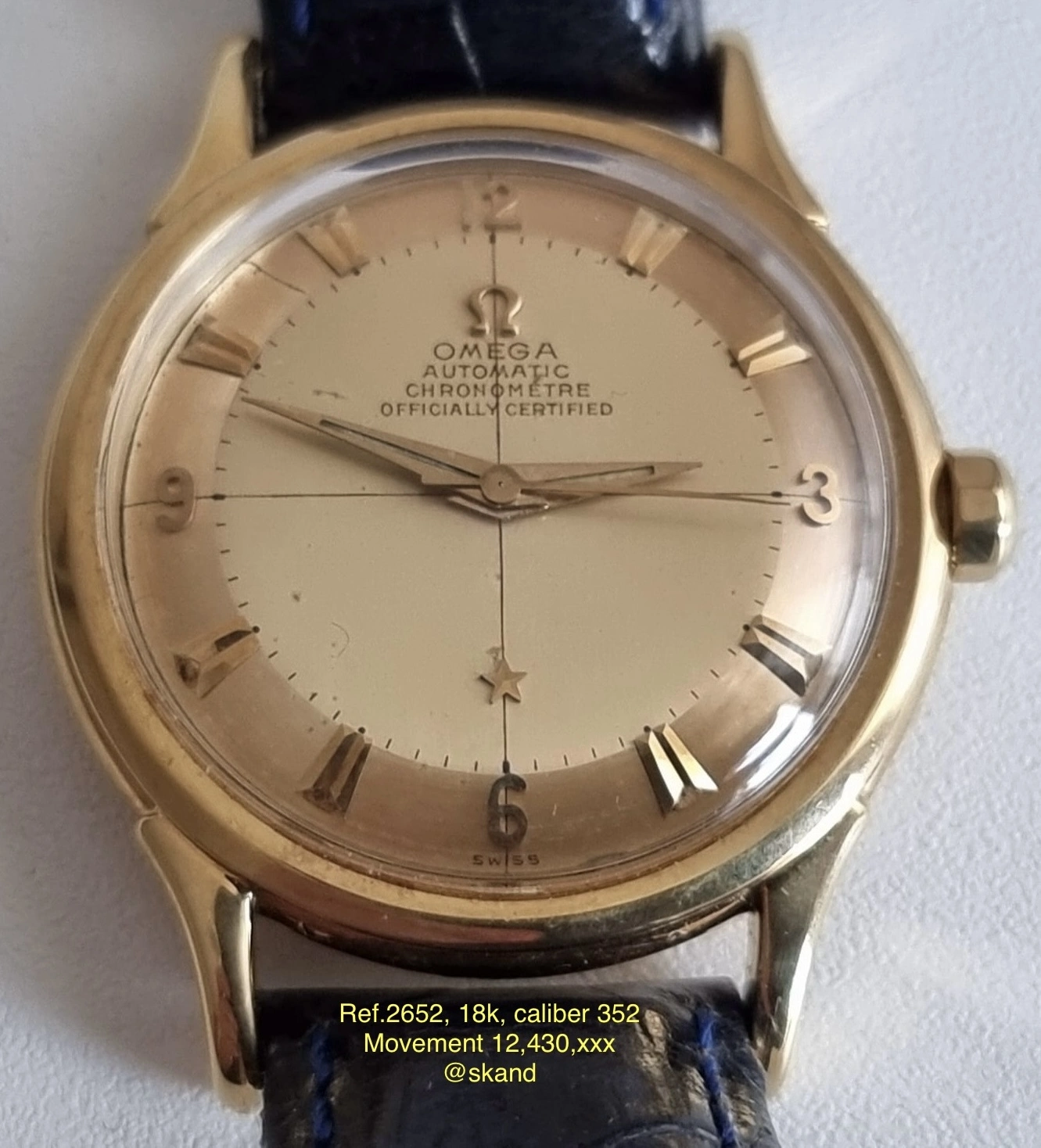 Although the photo quality is poor, the applied Omega logo looks unusual. A late-period 2652 can indeed have this later applied logo type—as seen on my own example from the transition batch (2652-15).