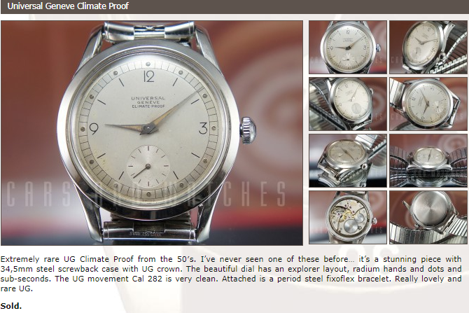 Doing my homework on this model, I gathered info on Universal Geneve Climate Proof Compax references (124113 and 12299), that I’m sharing below.