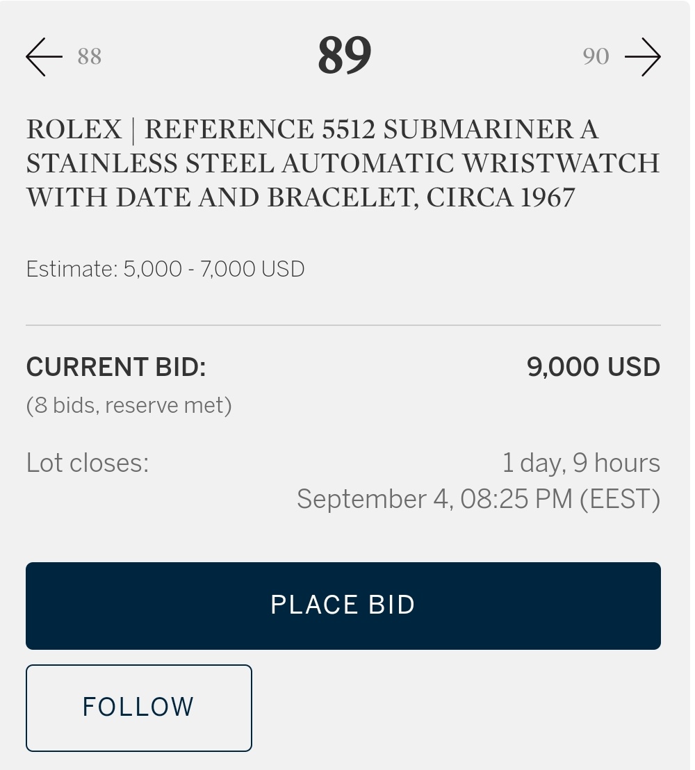 Yes that it. And there two bids on it at 5500 usd excluding bueyrs premium.