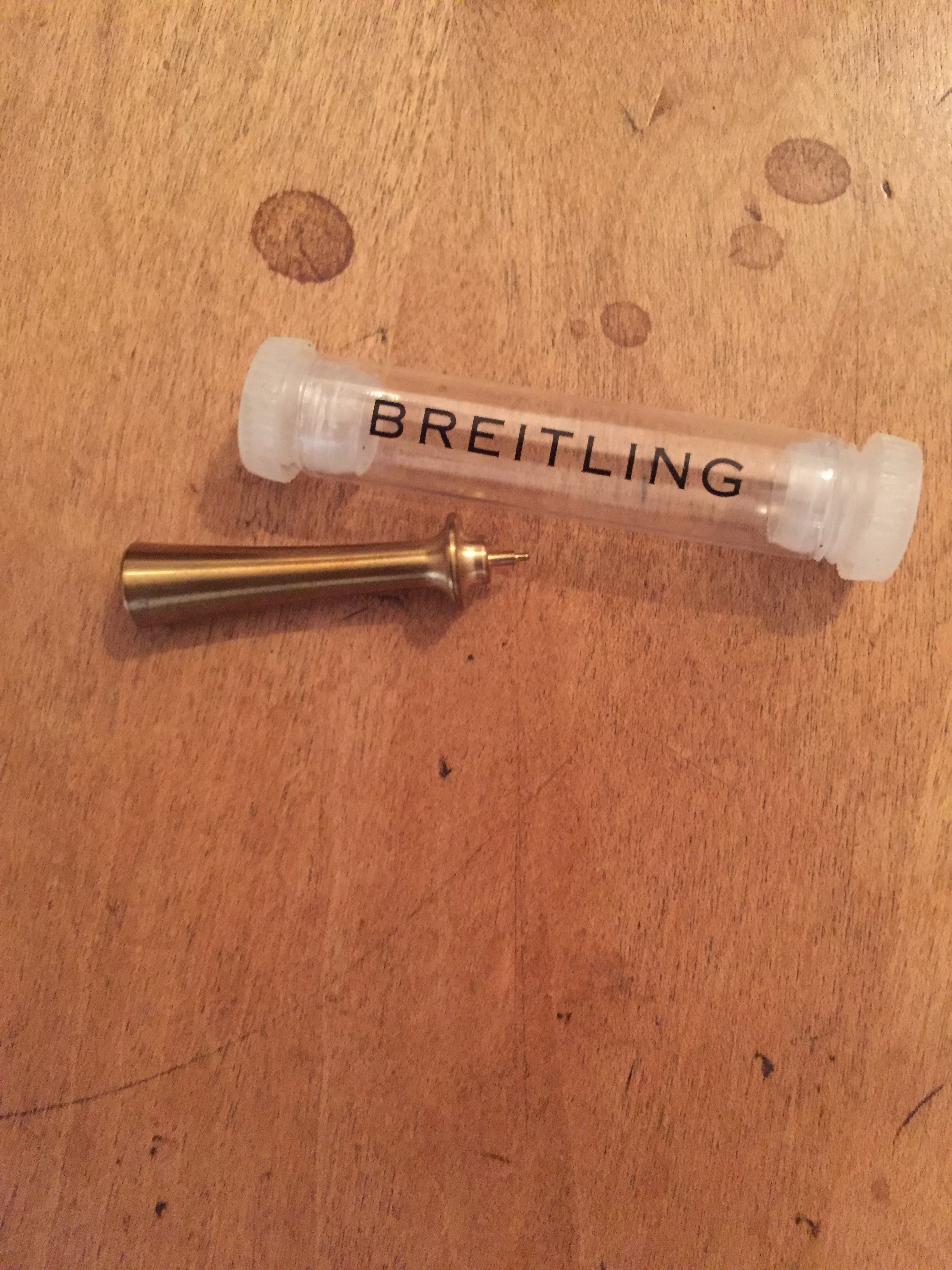The watch is authentic and physically in excellent shape, but it runs ridiculously slow, and there is no pusher instrument to change date, day, month and moonphase. Off to eBay and buy a Breitling pusher ( see photo ). Of course, when I try to adjust the date, day, month, and moonphase, nothing works. Take the watch to AD for repair, maybe, I can get a break as it is only 3 years old. Repair cost 900, discounted from 1350.