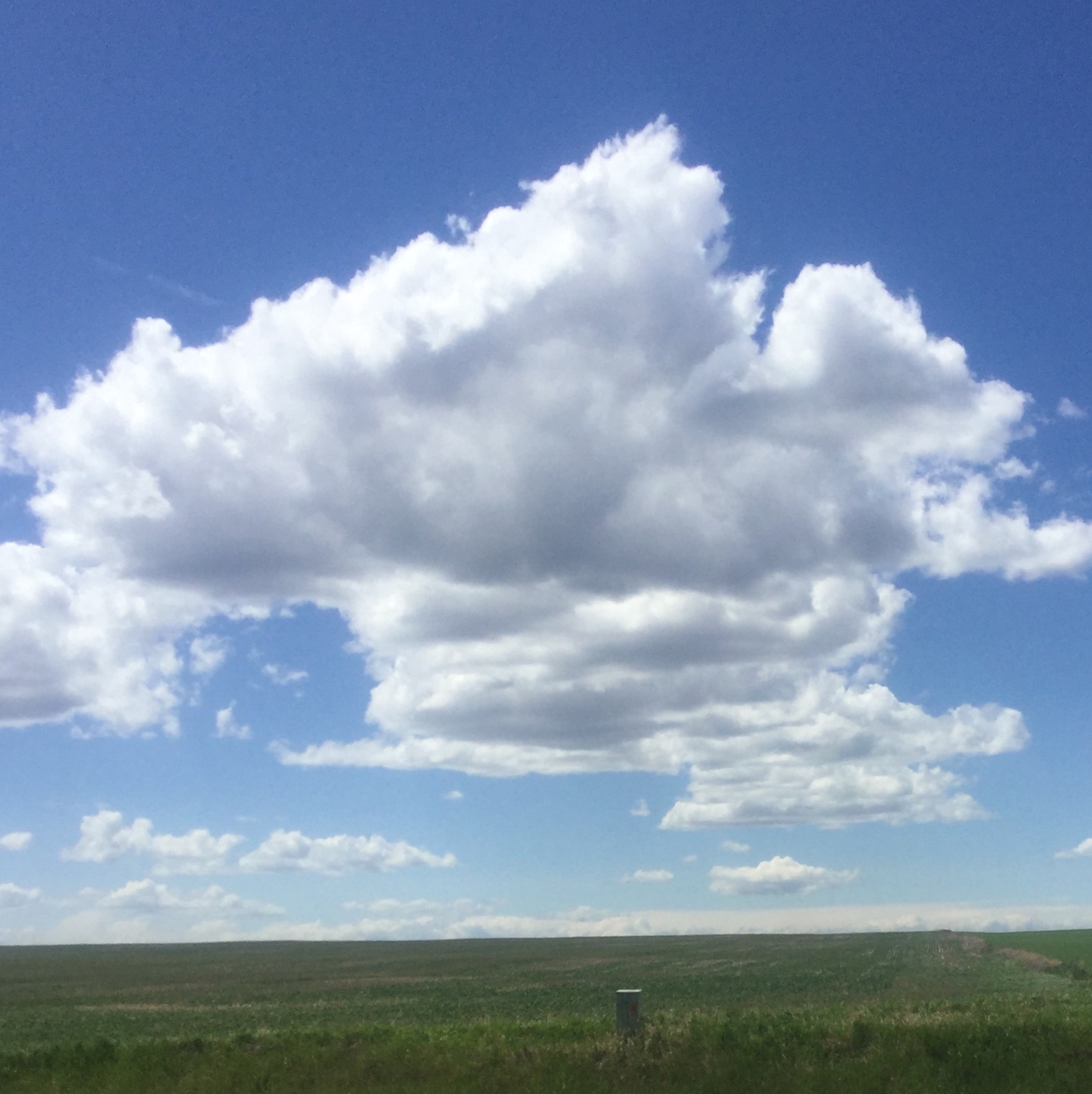 路My fiddle group performed in the Vulcan (Alberta) parade honouring the 50th anniversary of Star Trek. Every fourth person dress to the nines in the Star Trek uniform, many wearing Spock ears, and many men shaved bald. We were a hit, according to reports. We were afraid of the weather as rain had been forecast. But no rain! Too much wind, but no rain. On the 75 mile drive back home, I was smitten by the beautiful prairie skies, and the fluffy clouds, and I had to stop for a couple photos of the gorgeous cumulonimbus clouds.
