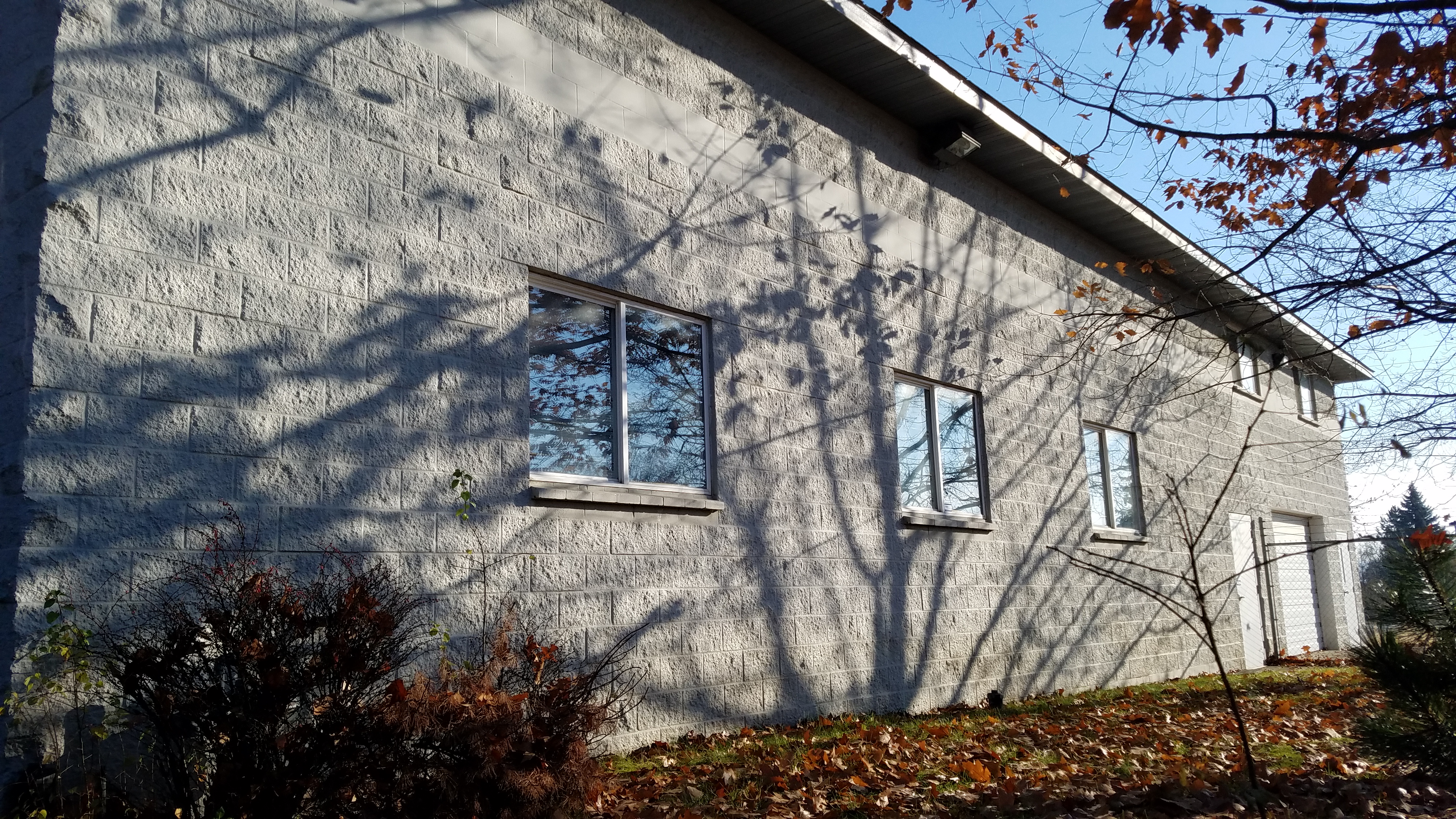 Sunny and freezing (31F) this afternoon. Still relatively warm for us here in the Pacific Northwest in the US. Had to blow out my sprinklers at my warehouse today. The sun and shadows on the side of the building looked cool, so I took a picture.