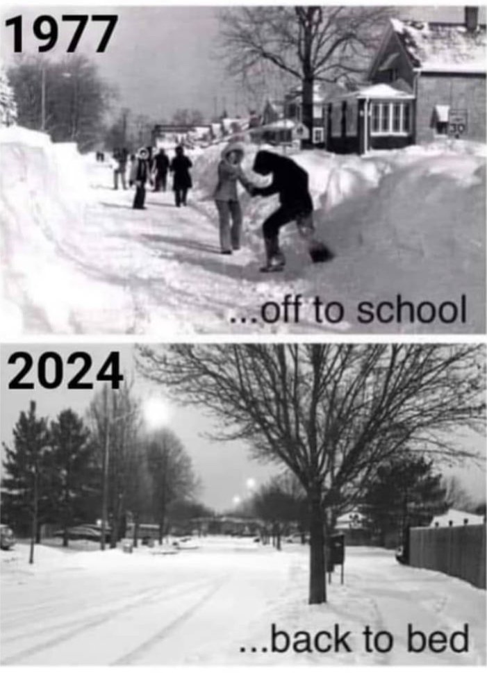 My sister was much younger and still in junior high. She asked the neighbor kids her age how many snow days they got, figuring school would be closed a lot due to snow. They looked at her and said, "What's a snow day?"