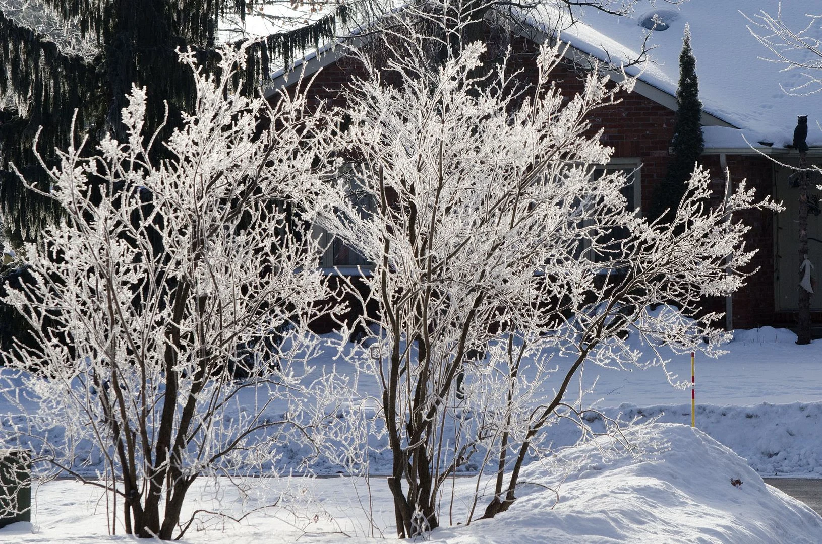 Winter can certainly be annoying, but every so often it gives you something special. It was -18C this morning and we had a hoar frost. The whole neighbourhood was sparkling...few shots on my property: