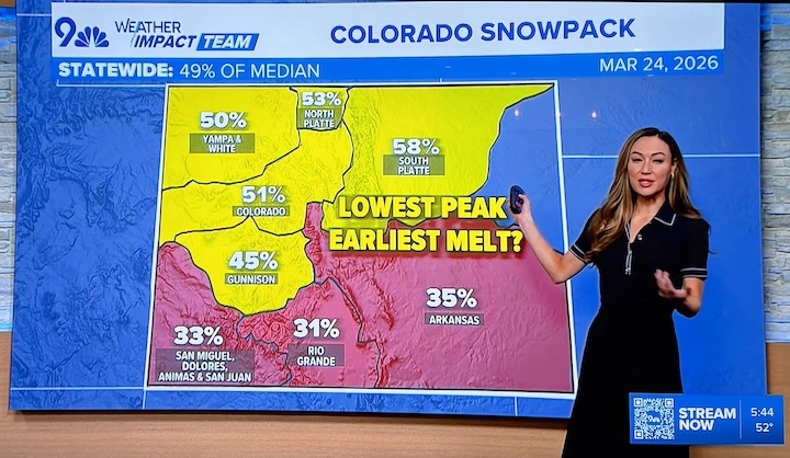 Well, this is terrifying if I really think about it. As of last weekend, the snow in the mountains has started to melt, making this the lowest peak snowpack (less than half the median overall, with some watersheds at 1/3 of median!) and probably the earliest melt ever recorded in Colorado.