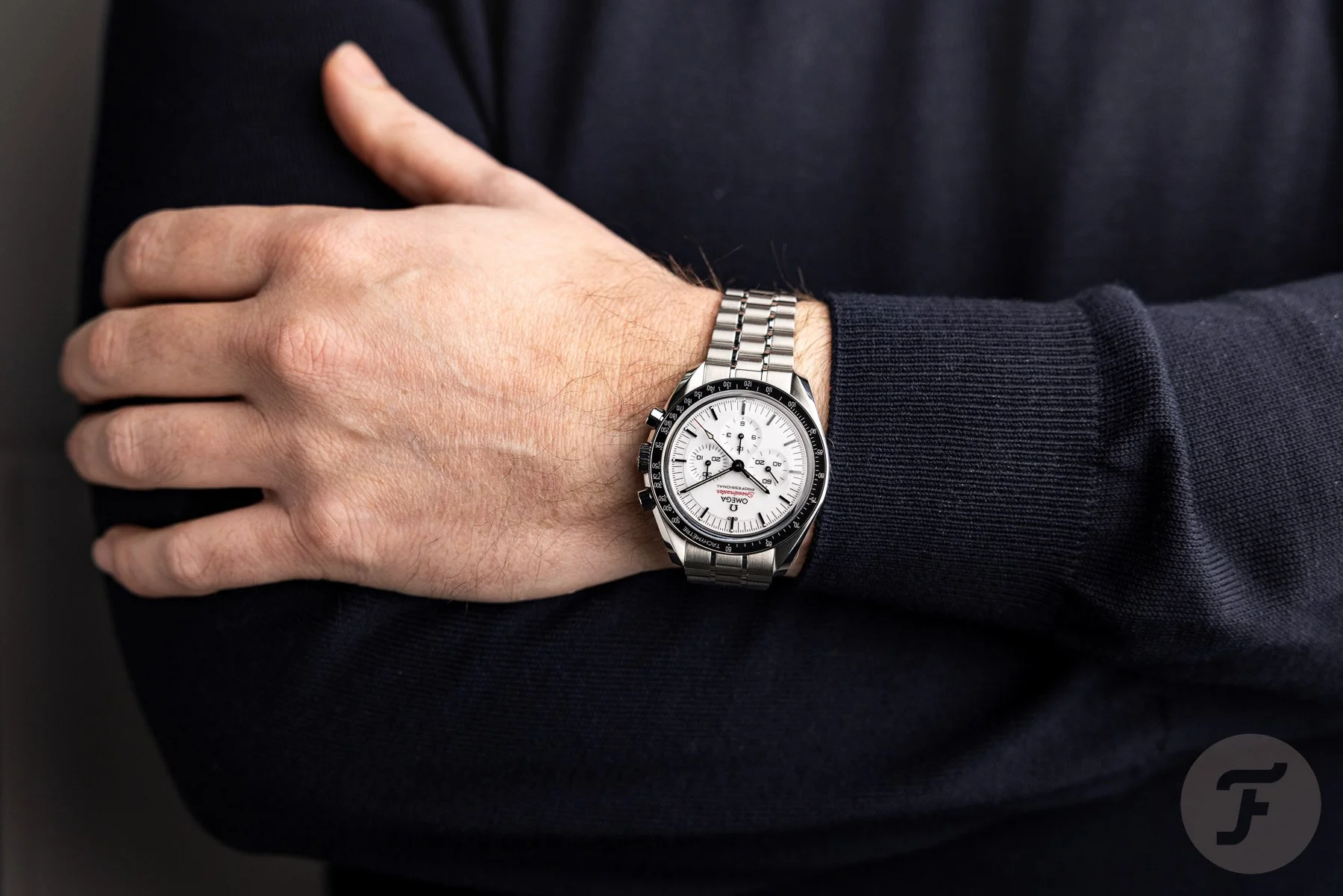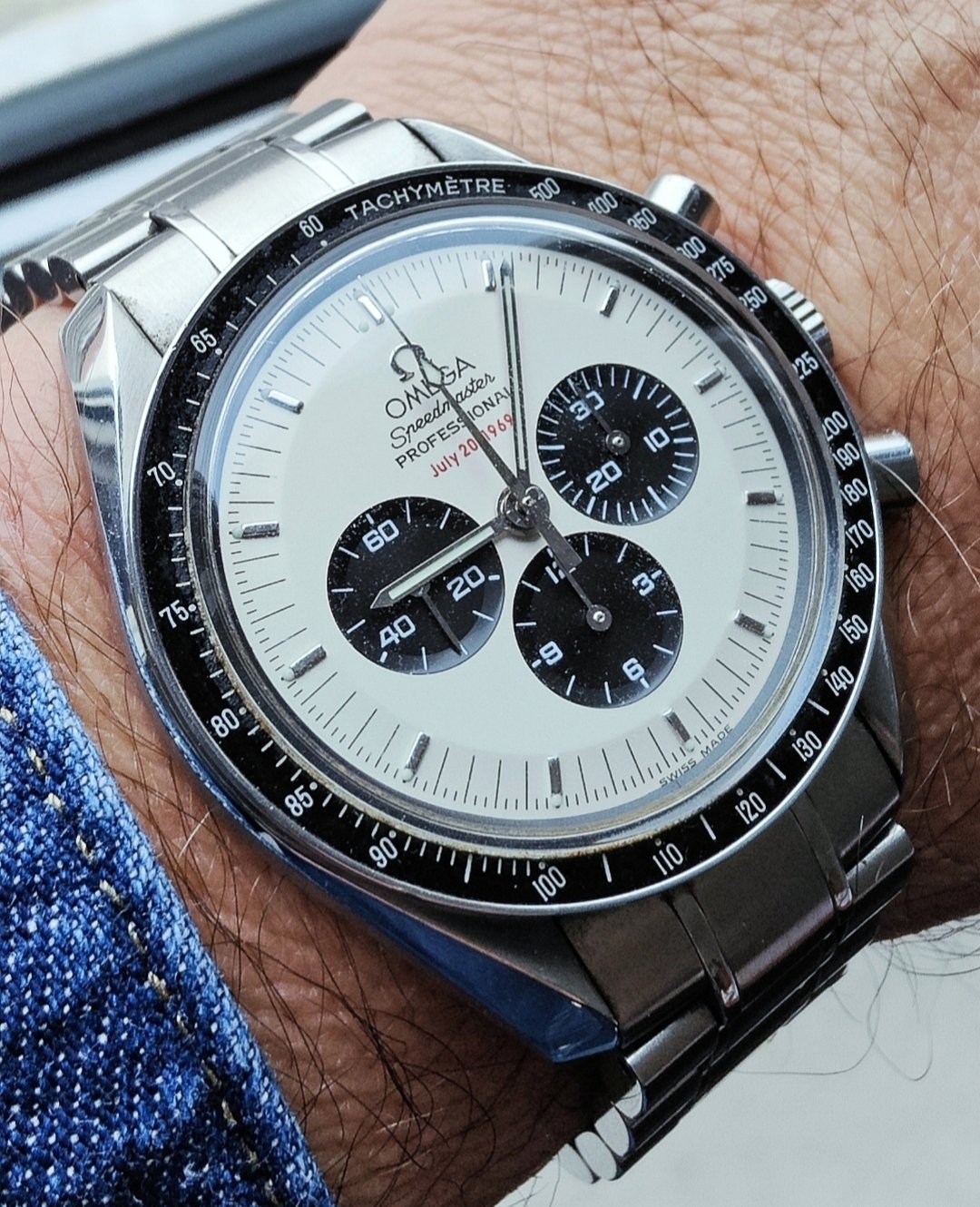 I own the classic speedmaster 1861, for some reason when I tried the white speedmaster on the bracelet (latest release) the dial looked dull and too plain without enough black contrast, unlike the white diver 300 that I own or the Daytona Panda which has a better contrast.