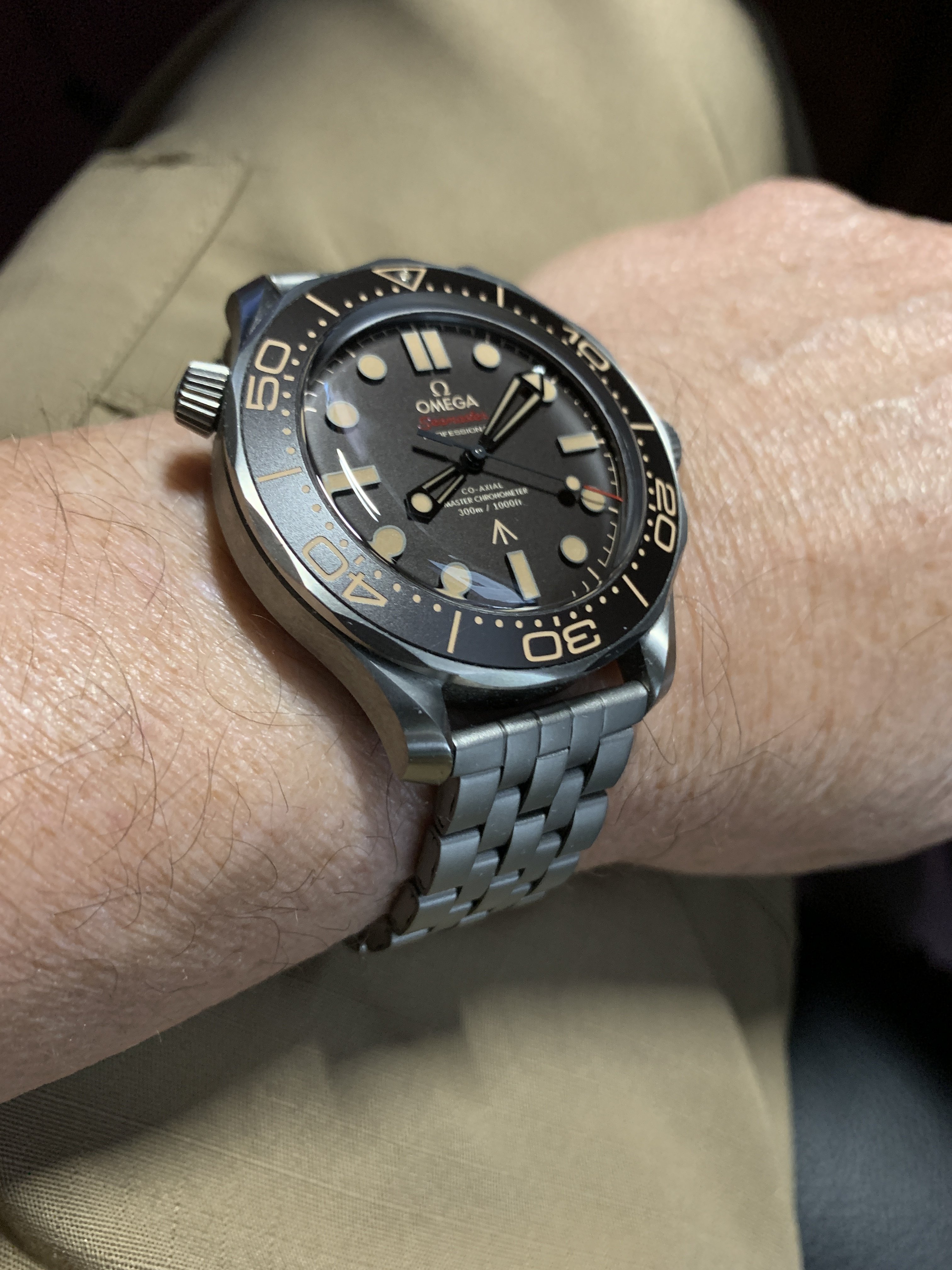 Once I put it on I began to wonder what the thickness was of the titanium bracelet on the No Time to Die 300m. I've done some google searches but the only references I find is to the thickness of the case.