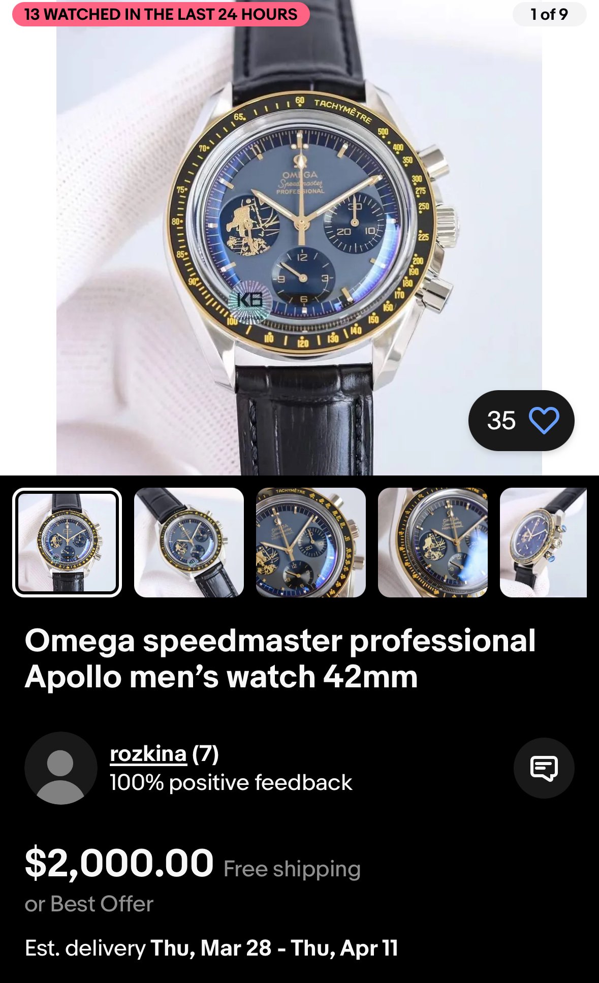 seems to me that the detail on the astronaut isn’t quite what I’ve seen in other pics of actual watches. Also, the seller joined just 3 months ago and only has 7 reviews…