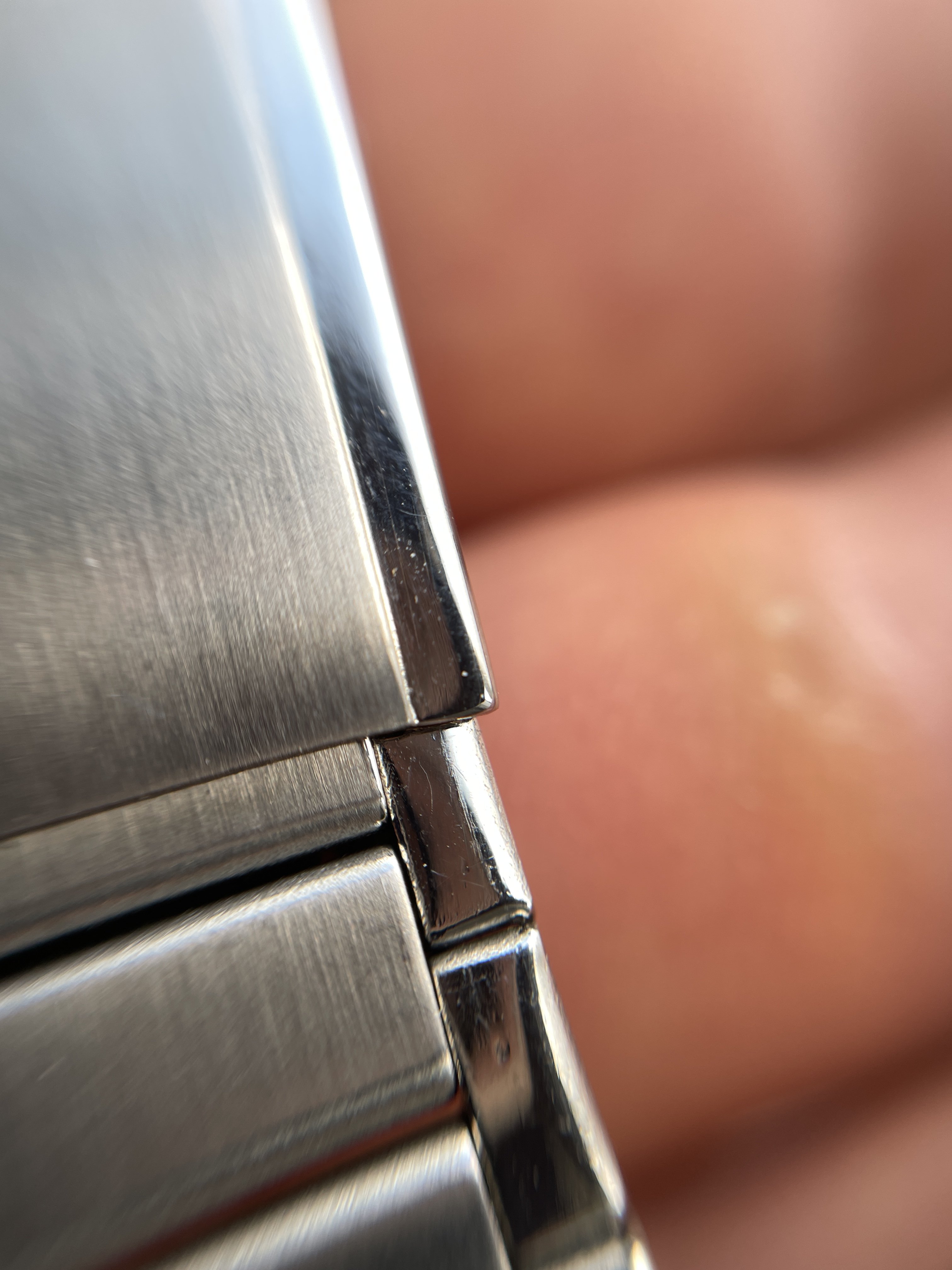 With macro lense you can see signs of handling especially on the polished surfaces on the links and clasp, but I think they are just handling and not from actually usage.