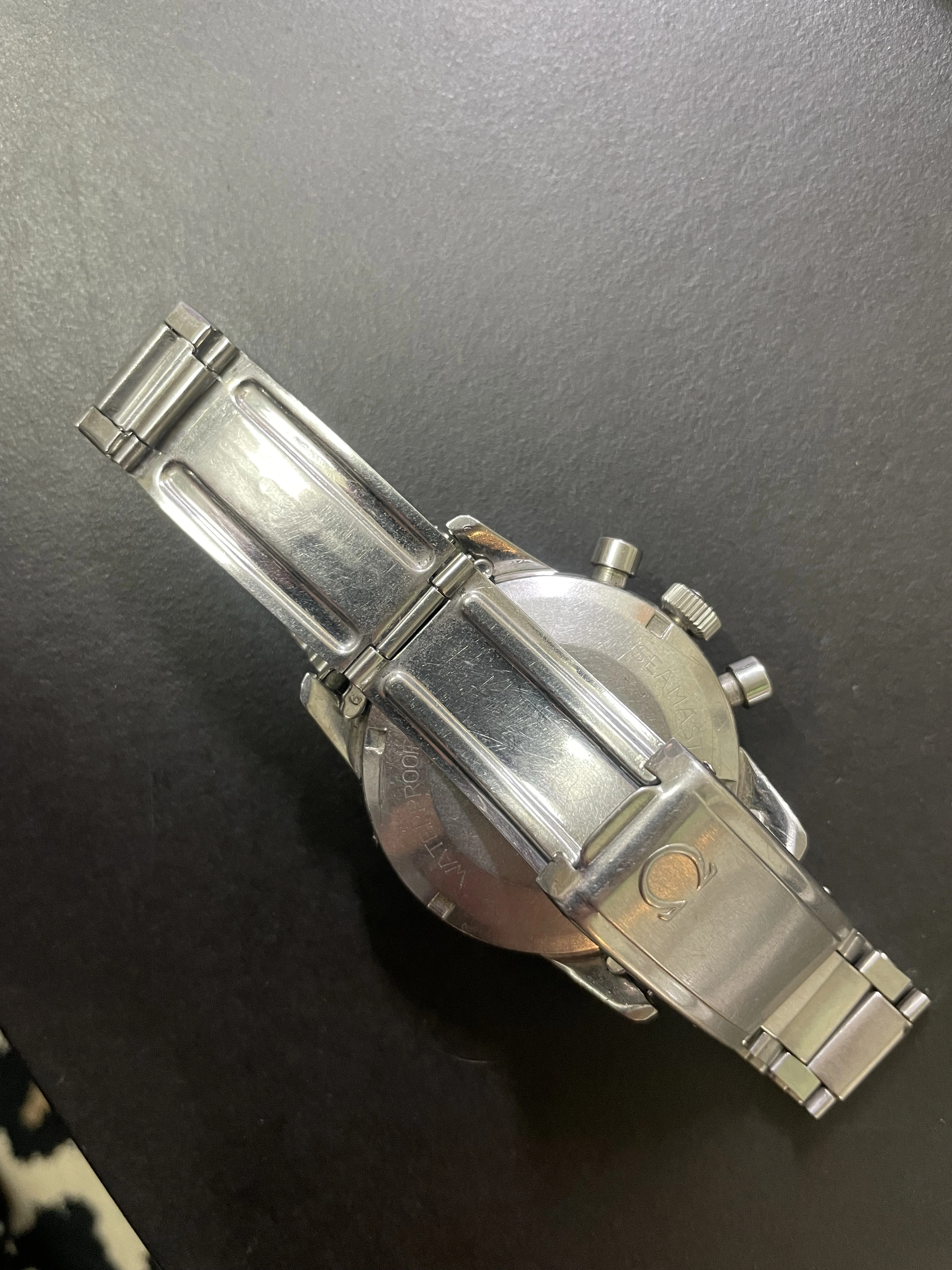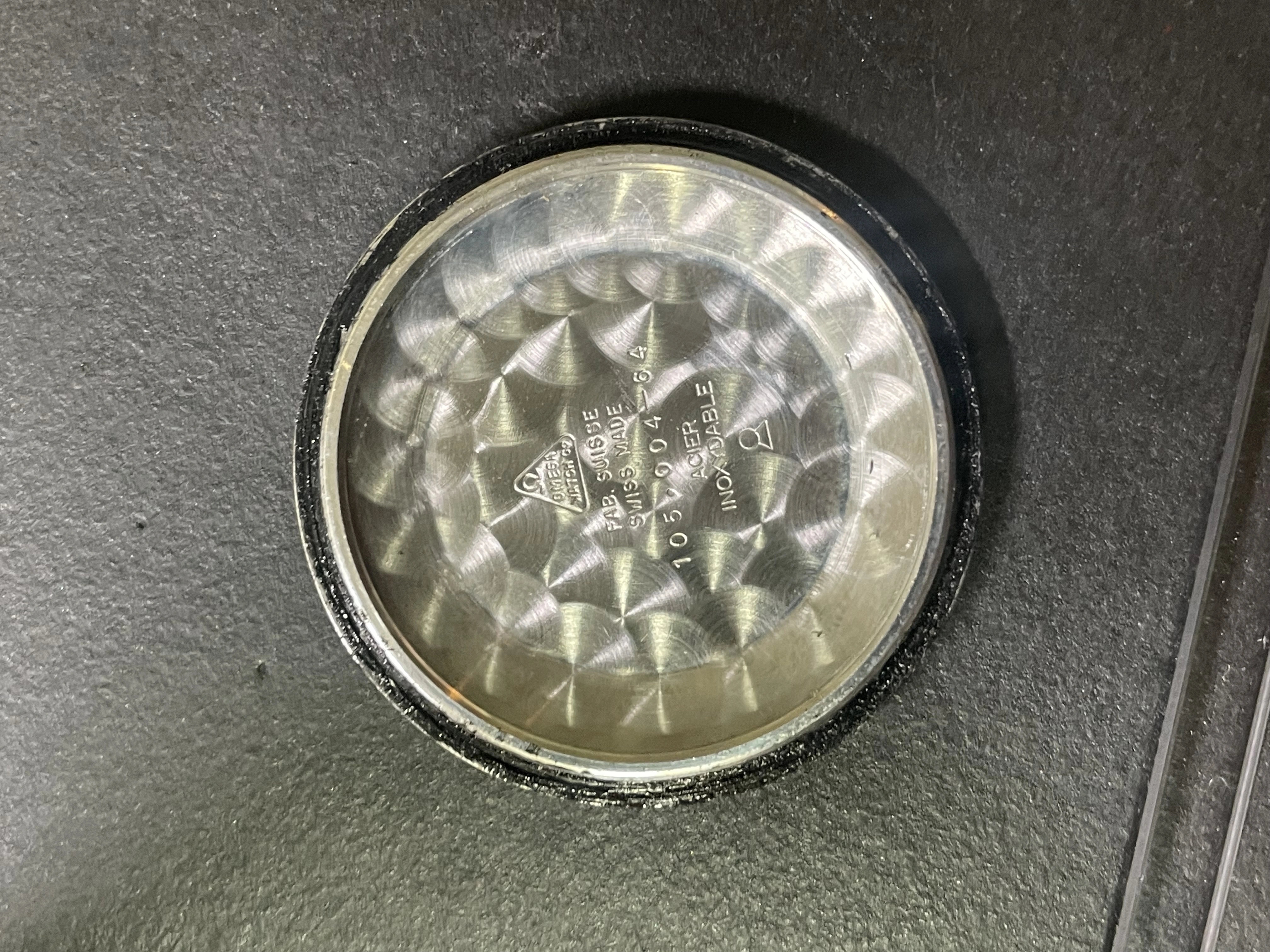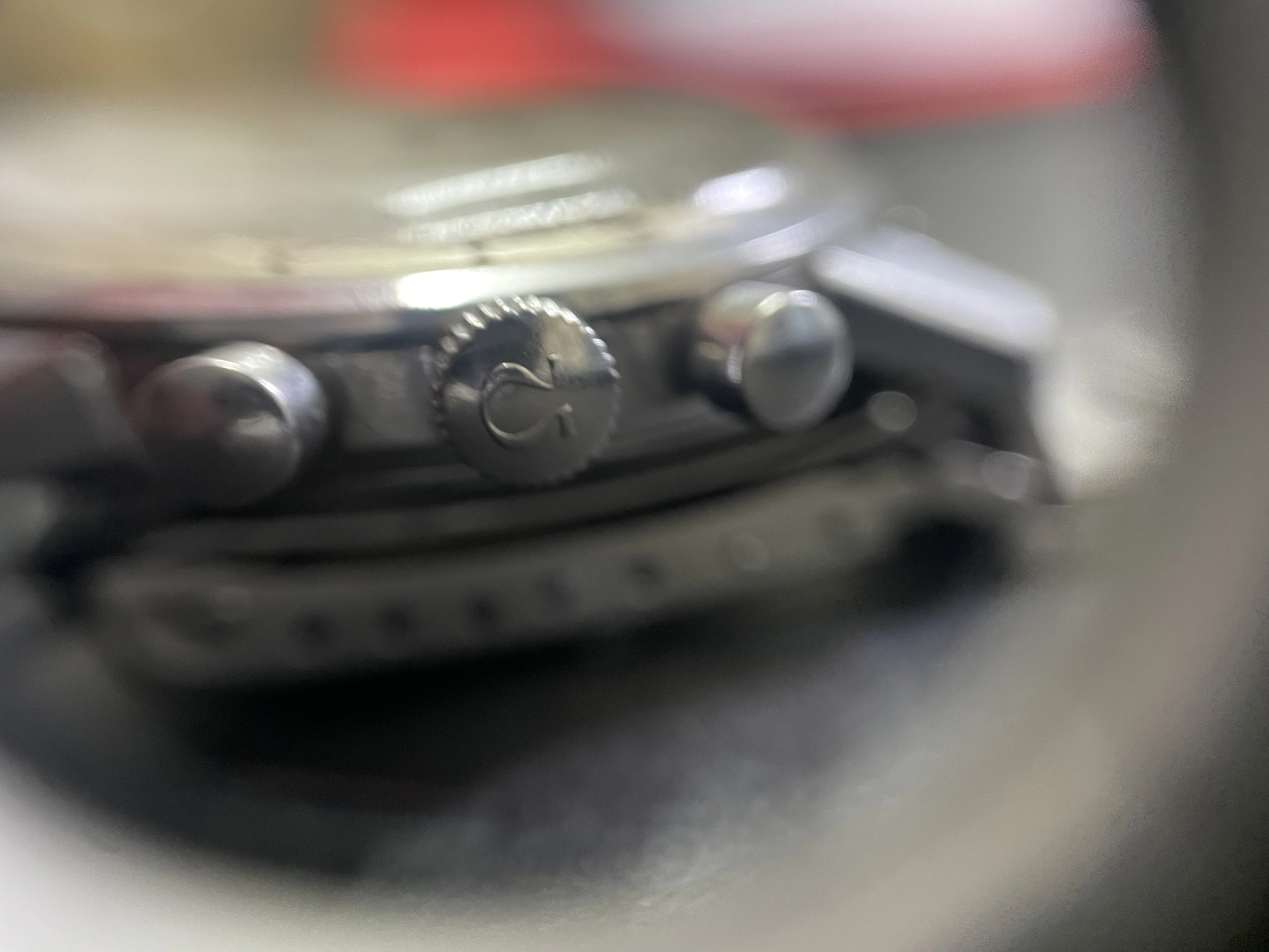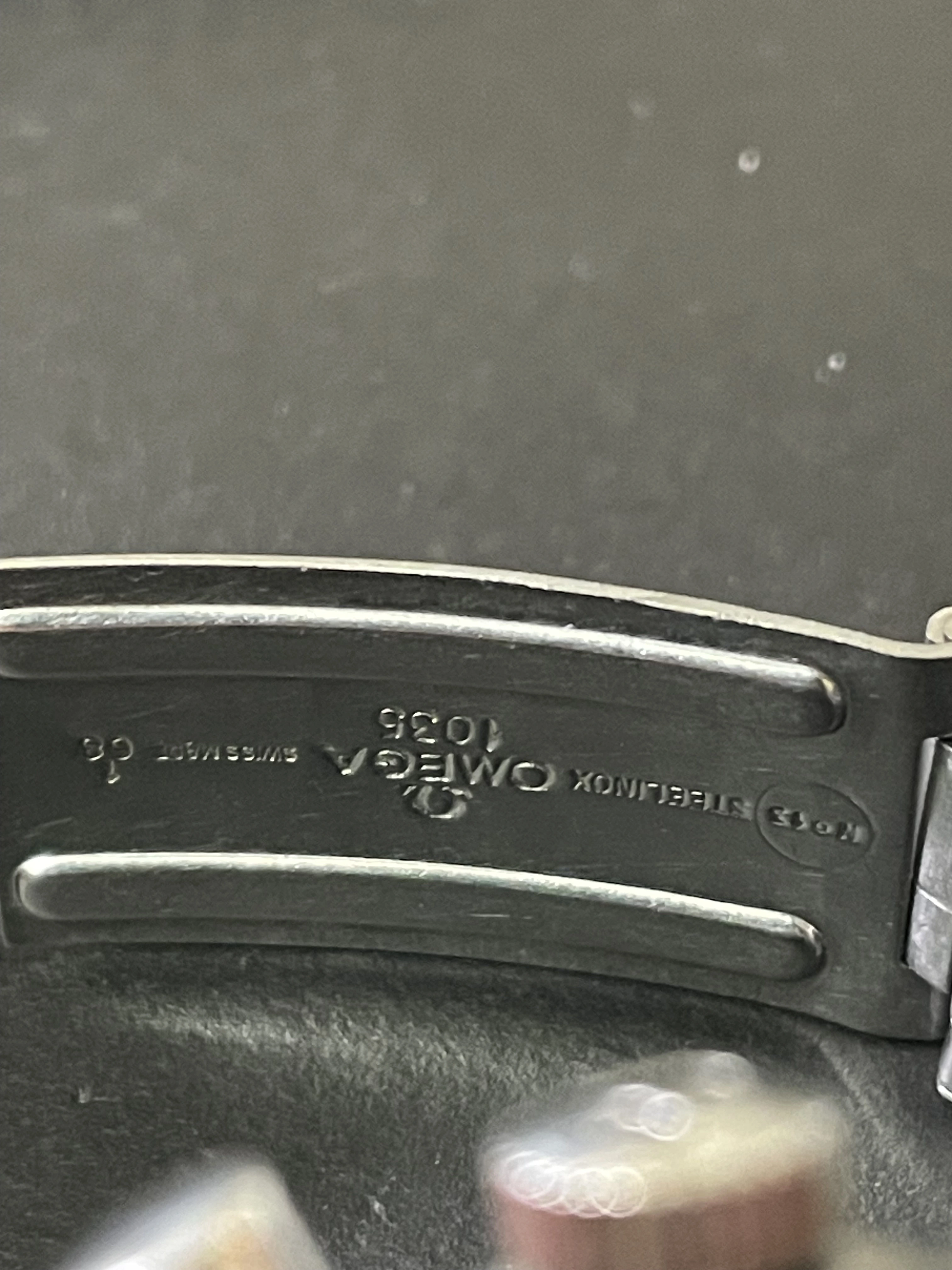 Quite interesting that applied metal logo is a bit different than some of these ref have. With some of them the Omega sign feet are angled, some straight. Also, most of these do not have oval "O" in Omega text. But, probably these had both styles used... maybe. Not sure about that crown. Also, the arrow is sometimes more "filled" and another times "feathers" are more separated. What is correct...