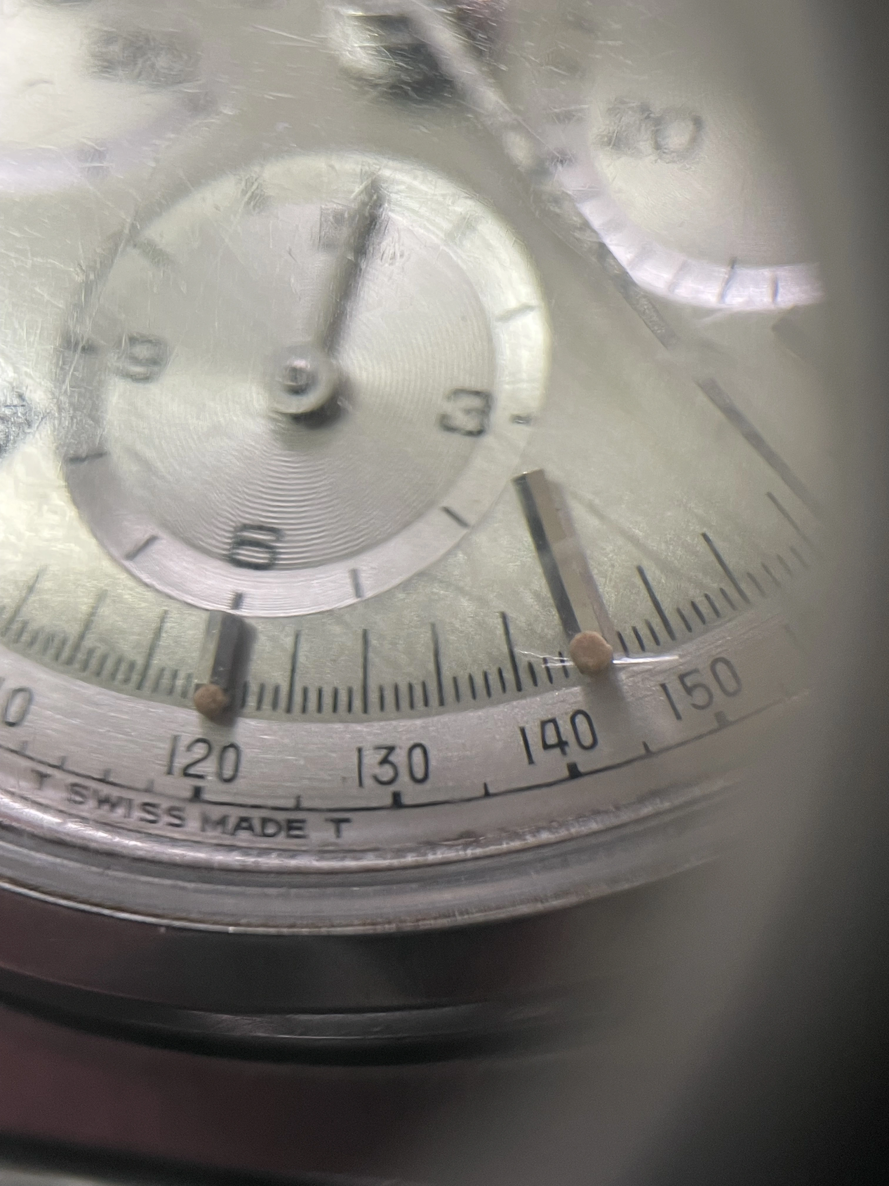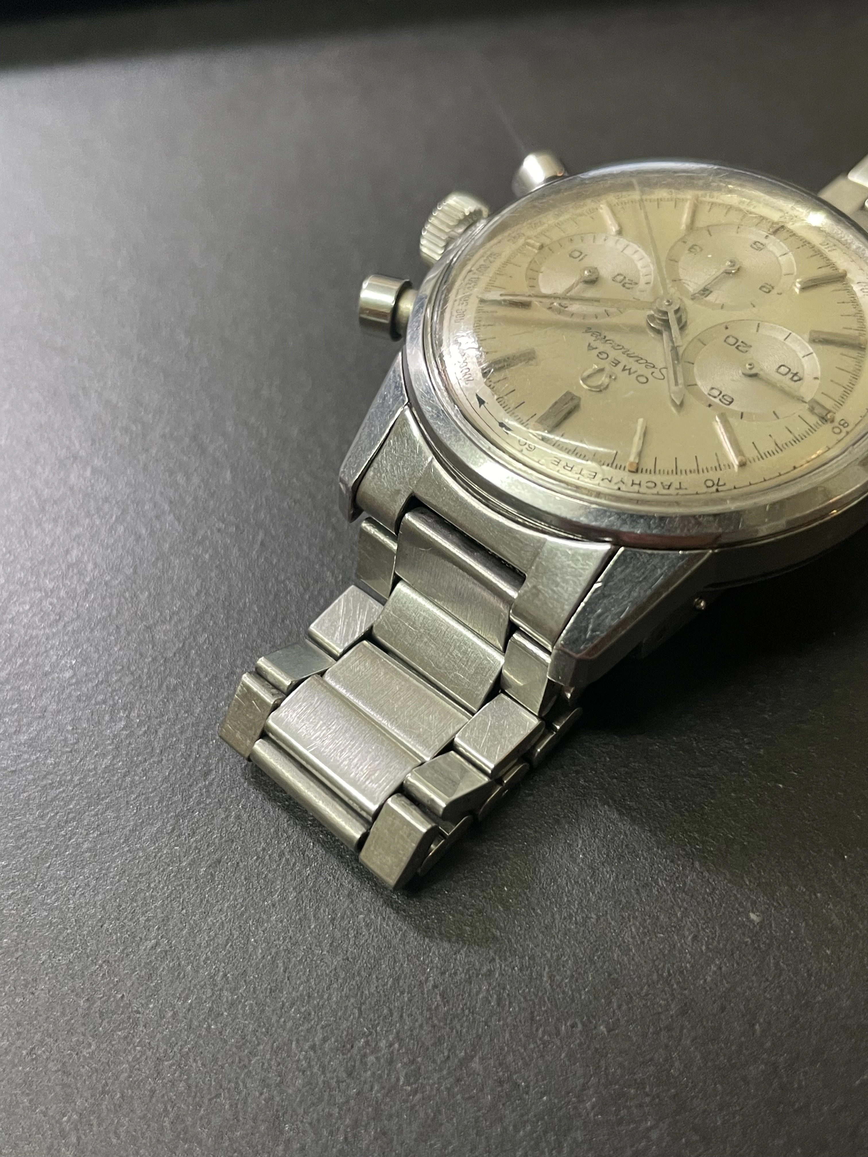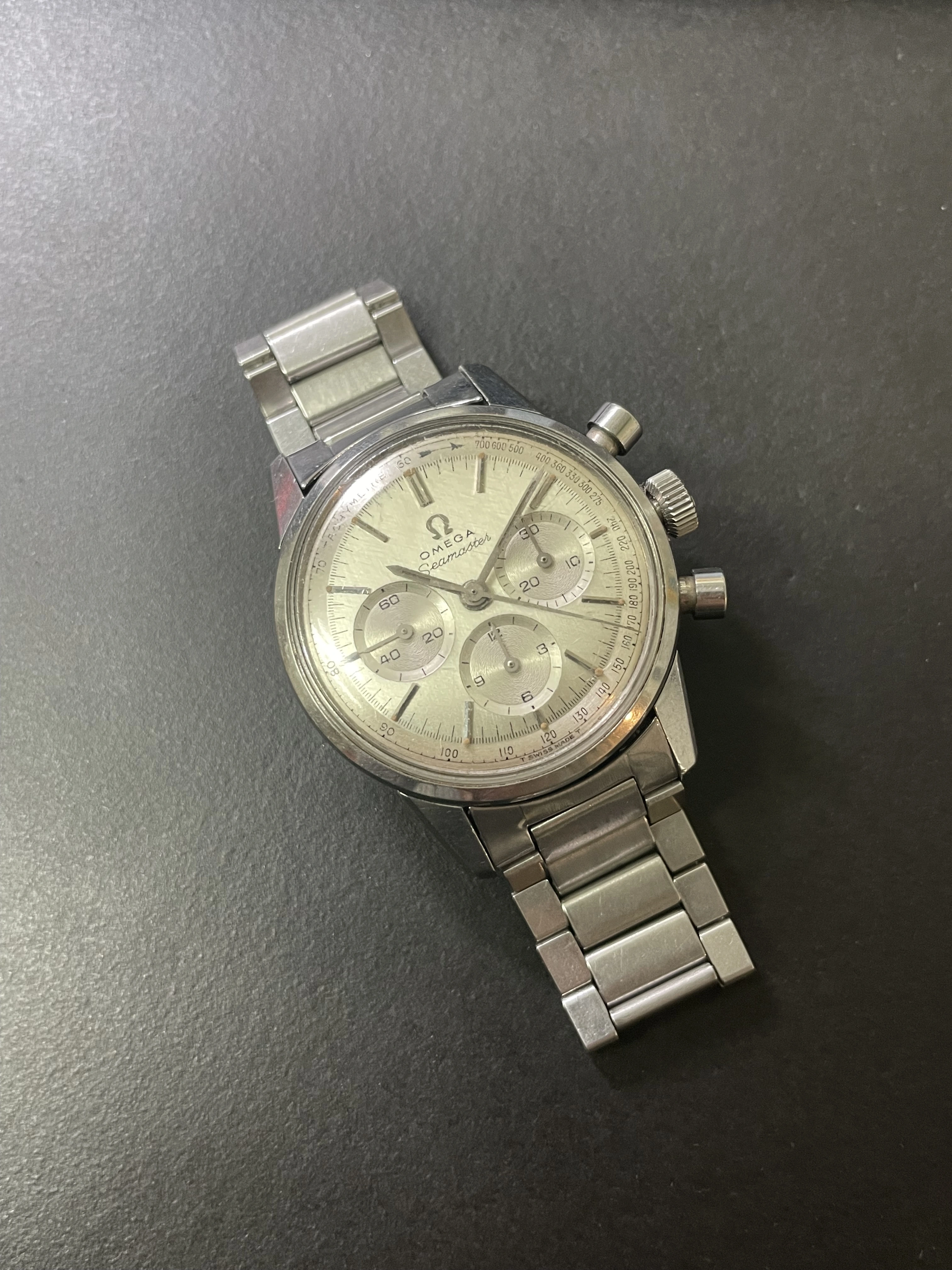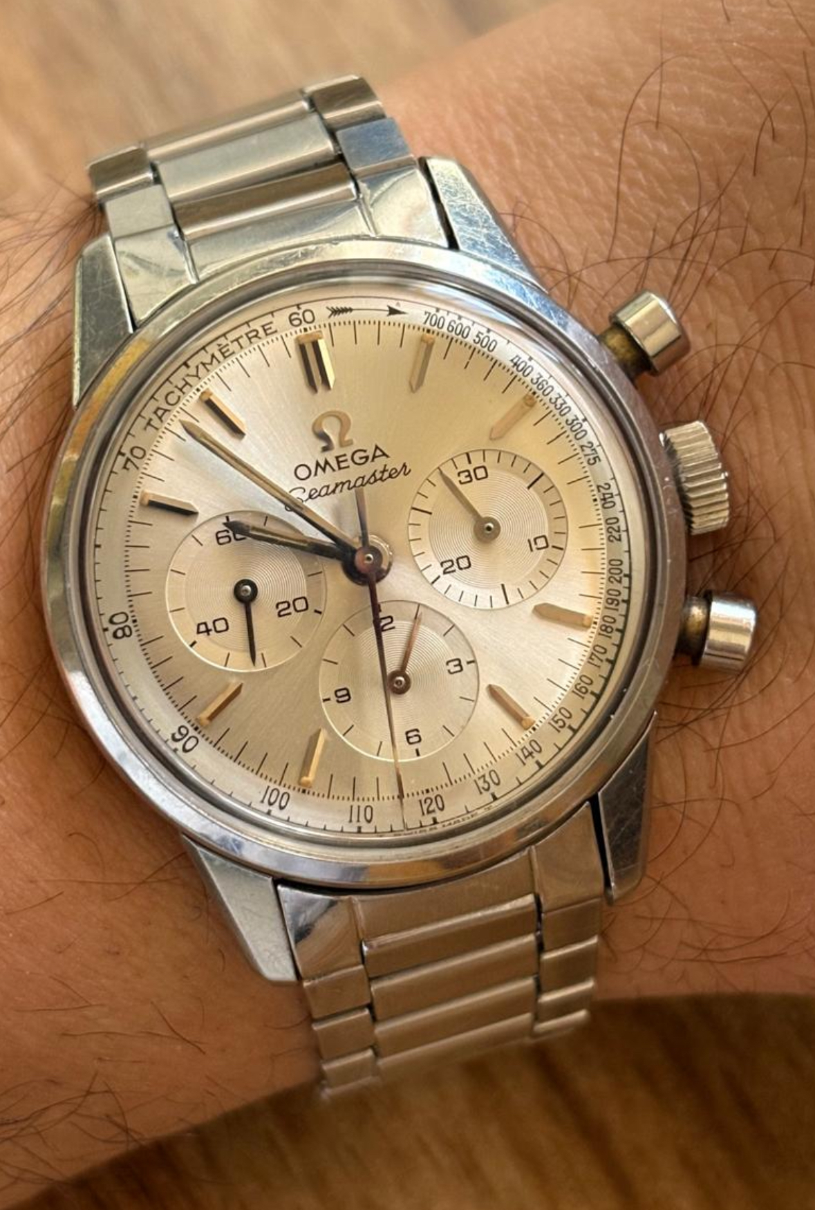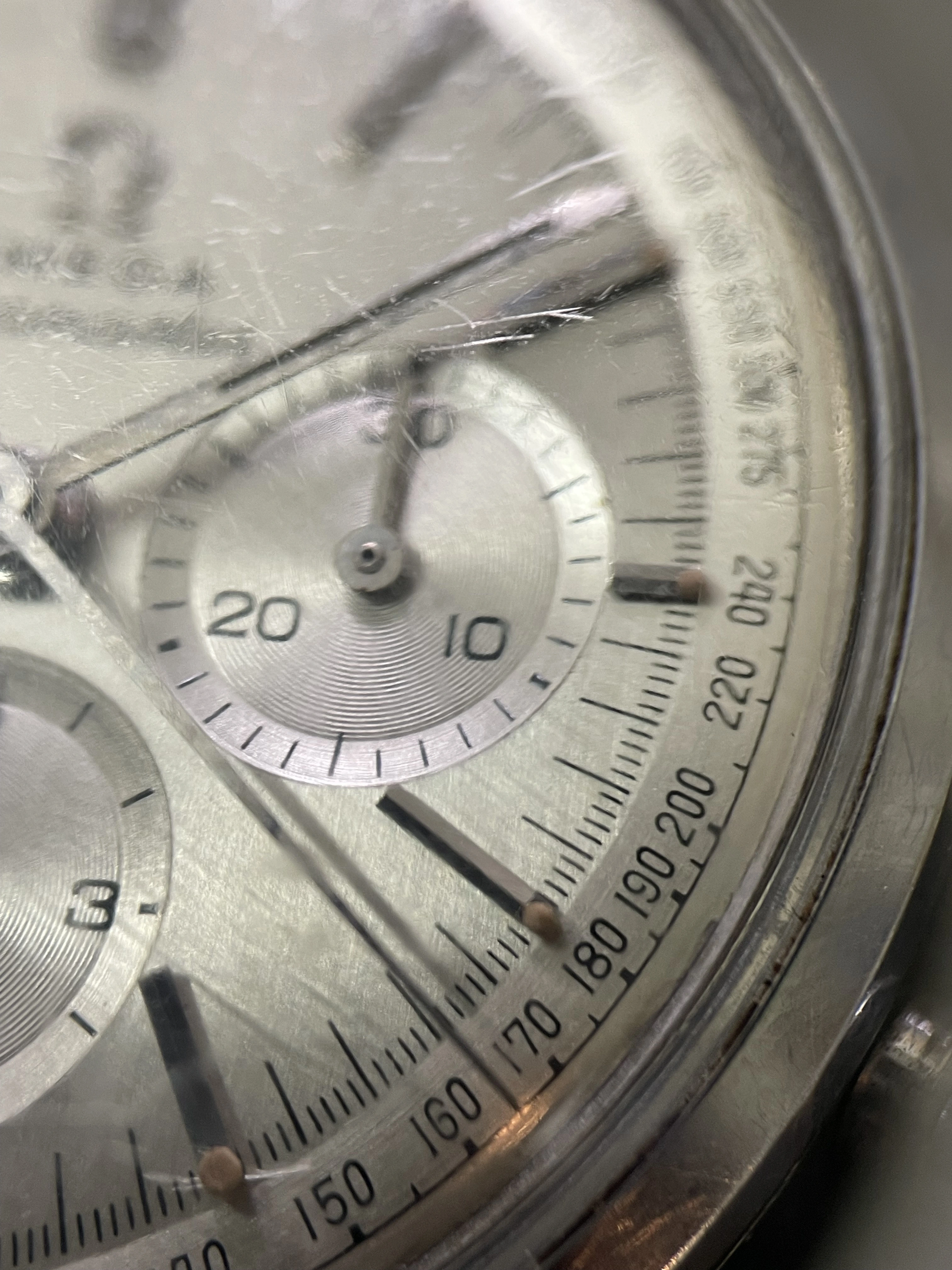 Quite interesting that applied metal logo is a bit different than some of these ref have. With some of them the Omega sign feet are angled, some straight. Also, most of these do not have oval "O" in Omega text. But, probably these had both styles used... maybe. Not sure about that crown. Also, the arrow is sometimes more "filled" and another times "feathers" are more separated. What is correct...