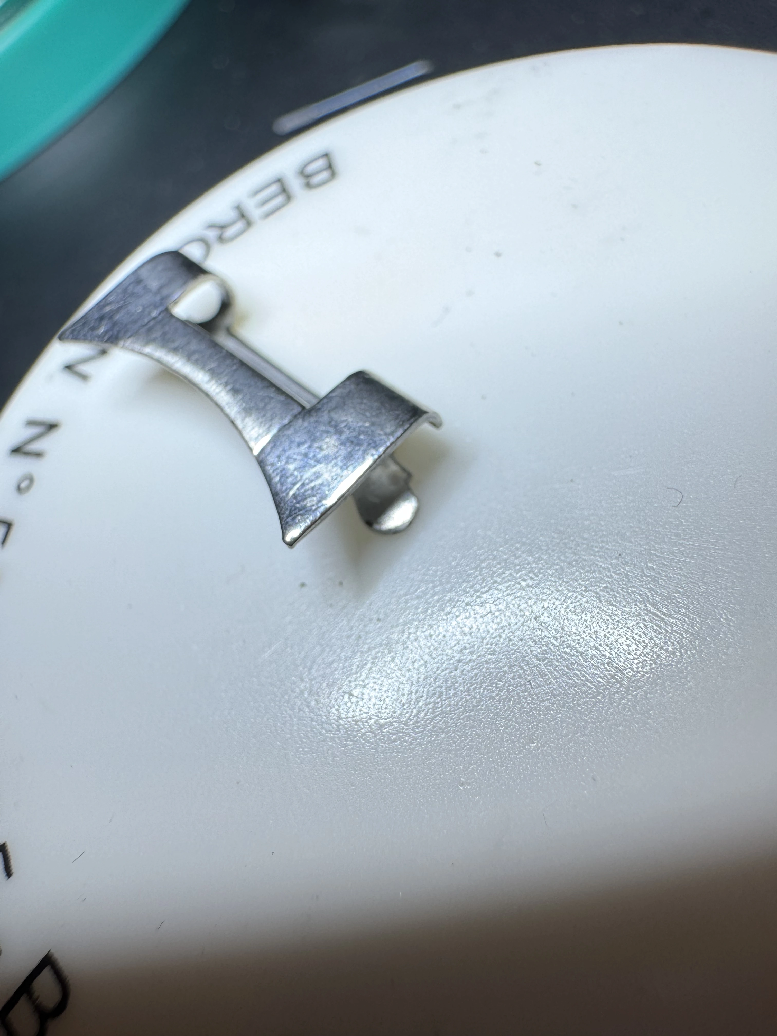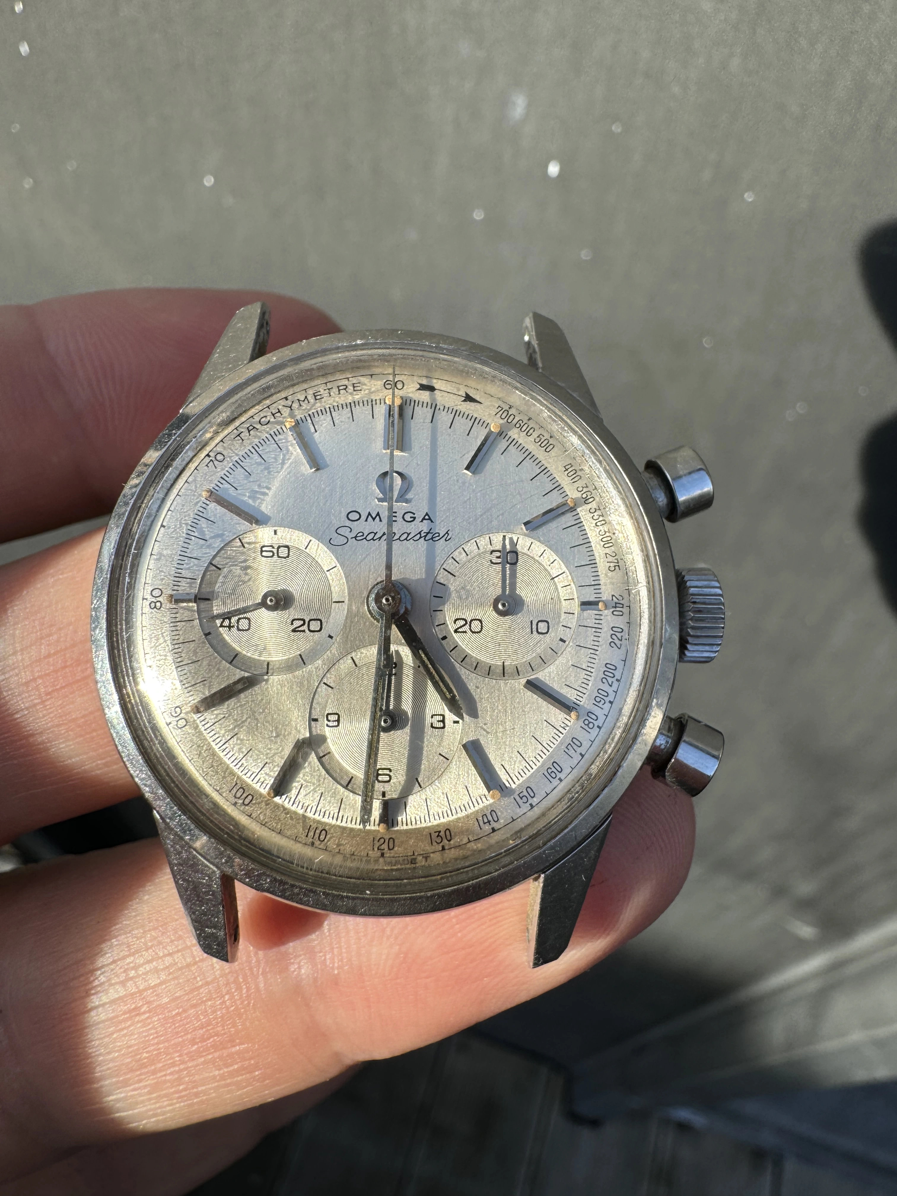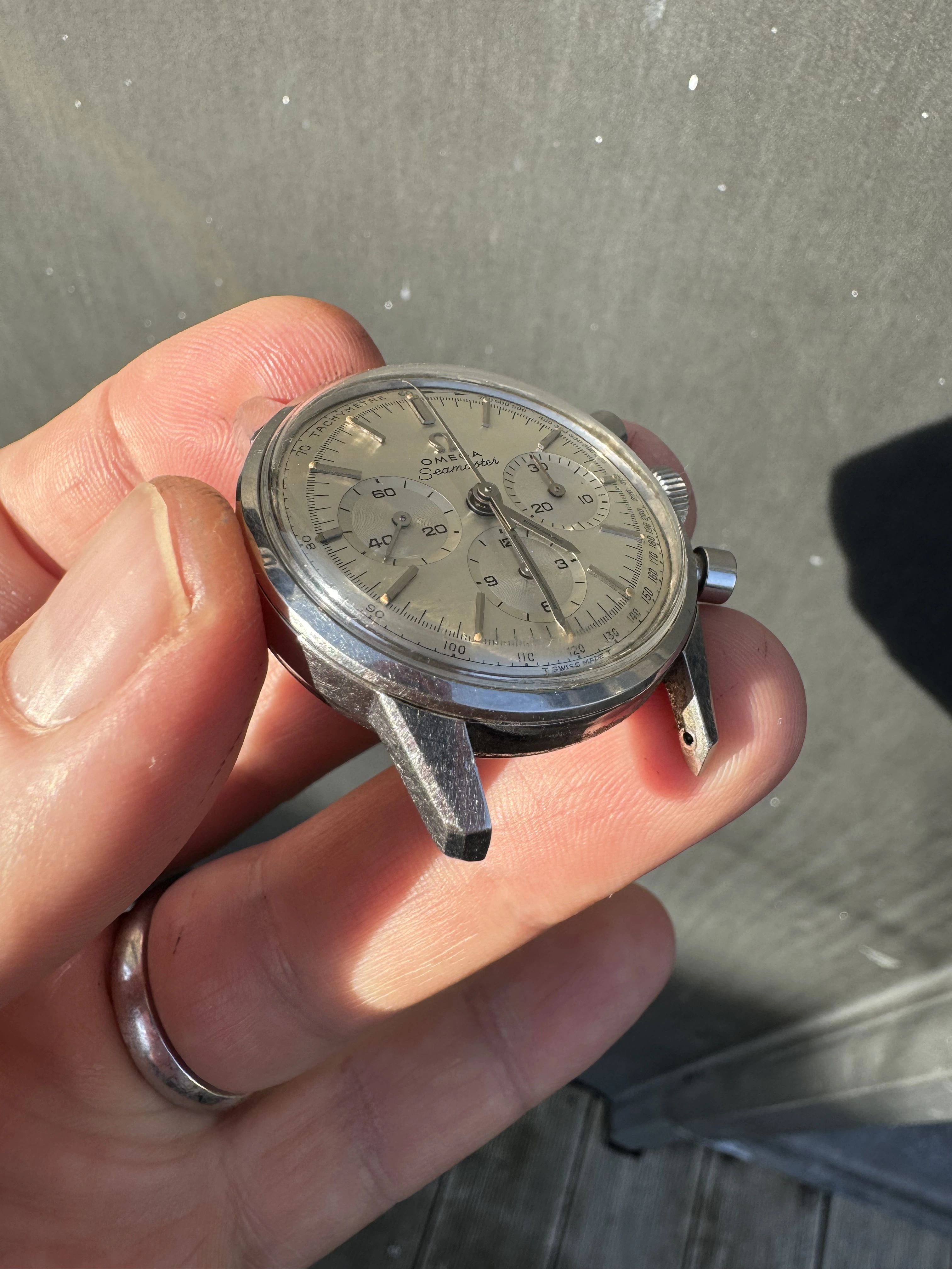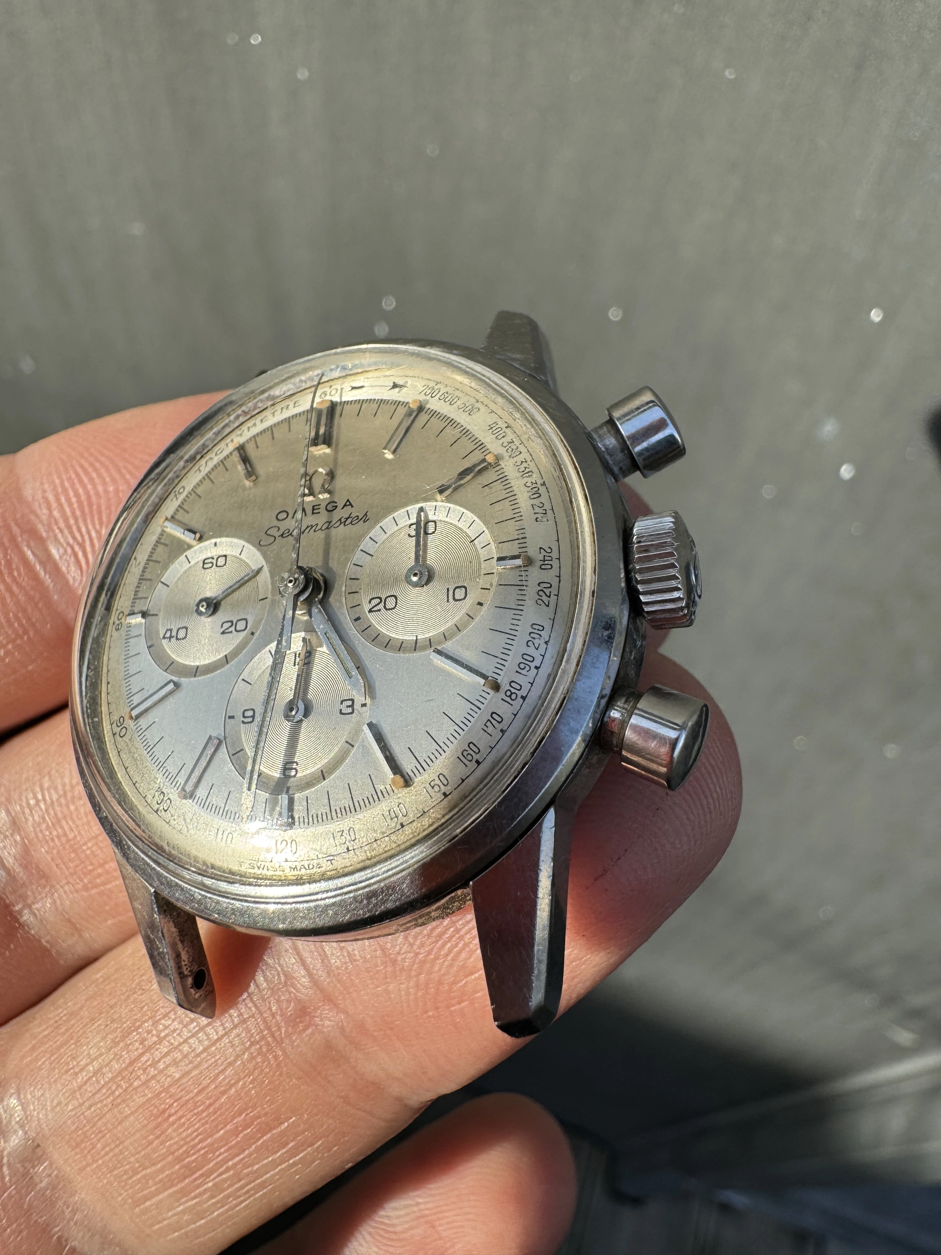 ·Here's the 105.005 I've had sitting in a box for years with applied indices at 3 and 9. Originally it came with the BOR bracelet but now has #7 end links on an aftermarket flat link (because somehow this became a post-Xmas gift to the wifey & I couldn't get the original BOR bracelet to go down small enough!)
