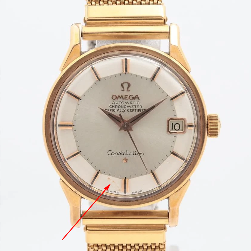 Redial, no "swiss made" , font looks off, rotated star, some damage at 7,
