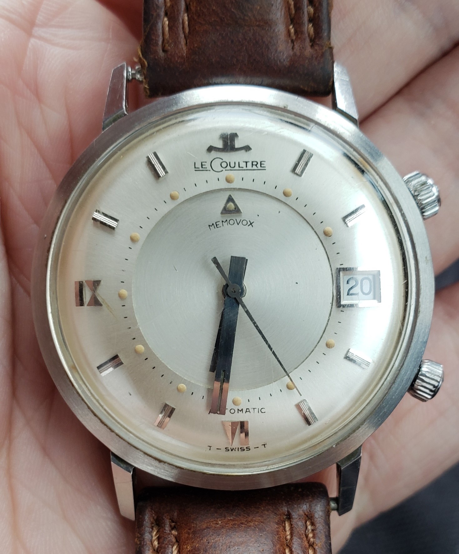 ·Bought this really nice Lecoultre earlier today for a good price. It is in great condition with original crowns and original case finish. However, what I didn't realize is that I think the watch is supposed to read MEMODATE not MEMOVOX? TO me it doesn't look redialed or atleast it is very nicely done...... What do you all think?