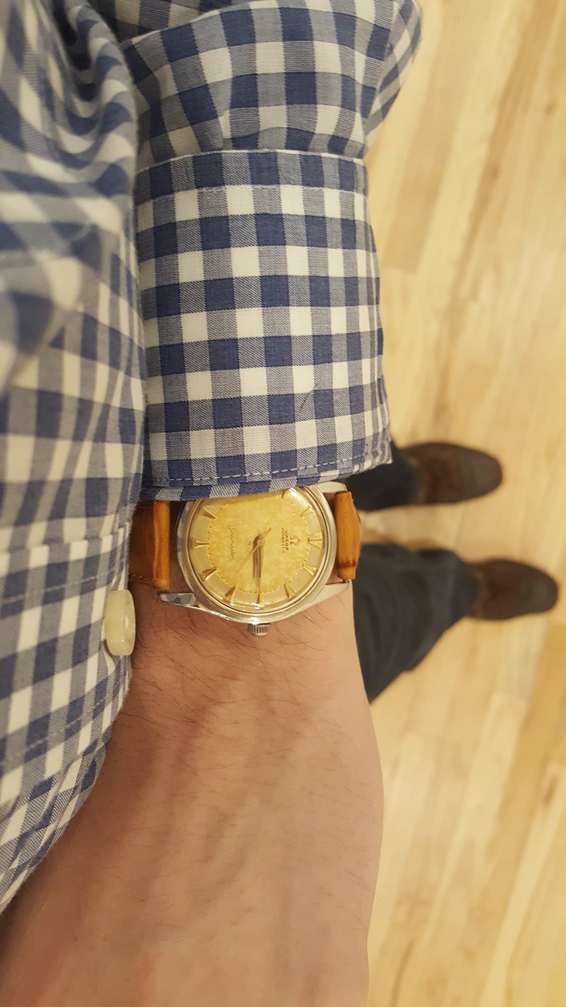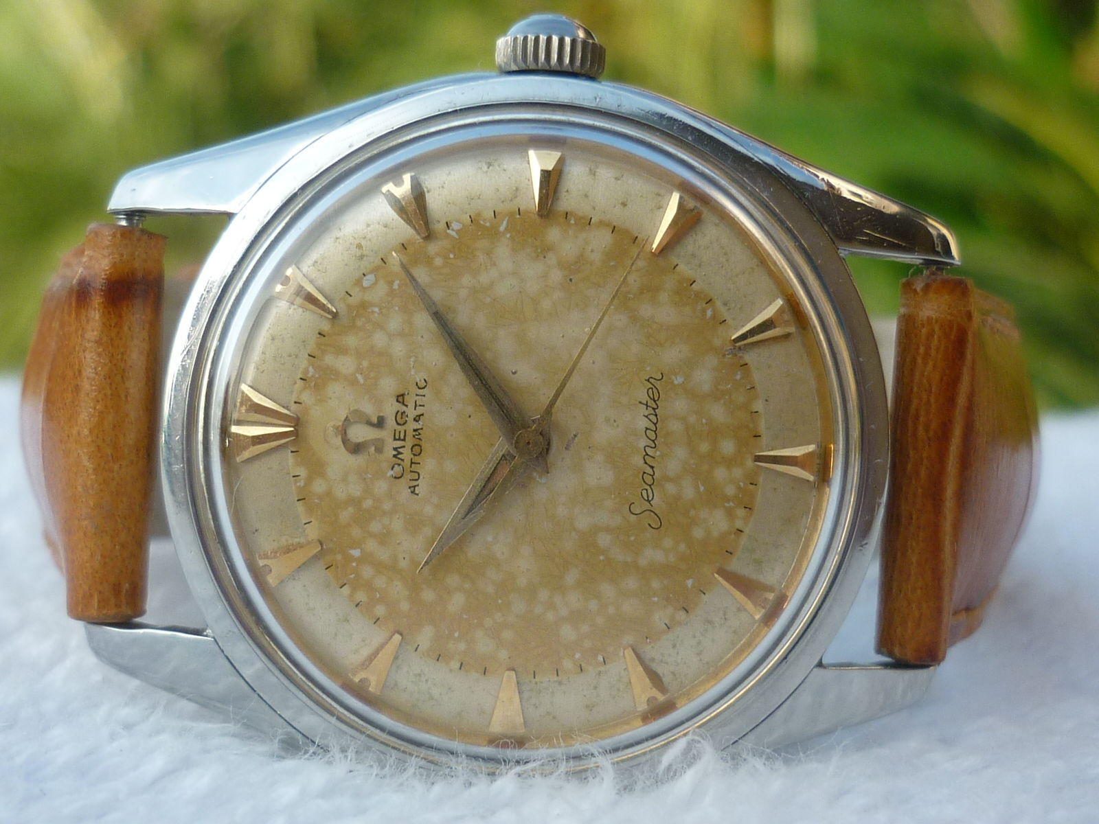 Last month I won a 1958 Omega Seamaster on ebay. This was my first vintage watch purchase, but I've had my eye out for a vintage Seamaster for nearly a year. I particularly enjoy how the patina looks, and the golden hour markers complement it nicely. I couldn't be happier with my decision.