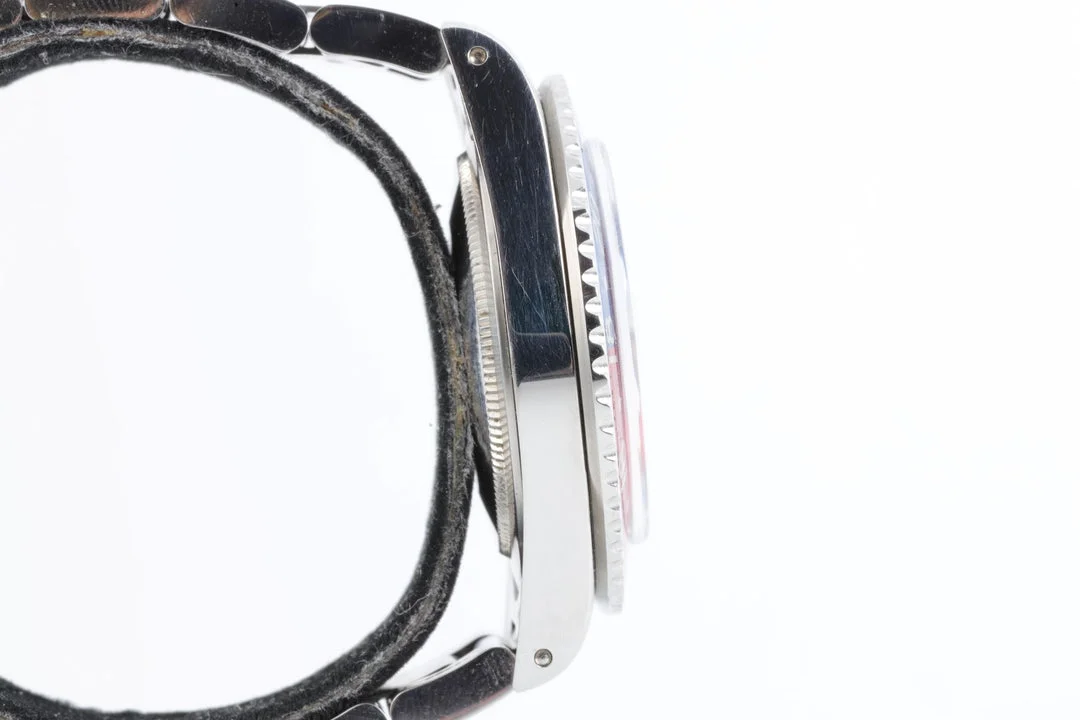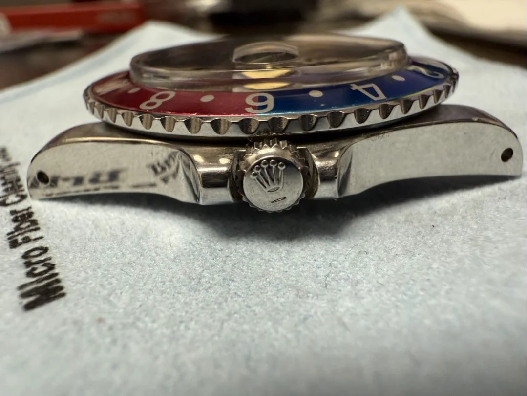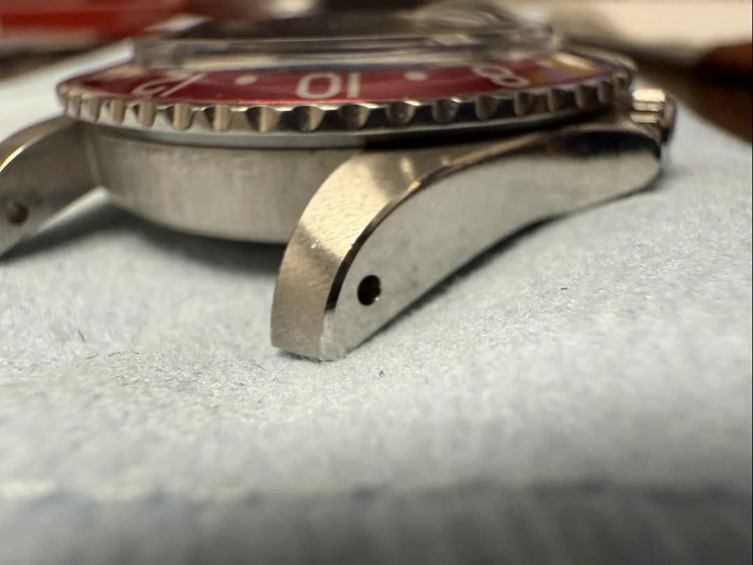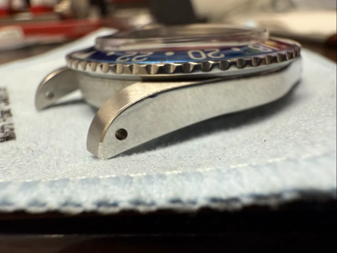 When I inspect the watch based on the provided pics, the question to ask is does the overall look and condition correlate with all components? So, lets start with the case, looks like it has been recently recut quite nicely. There is no catering around the lug holes which is a big plus. The reference number between the lugs looks extremely clean, but the type font is consistent with 8m serial GMTs.
