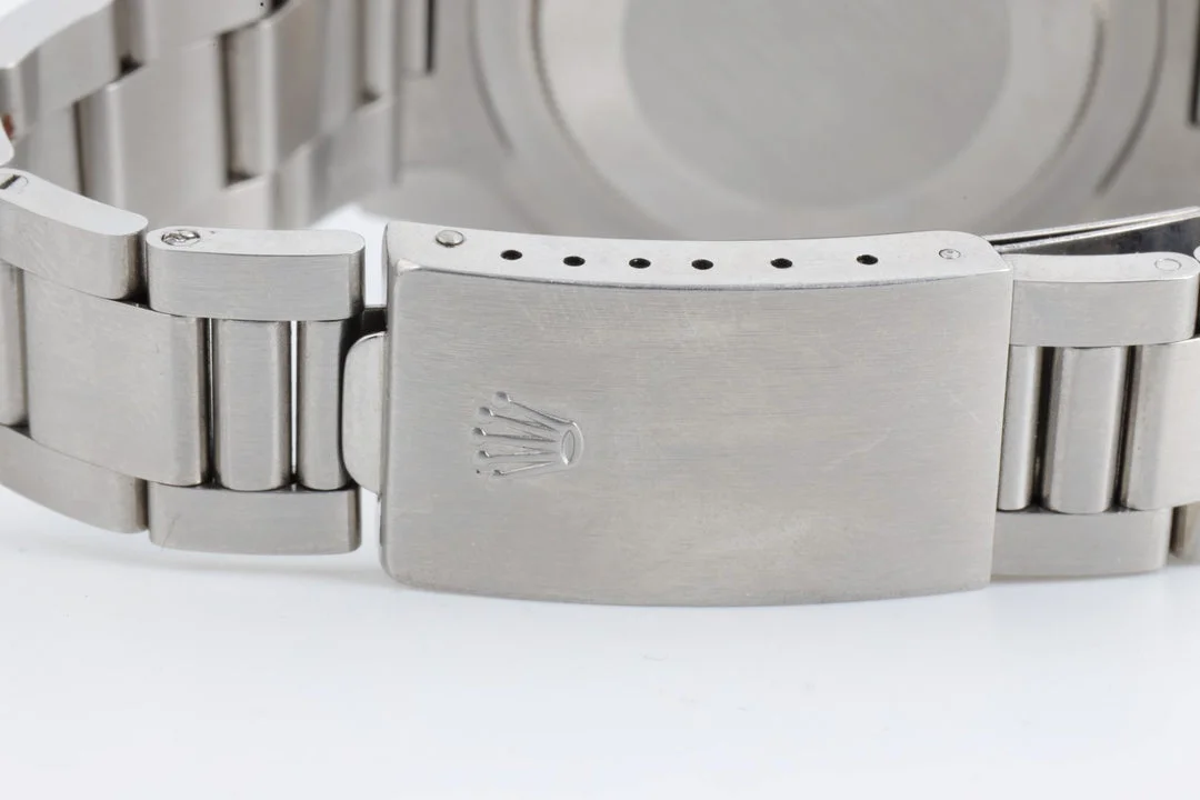 The dial also looks nice and is period correct for this reference. I can't tell if it has chips, blemishes or missing lume which is extremely important. The hands are not attractive and is what holds this watch back. I suspect, they were relumed in past; the composition of the 24hr hand is different and the lume on the hour hand is cracking which is indicative of cheap relume job. Regardless, I would be looking for genuine replacement for the second hand as its not worth salvaging and reluming the other 3 hands to color match the dial.