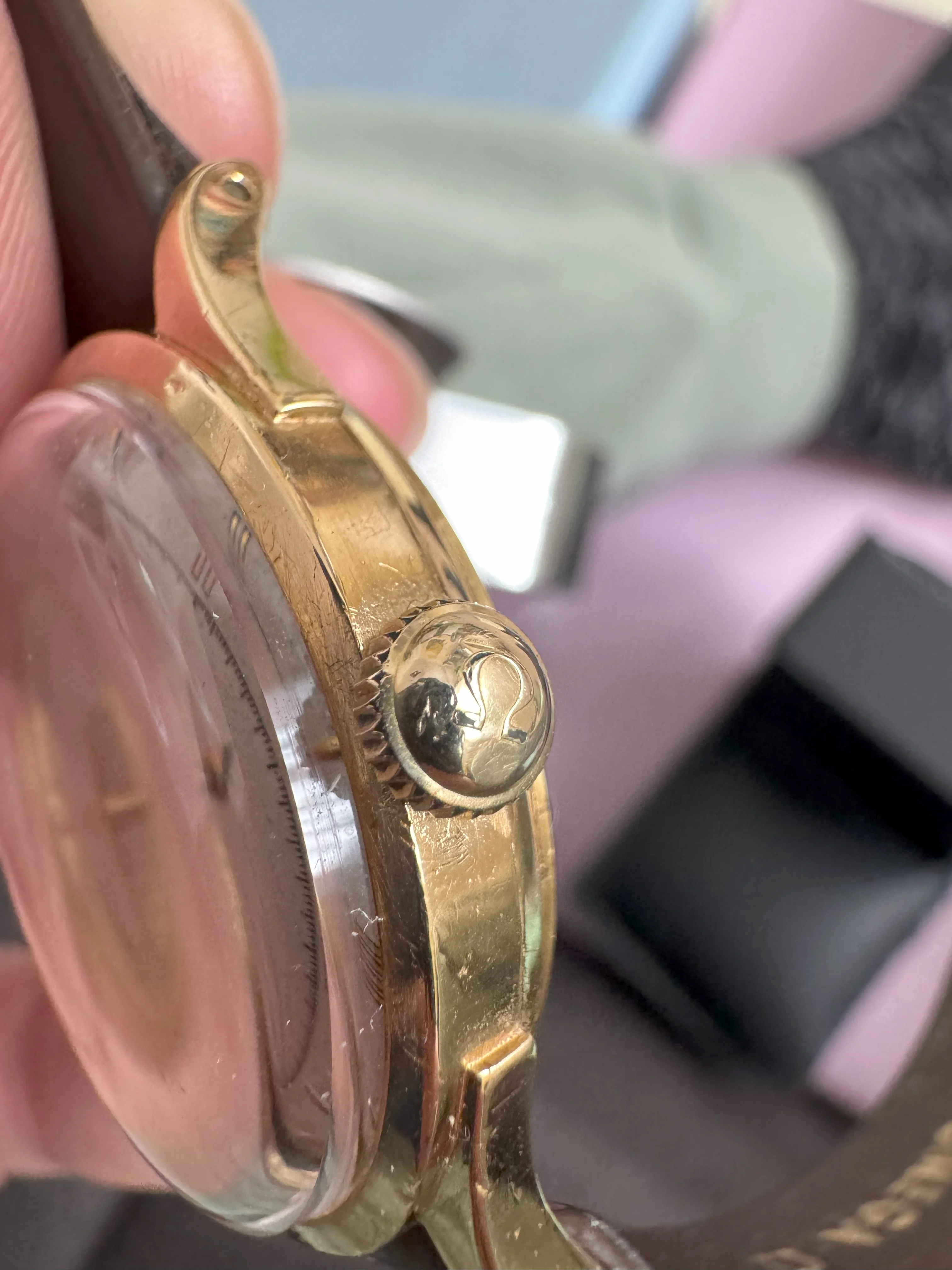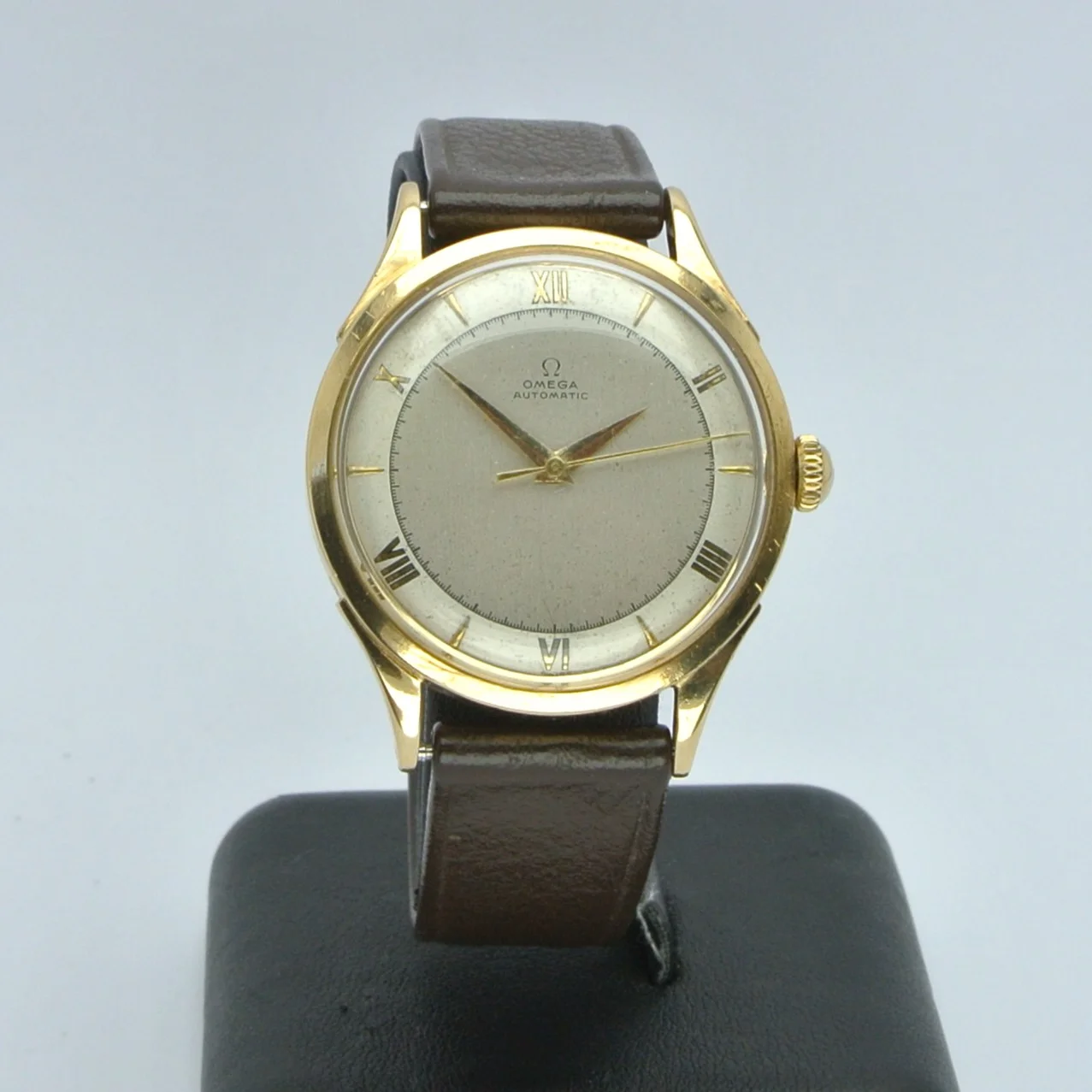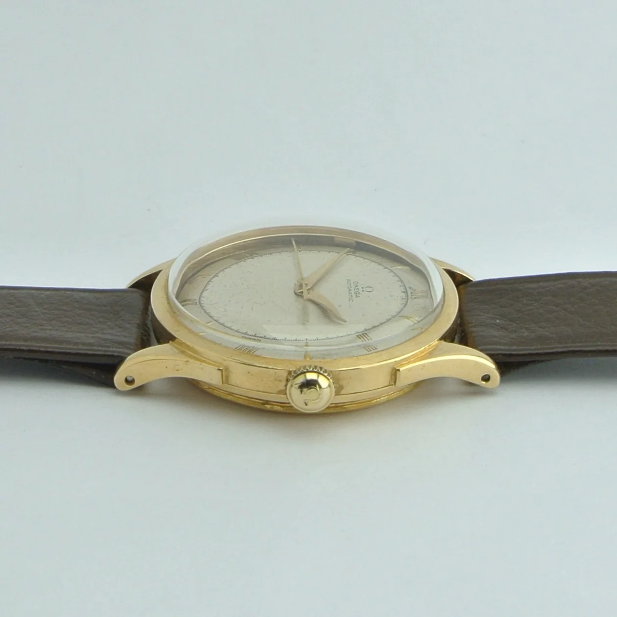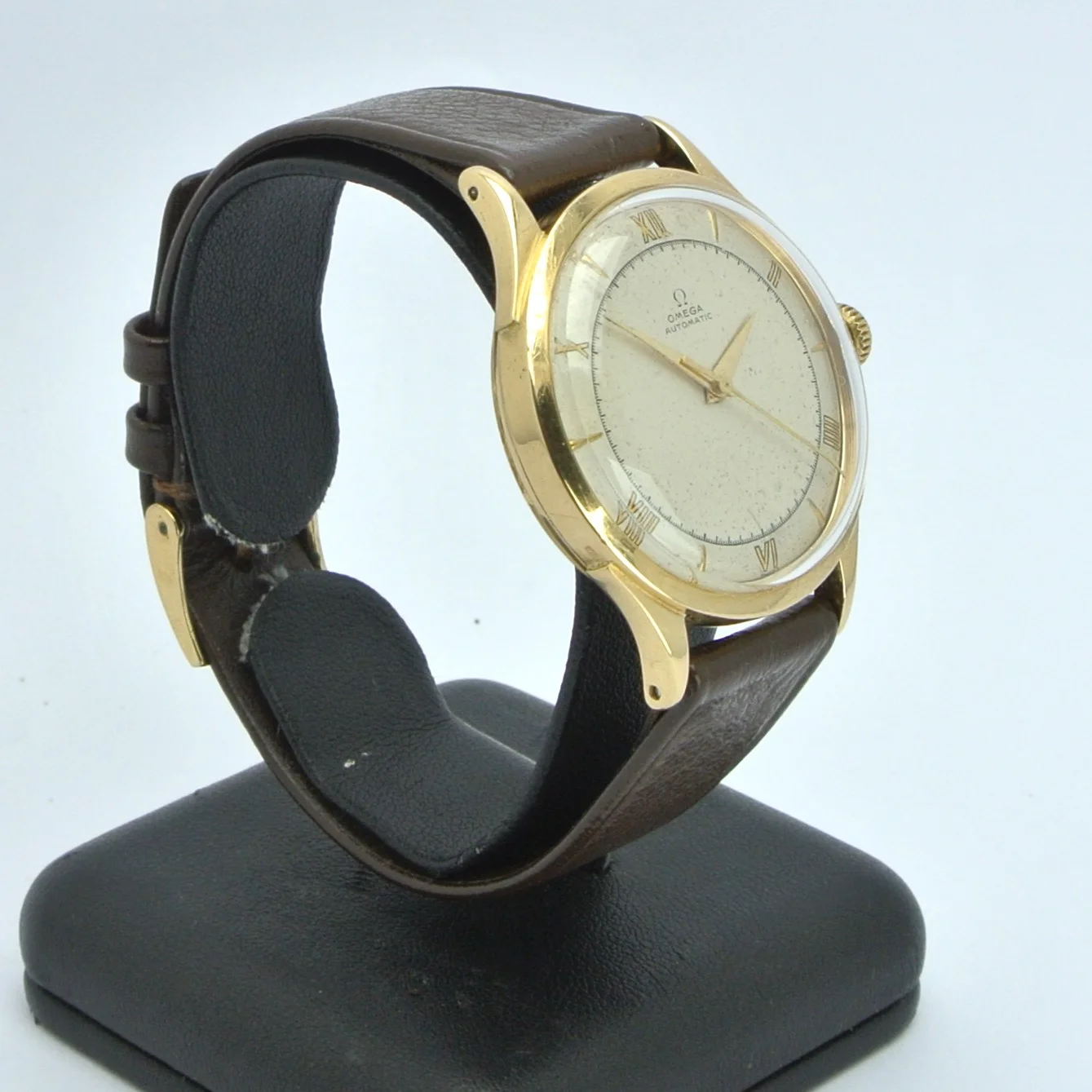 I'm a newbie when it comes to vintage watches, and I recently got my hands on an Omega Ref 2421. I'm excited to share some pictures of it with you! I'd really appreciate any help you could give me with a couple of questions. Do you know whether the crown (which seems gold-plated, compared to a 18k solid gold case) is original? I was just wondering, did Omega make solid gold watches with gold-plated crowns back in the 1940s, or is this a deviation from the original state?