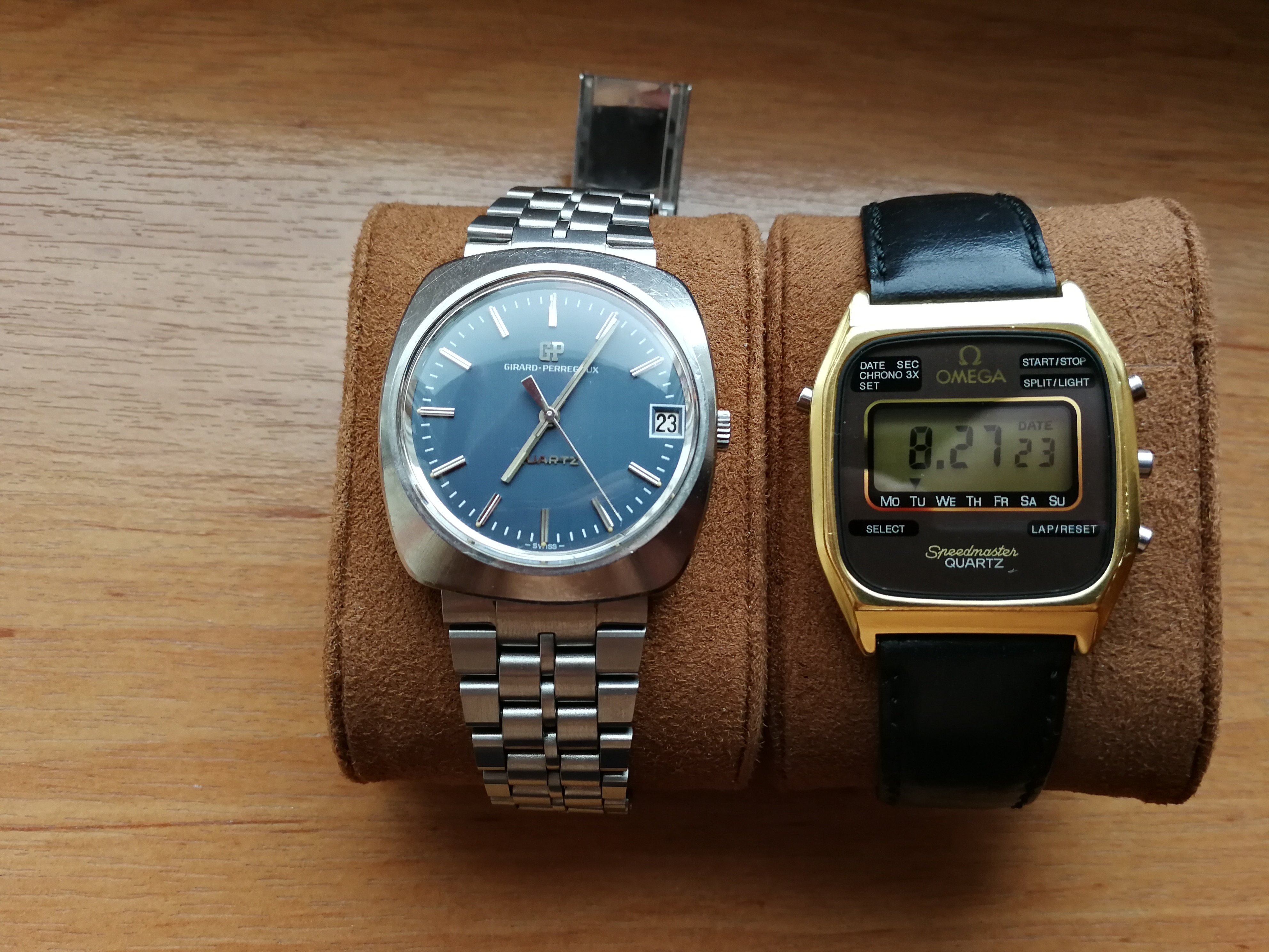 On the second watch, the crystal is cracked. These go for somewhere between €50 to €100 installed.