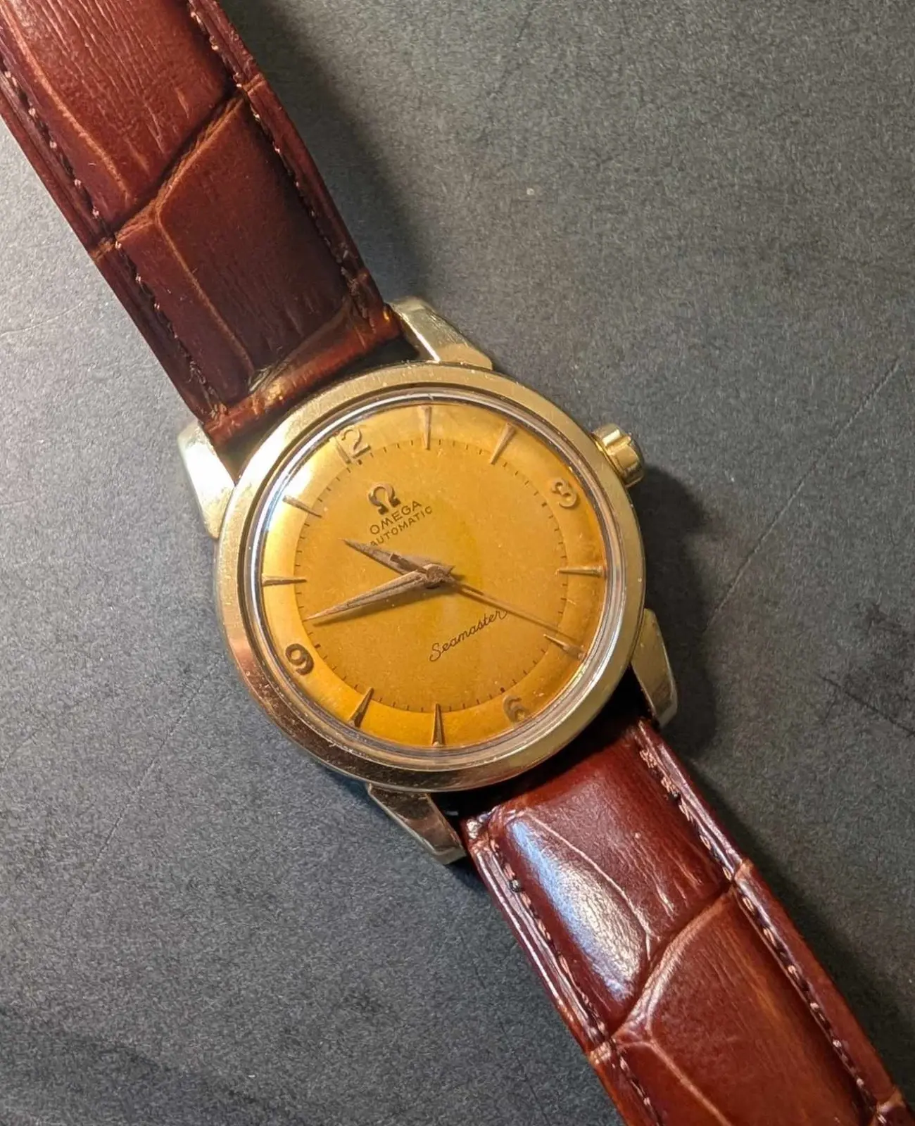 ·Good day, I have recently purchased this watch off of ebay, and I do not have the watch yet. However from the provided pictures I notice that the crown looks rather odd, its side is plated in gold, but the side with the omega logo seems to be in its original stainless steel form, any idea whether this is some weird part variant or did it run through the sander? (also I am aware that it is pretty badly scratched, but hey for 450 CAD I will take it).