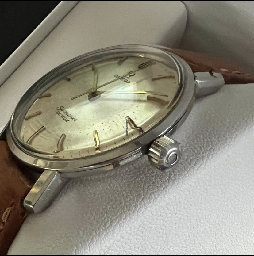 the first was sold as seamaster deville ref 135.020 1964 - no photos of the calibre sadly , stainless steel and very sharp lugs. Nice patina on the dial , hands look too good to be original? ( apart from seconds which is a bit rough ) , crown feels off ? lovely to wear - this size is perfect for my small wrists.