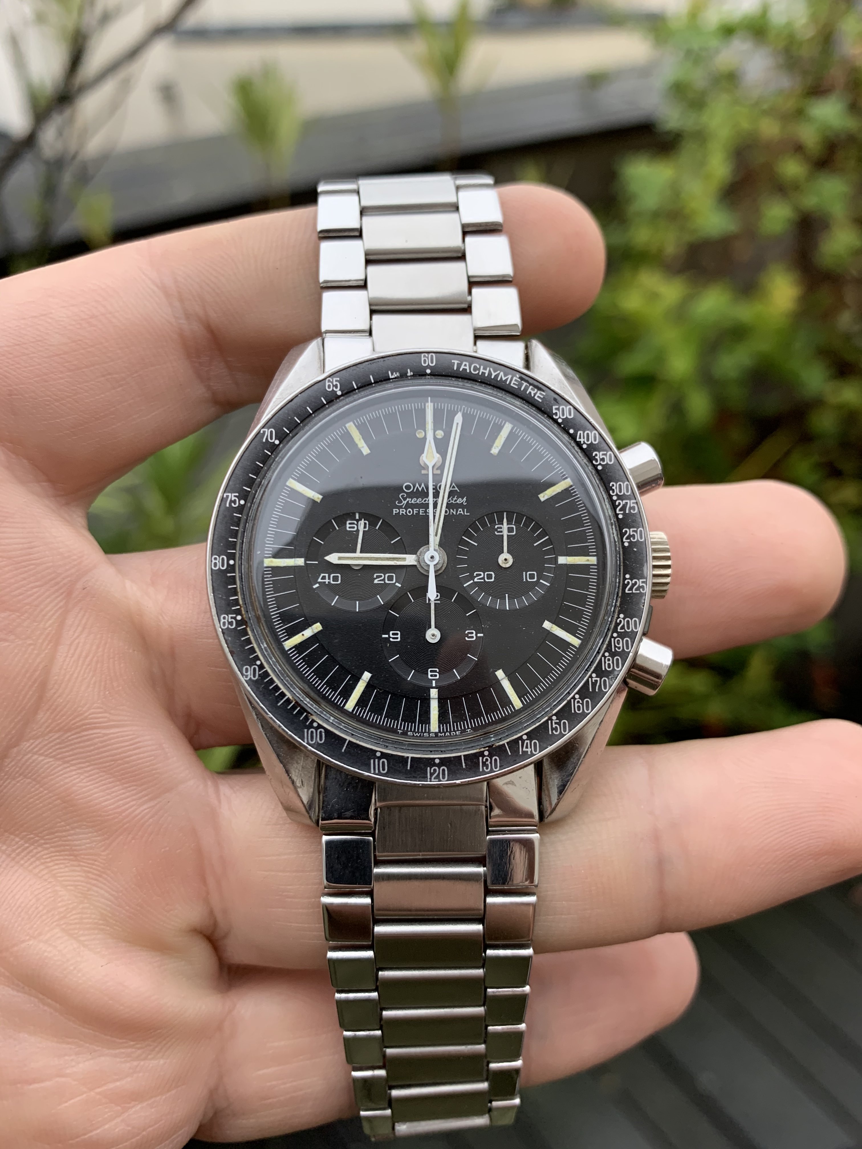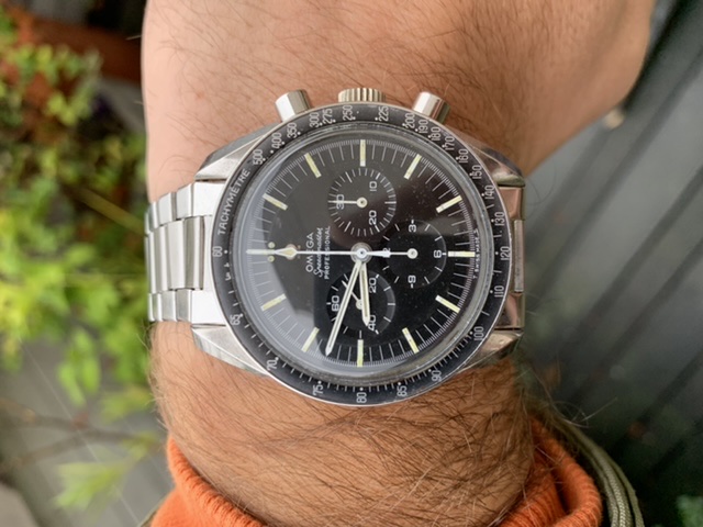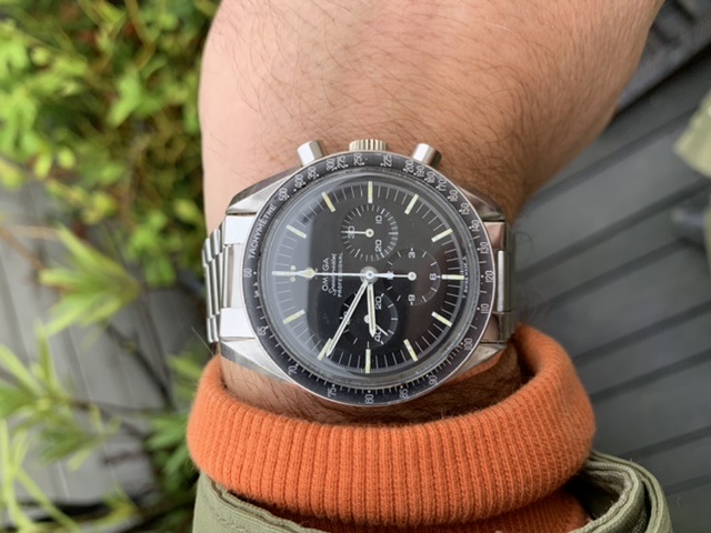 The dial is perfect (the spots we see are on the crystal) but the lume suffered some loss. Faded DON looks good to me, case still thick IMO. Original 1.69 1039 (repolished?) Service crown (I think?) and crystal.