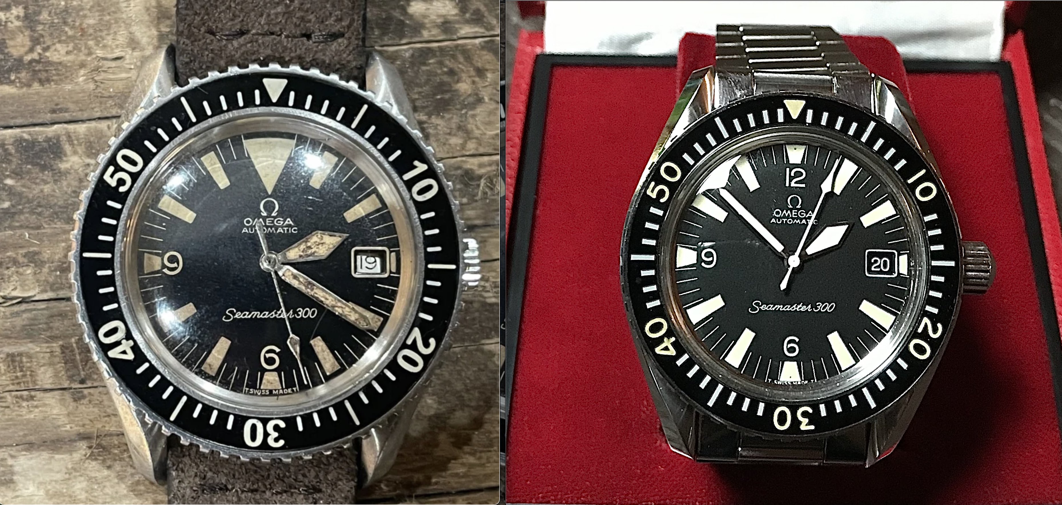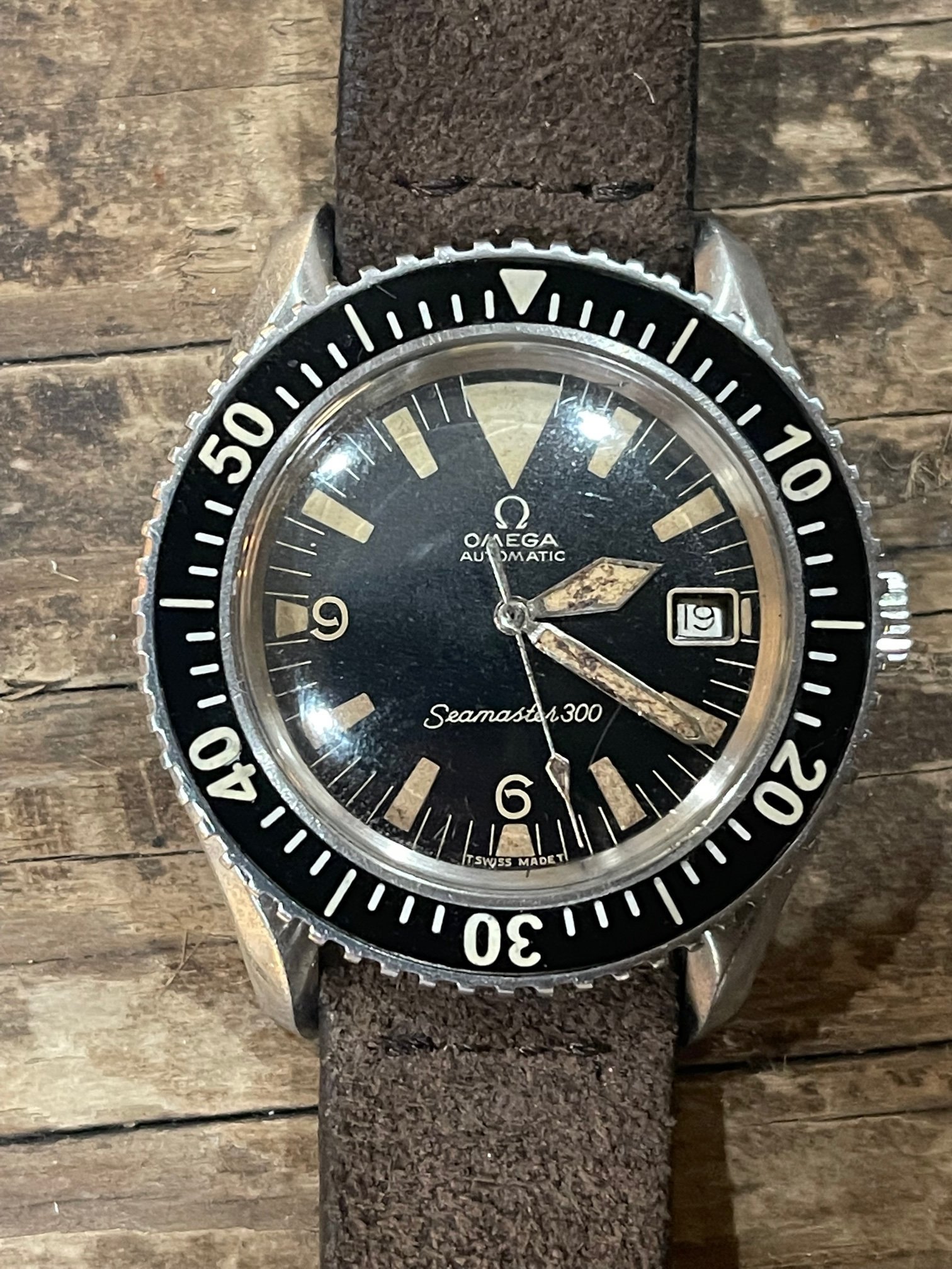 ·My question comes from a watch I've found outside of the forum. It's a 166.024 that I've found local to me. The things that concern come from comparing it to other watches I've seen here. The first concern is that it seems that the T SWISS MADE T is much more visible on this watch than any other that I've found. The second concern is that there aren't pin holes in the 12 and 6 o'clock lumes. The third concern is the color and print of the Seamaster 300 and the 6 and 9 non the dial. They are gold and seem like they are embossed and not reflective print like others I've seen. I've also tried to compare the inside of the caseback to others but there seem to be quite a few variations so I'm unsure about that as well.