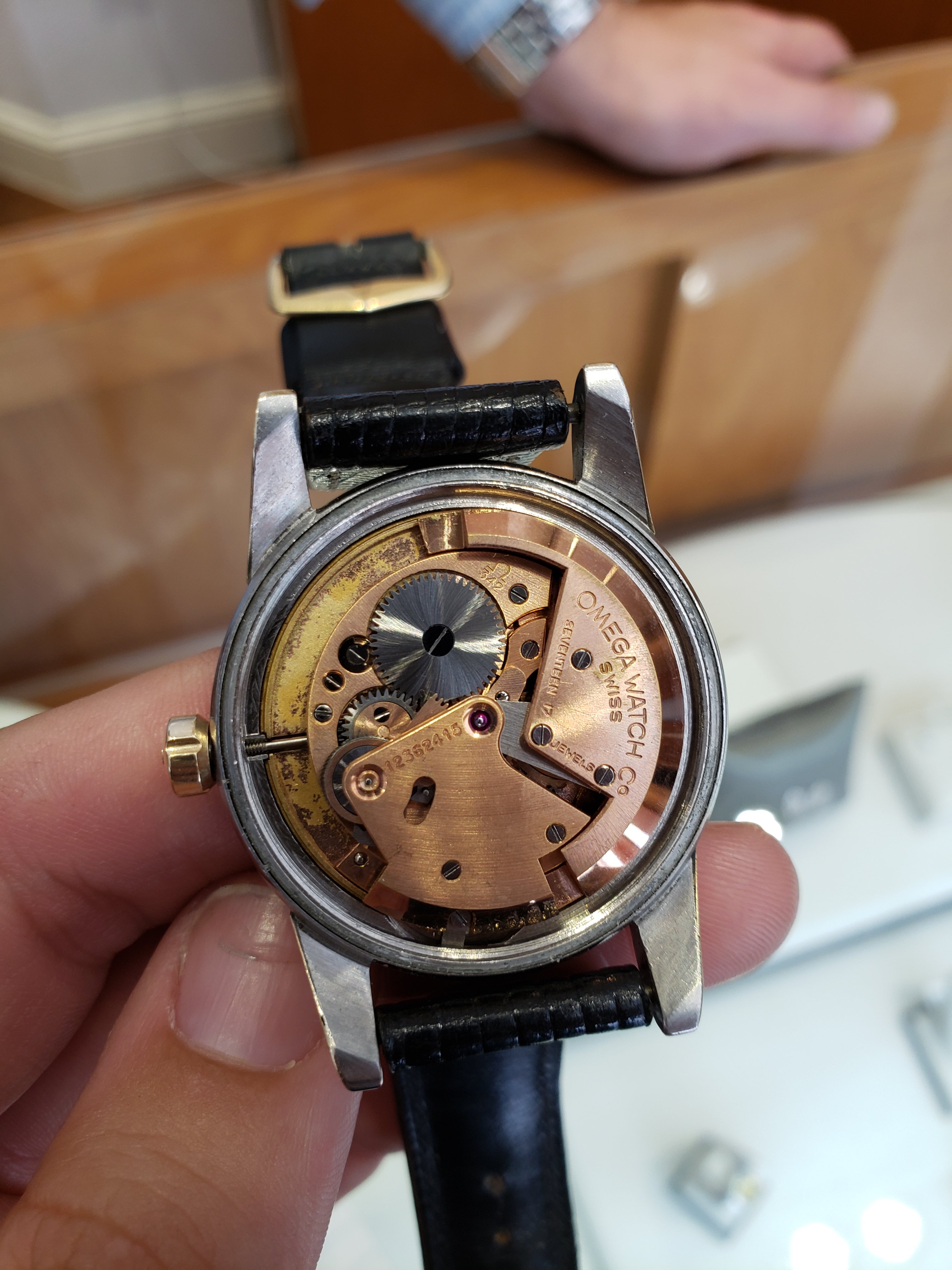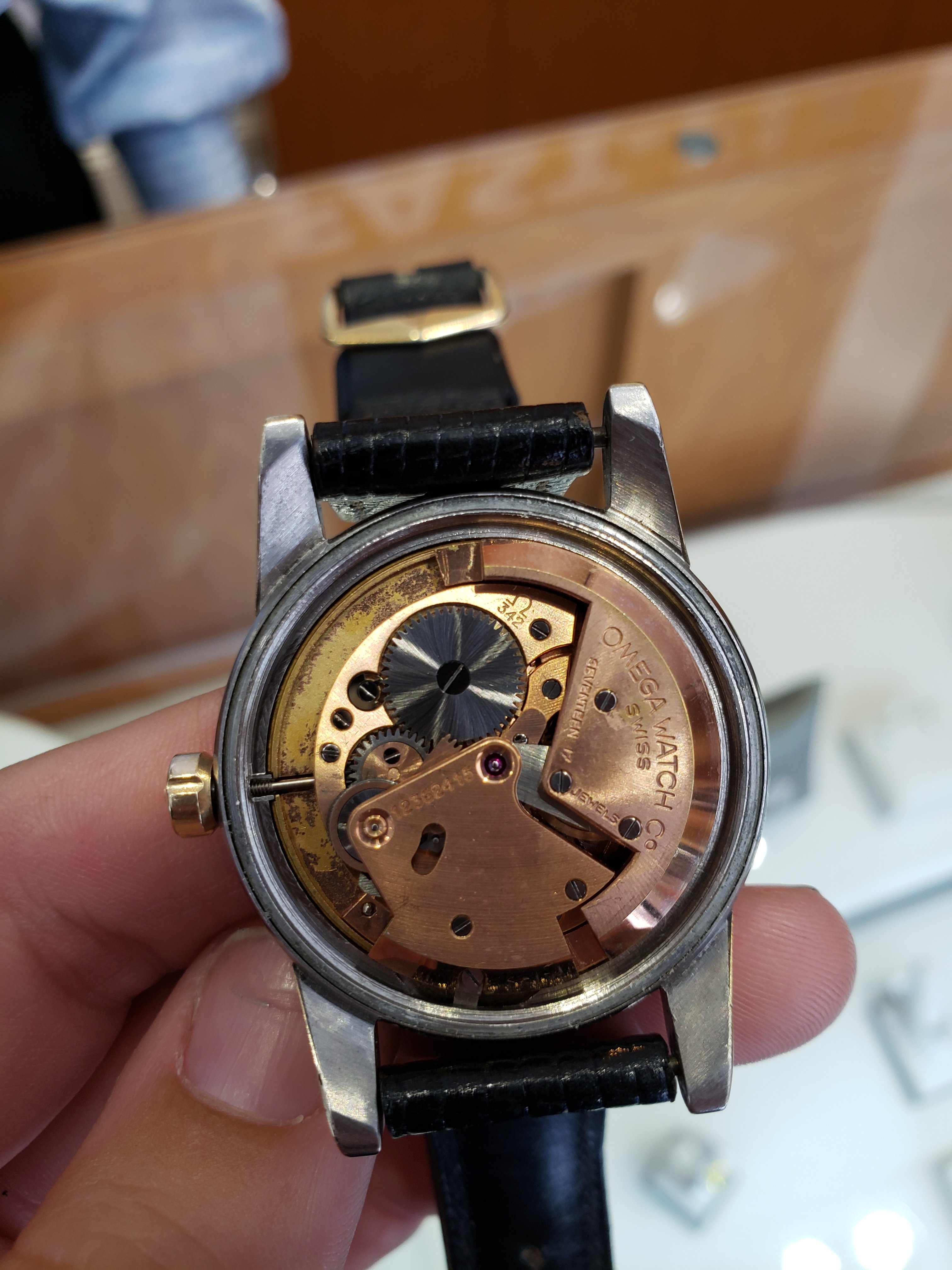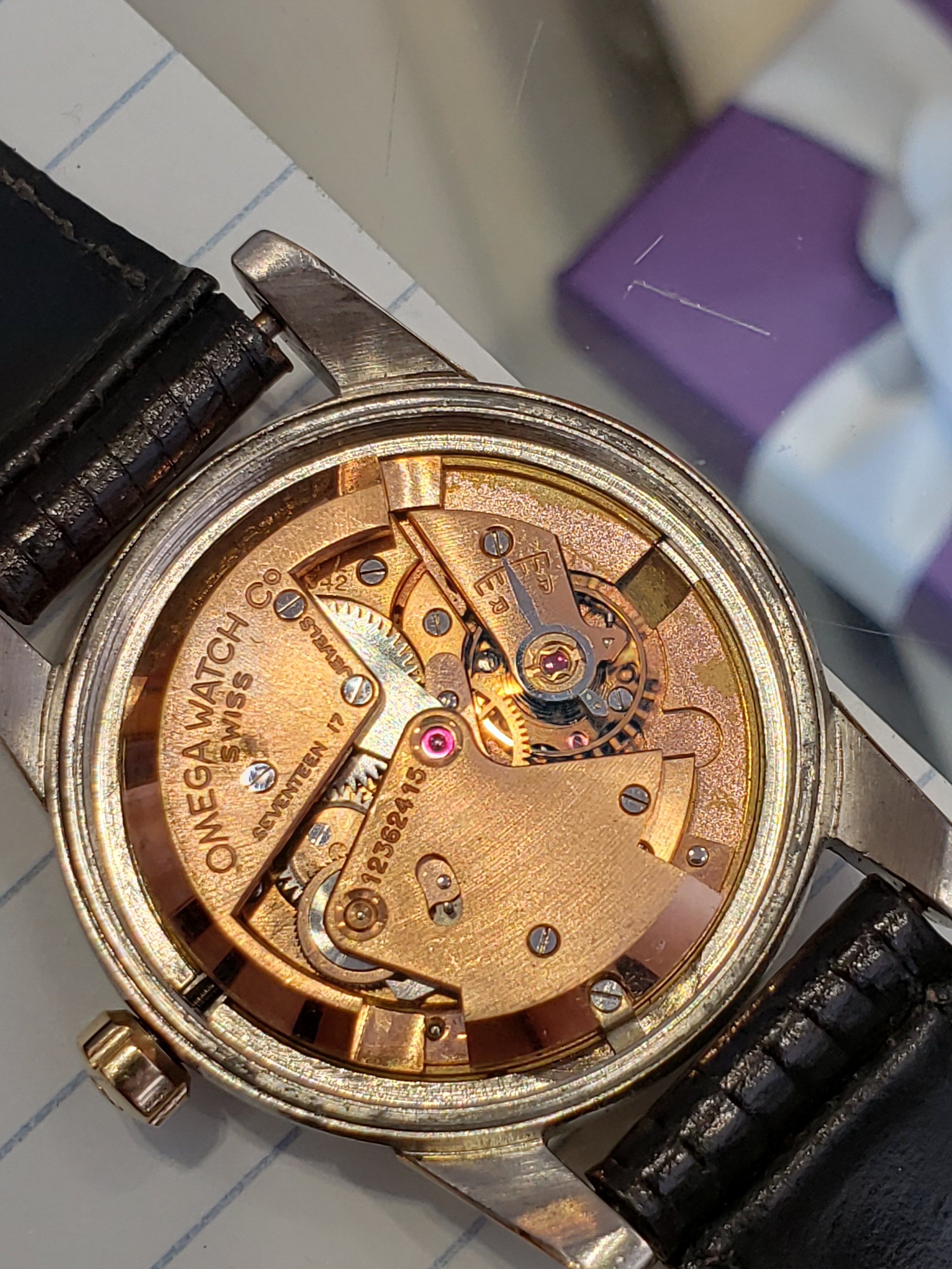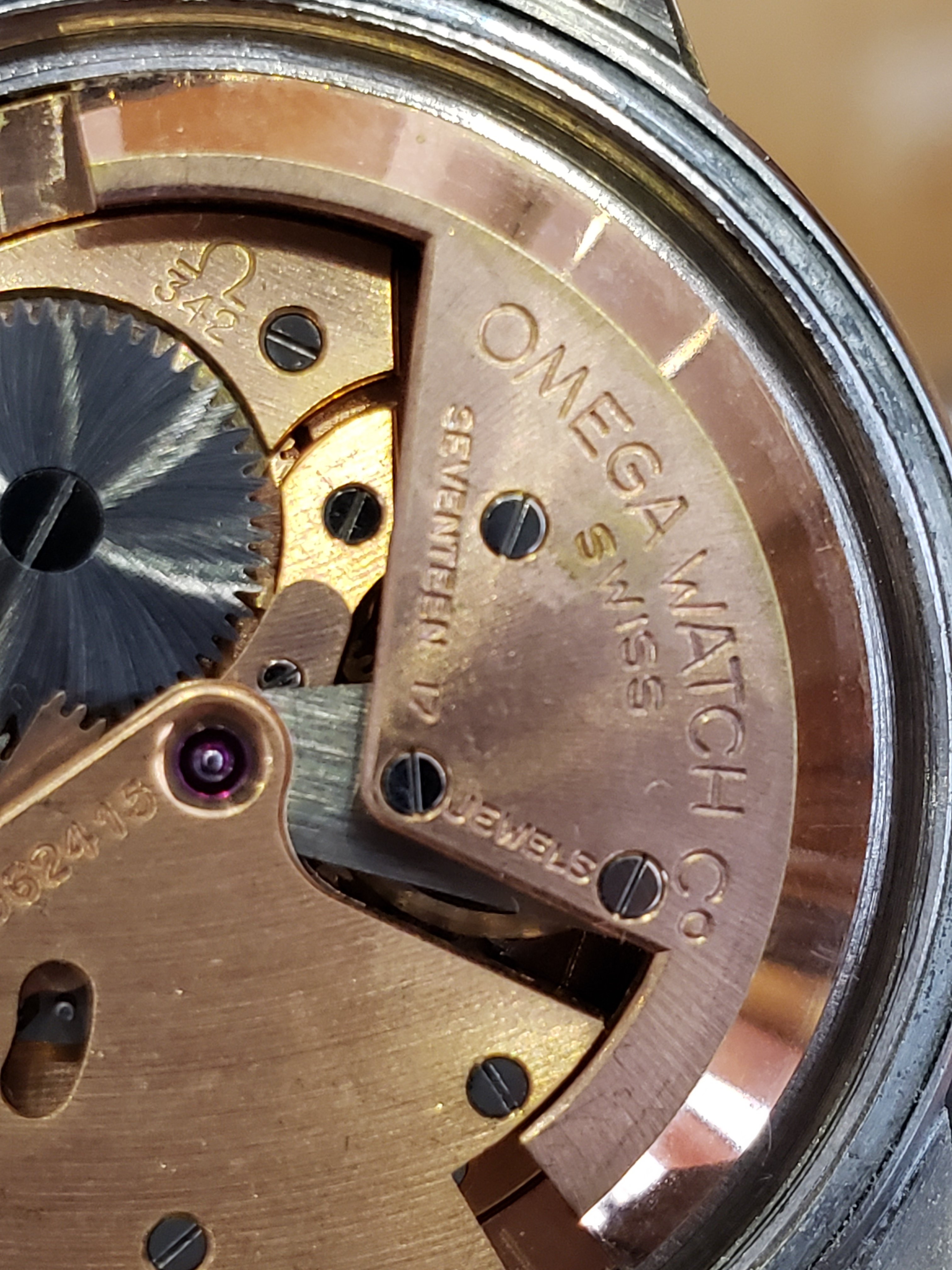 When I came back home, I took the watch a local repair shop who was recommended by the Omega boutique in town to have the watch opened up so I could get a closer look and find out more about my recent find. I was told some maintenance would be good in the near future, but that the watch is running near perfectly (which I was happy to hear). While I'm sure some work has been done on this watch (possible redial?), I would love to get some insight from more experienced folks about this piece. I have no intentions of selling and plan on using this as a daily wear, but if anyone has an opinion of value please let me know what you think. Sorry if some of the photos are a little blurry.