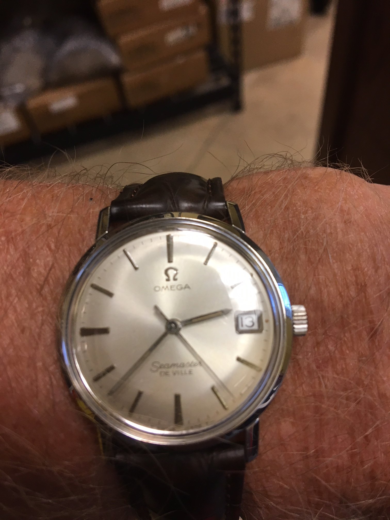 Does the OMEGA look poorly spaced and are the 'T' s too far away from the 'Swiss Made'. Also, what does the SP stand for? The engraving doesn't bother me, I quite like it. It's up at £495.