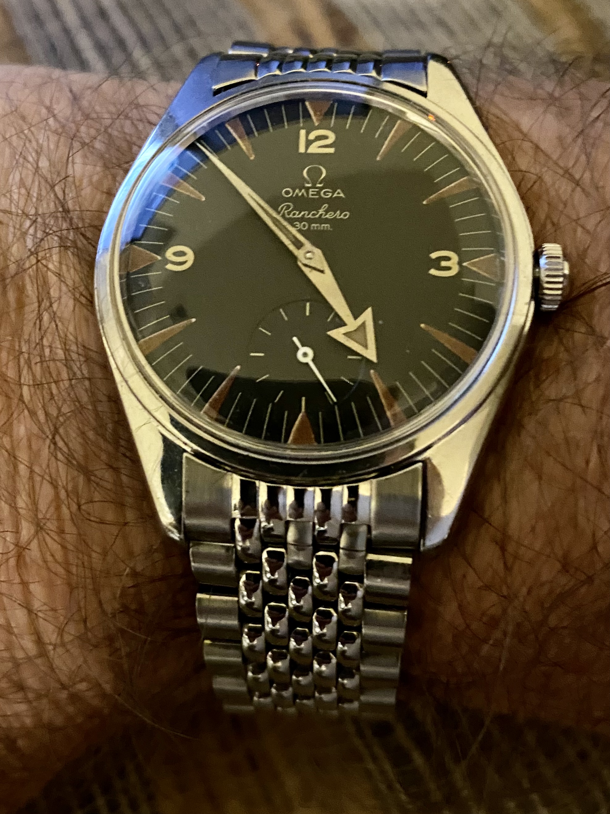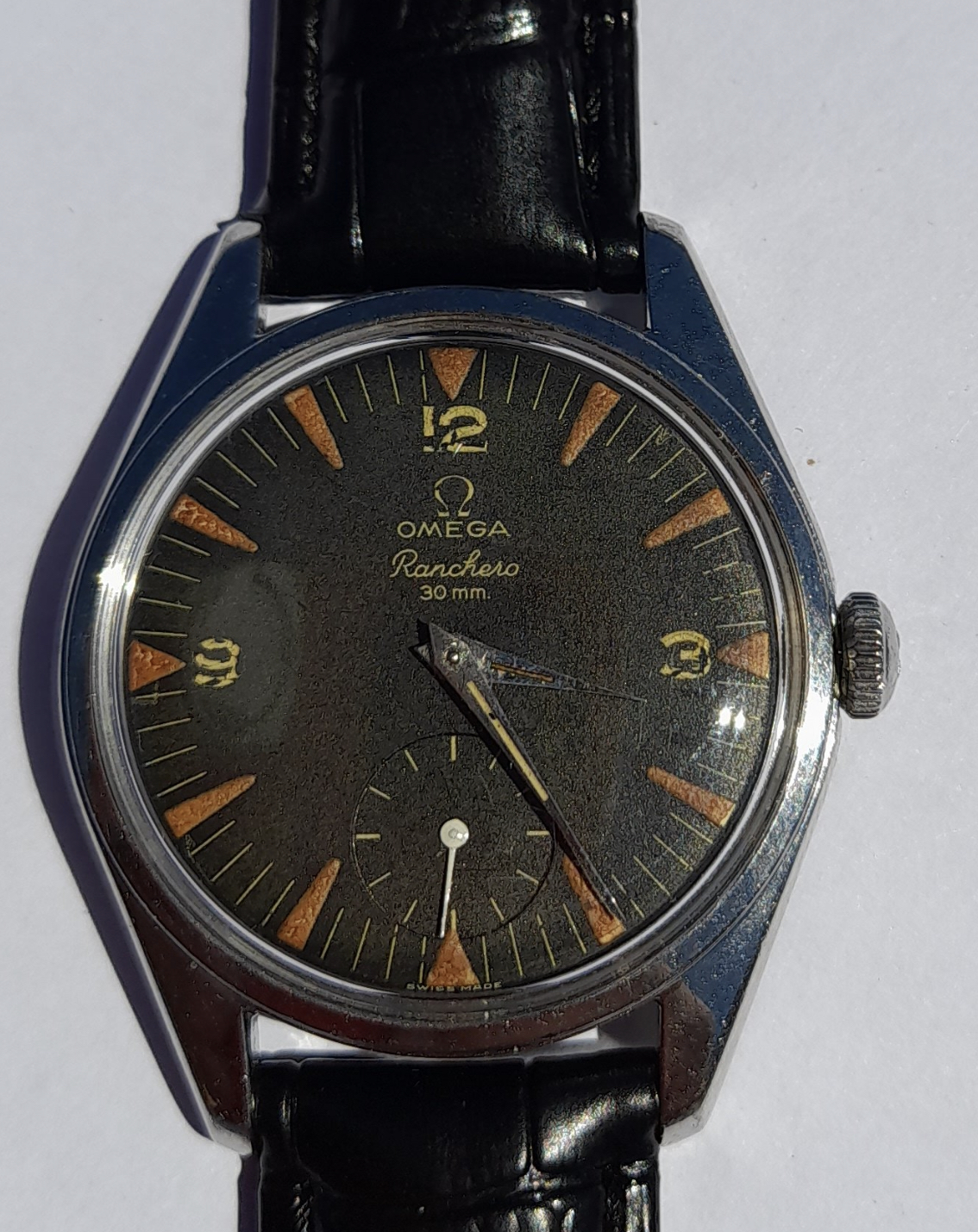 In my quest for a nice ranchero, I was offered this one locally by a fellow collector. He bought it 10 years ago from the first owner who was a sailor. Everything is original but the unsigned crown (I guess…). Donny have a movement picture yet as these are a pain to open in the wild.